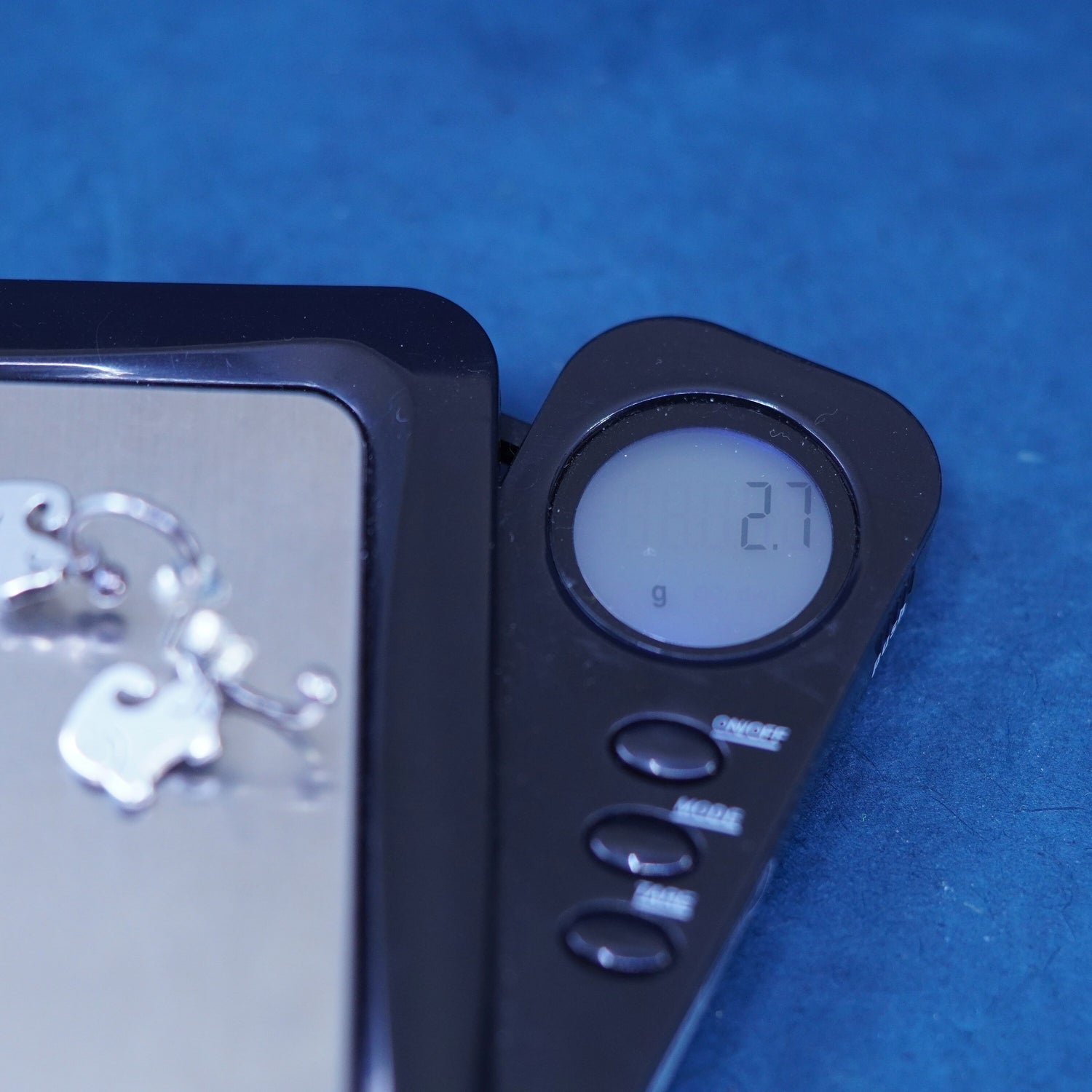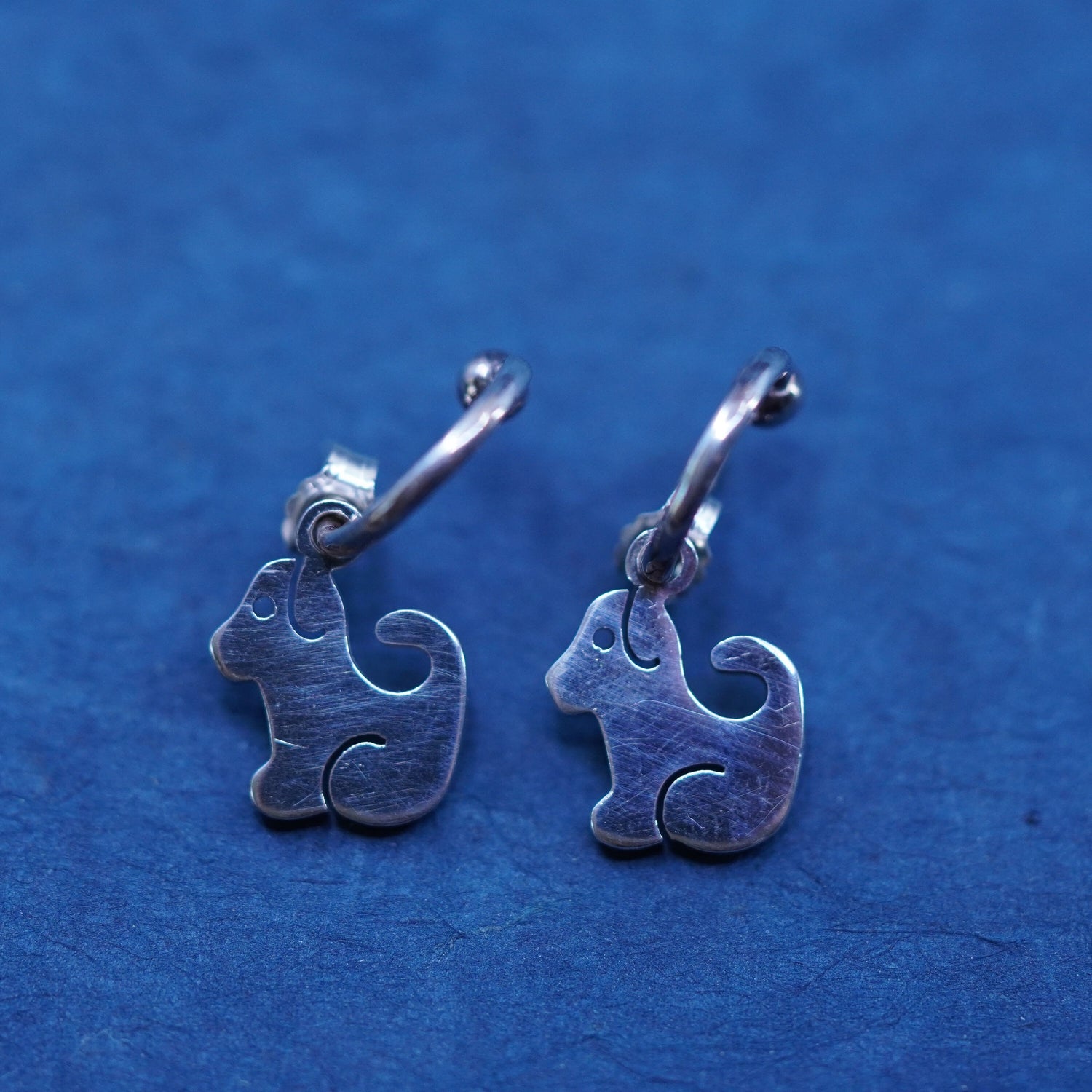 0.5", vintage Sterling silver handmade earrings, 925 hoops with dog puppy charms, huggie, stamped 925