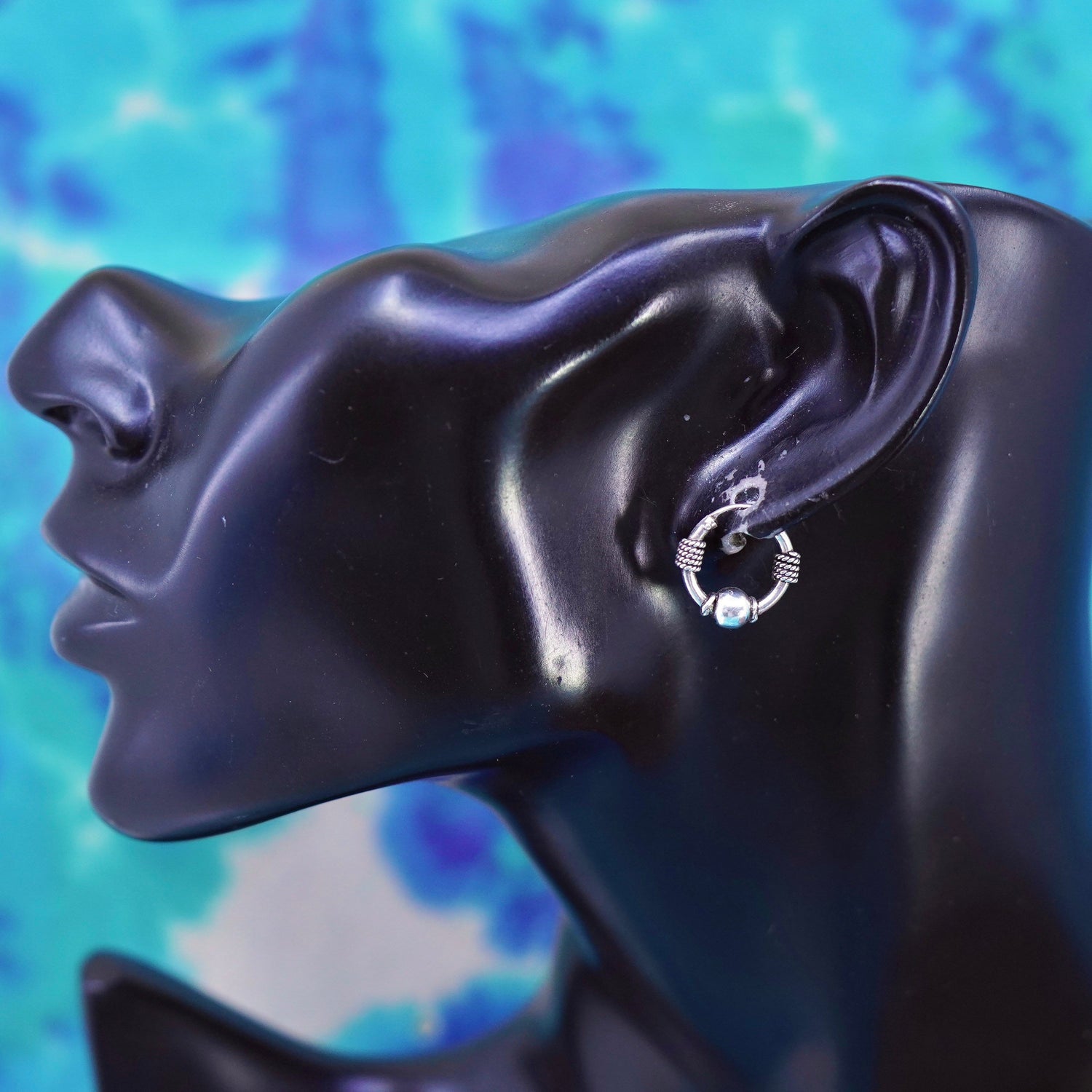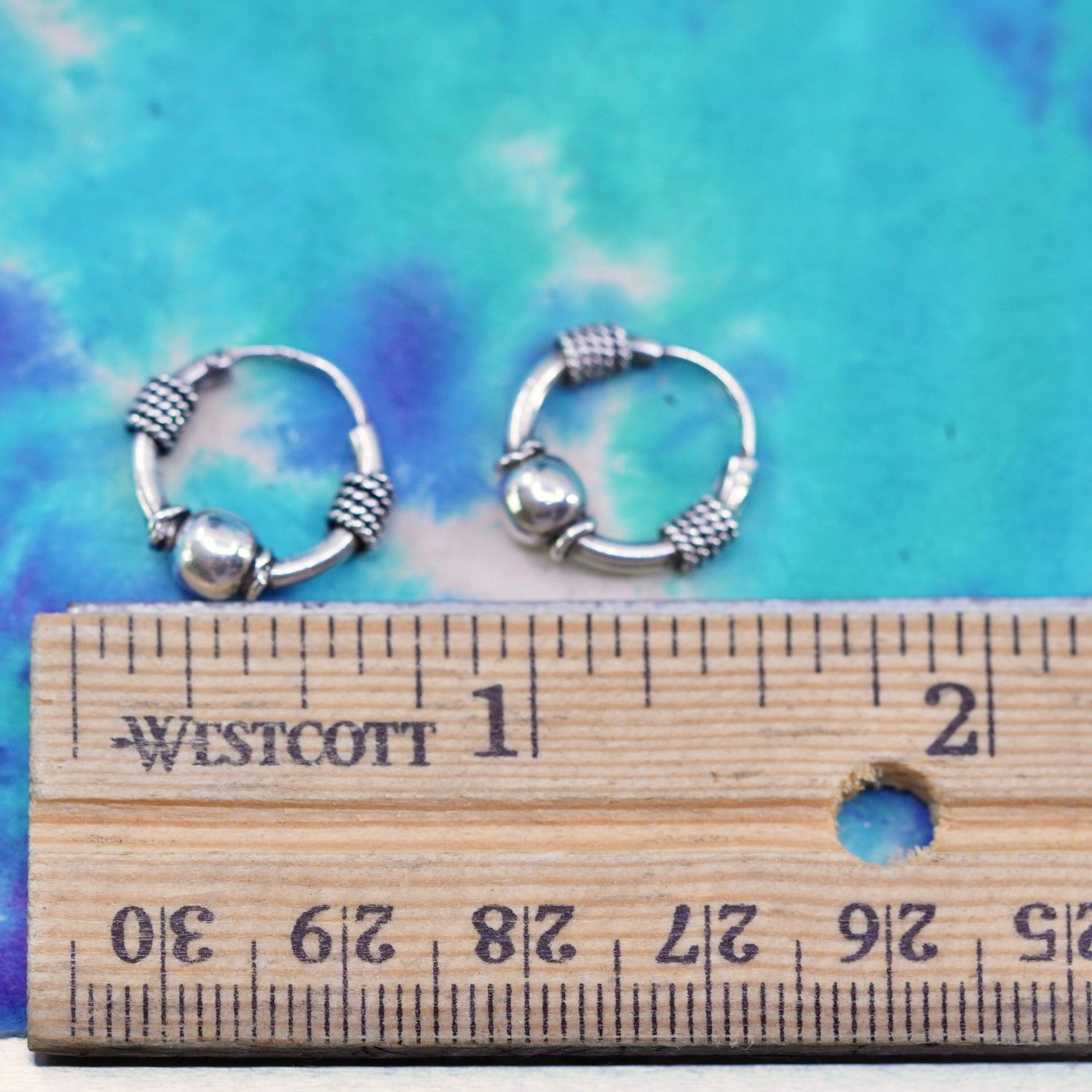0.5", Vtg Sterling silver handmade earrings, solid 925 silver textured hoops, huggie, stamped 925