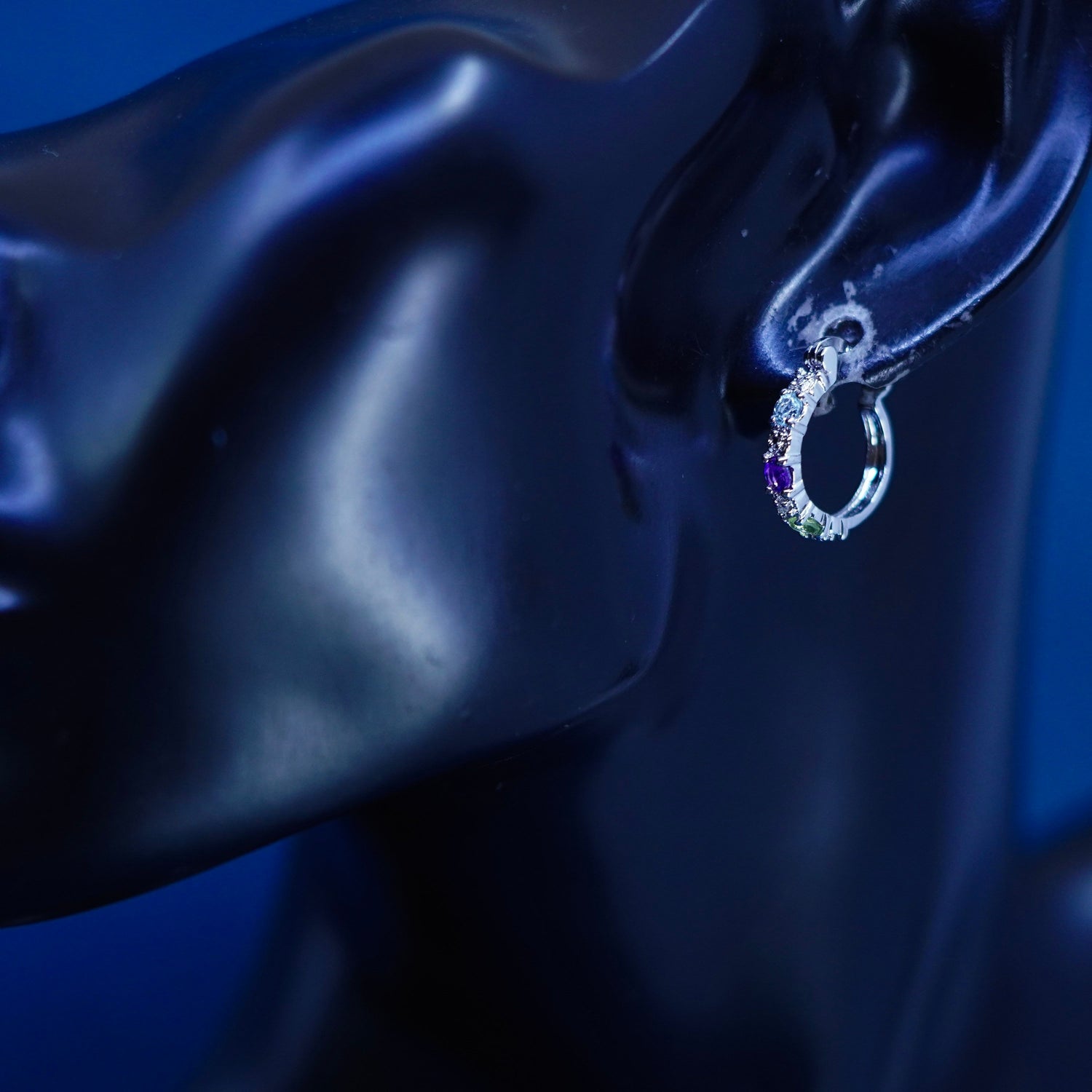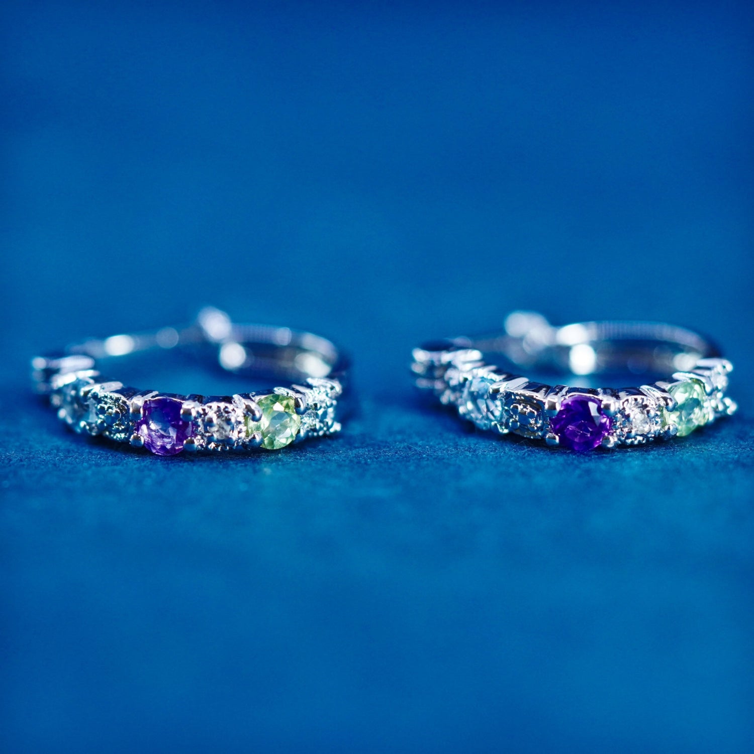 0.5”, Sterling silver hoop earrings, 925 huggie diamond amethyst topaz peridot
