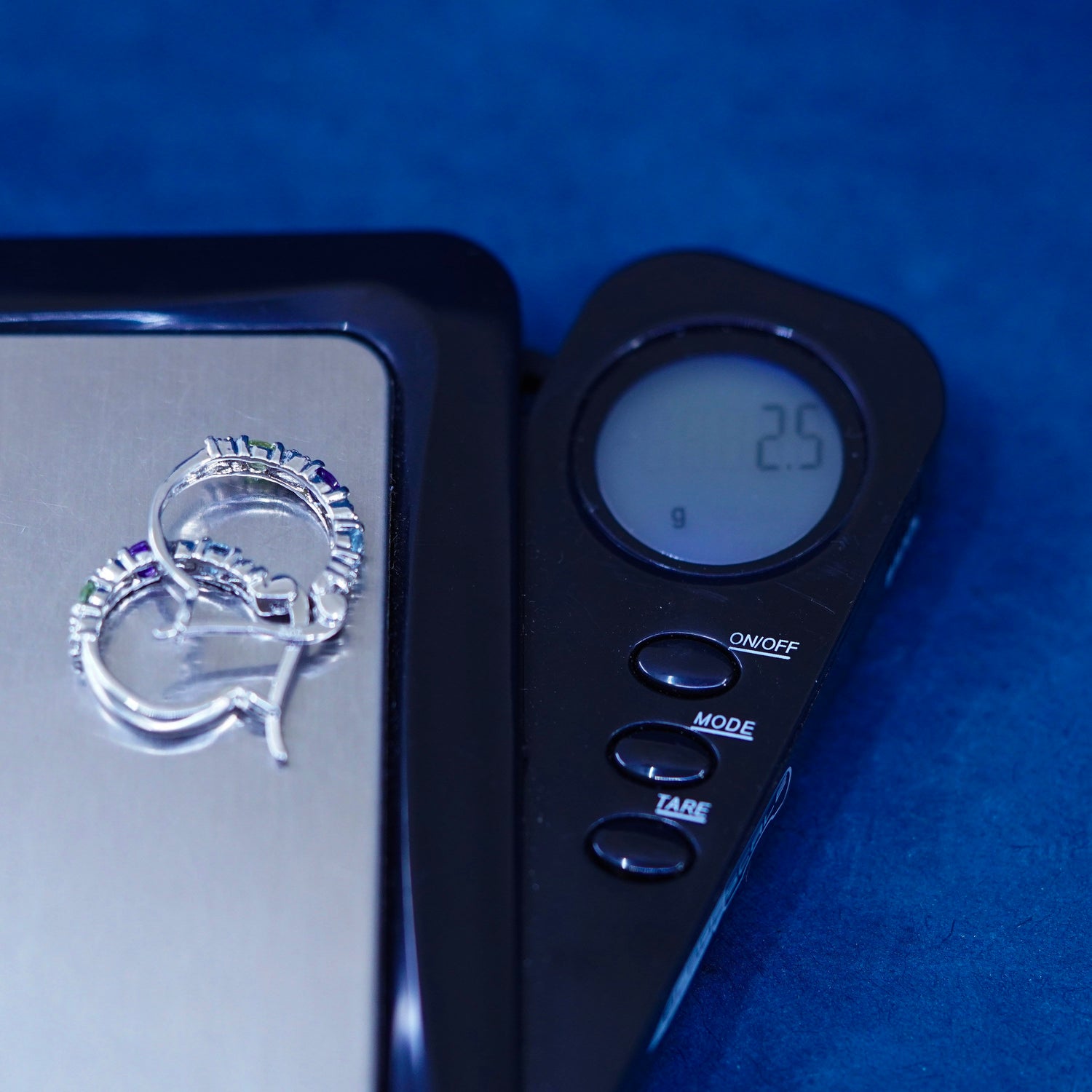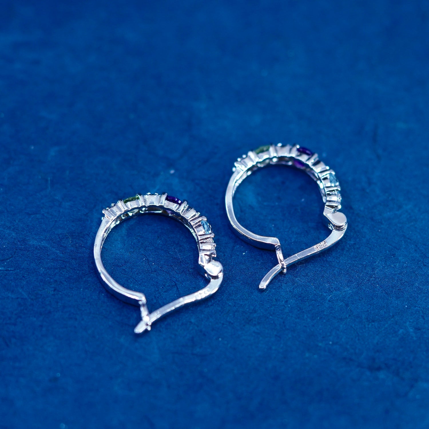 0.5", vintage Sterling silver handmade hoop earrings, 925 huggie with diamond amethyst topaz peridot. stamped 925