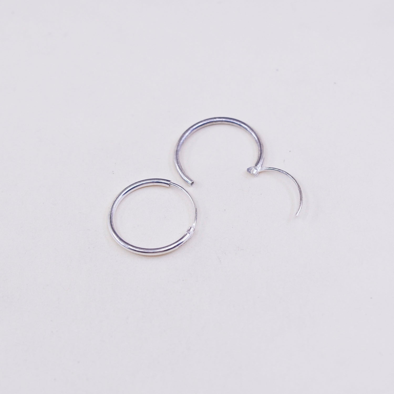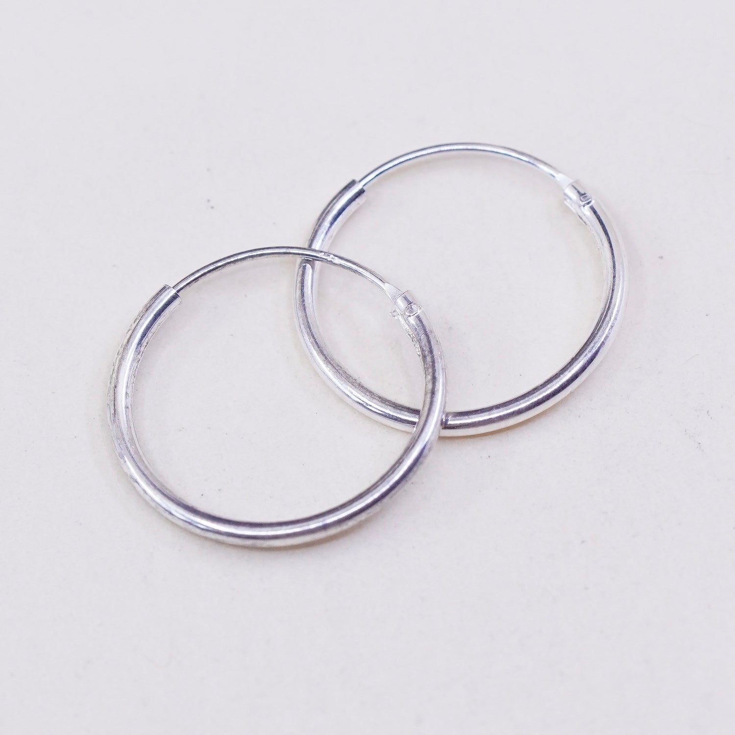 0.5", Vintage sterling silver loop earrings, fashion minimalist, textured 925 hoops, huggie, Silver tested