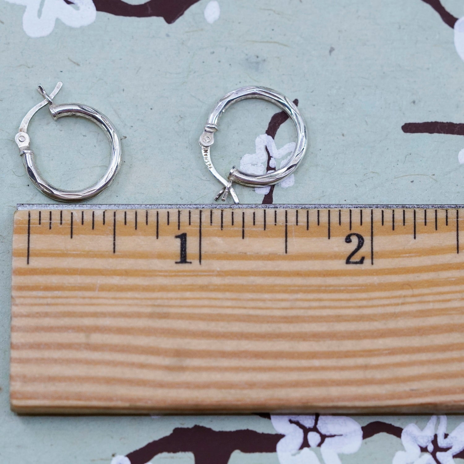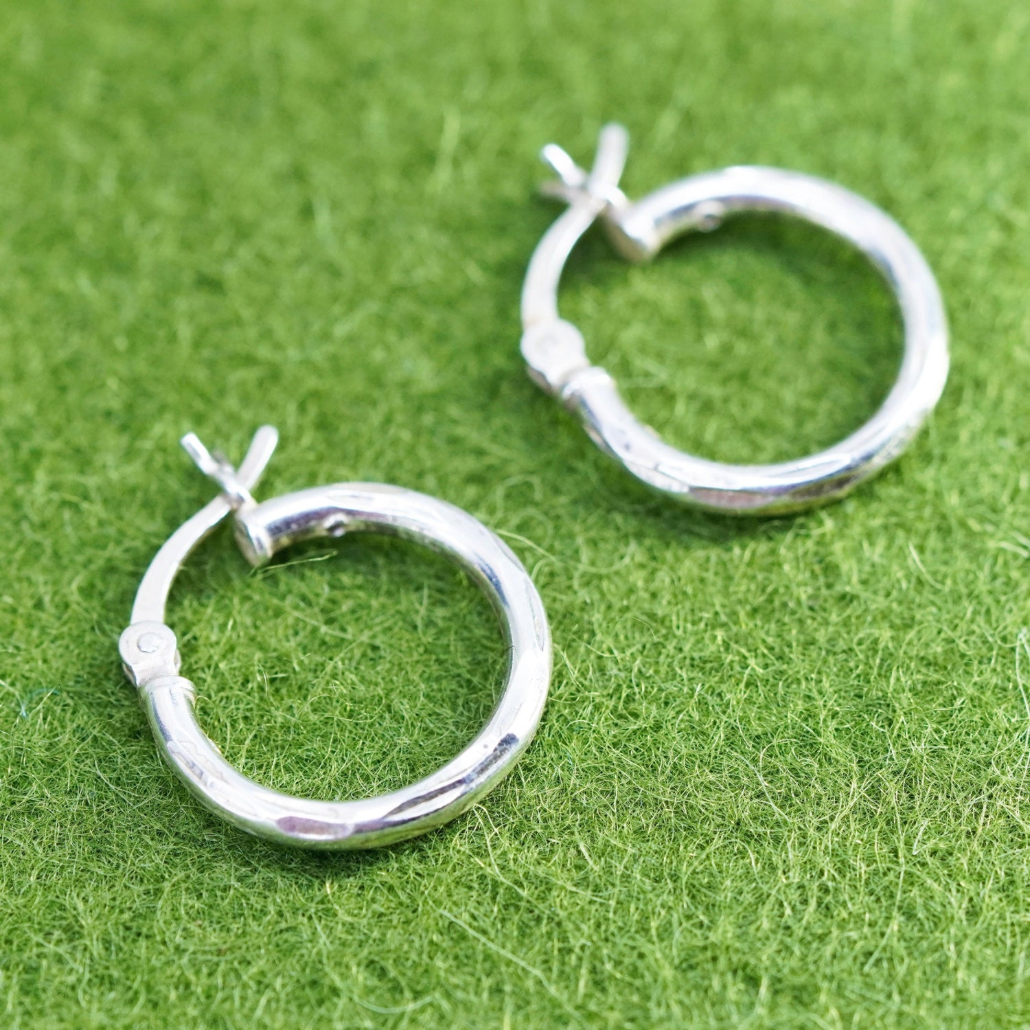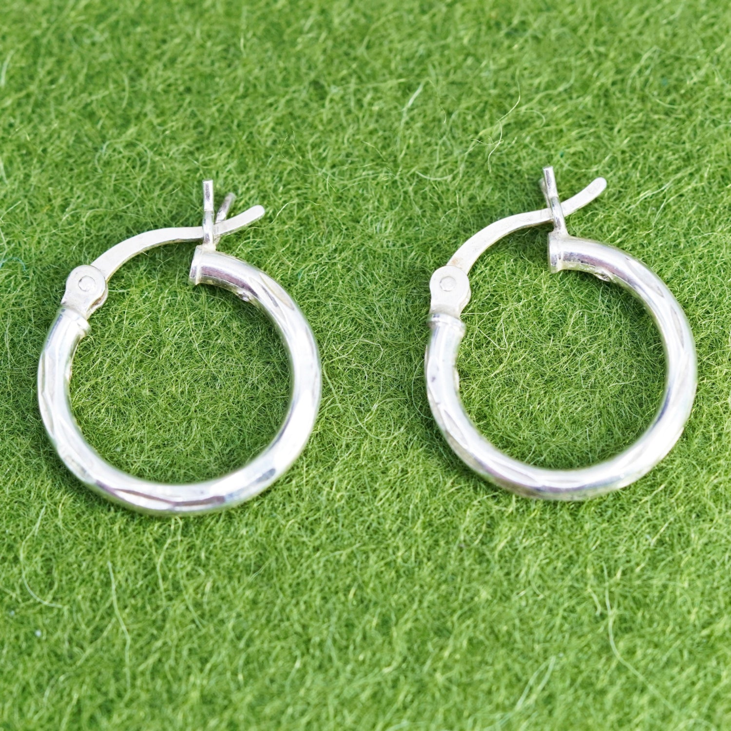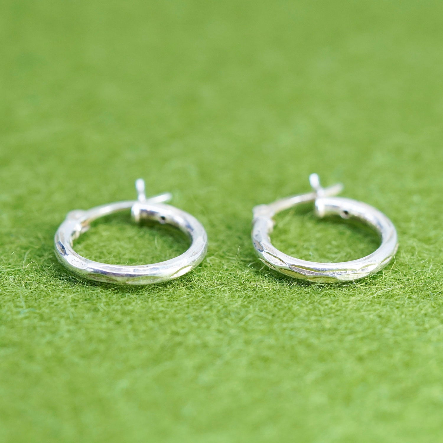 0.5", Vintage sterling silver loop earrings, fashion minimalist, textured 925 hoops, huggie, Stamped 925
