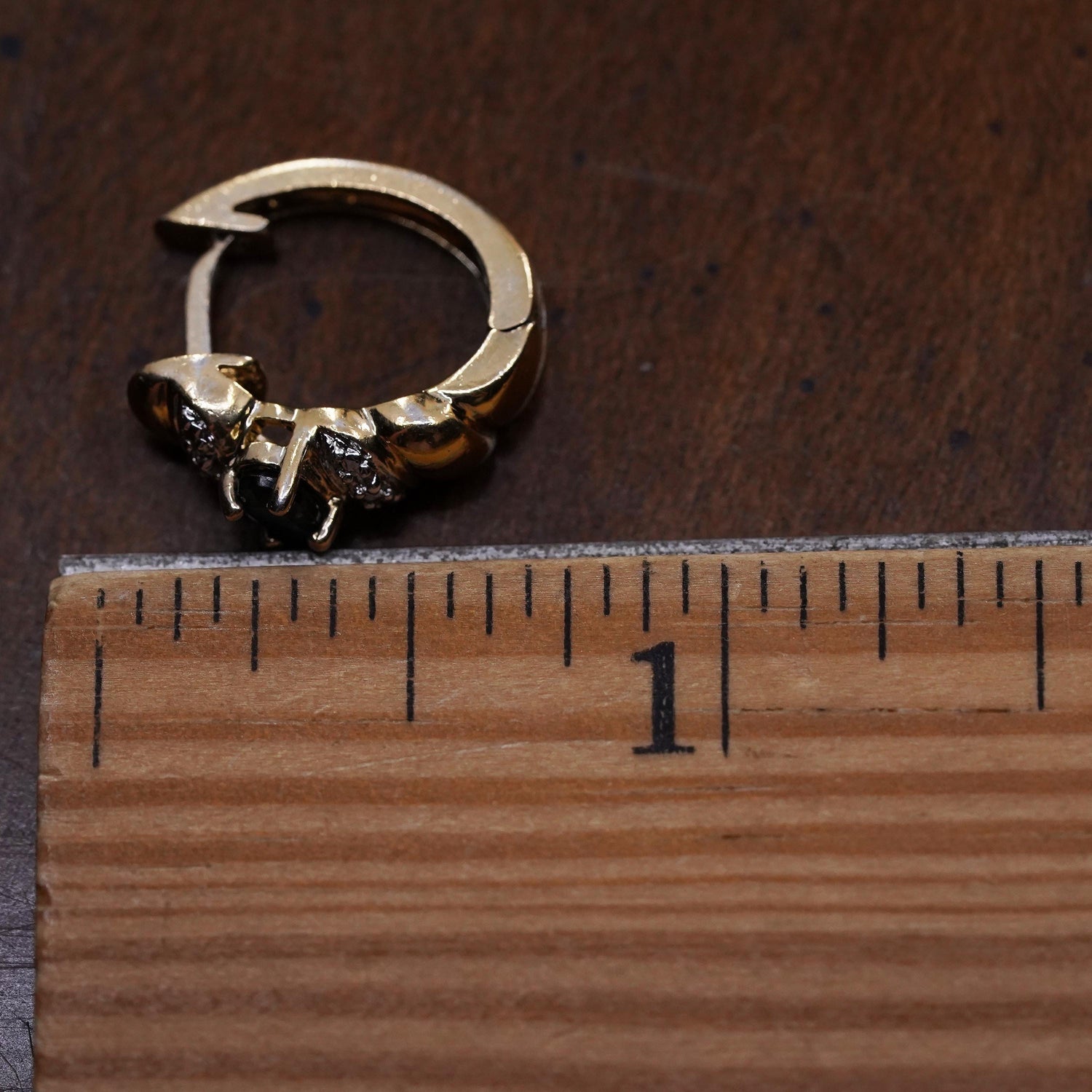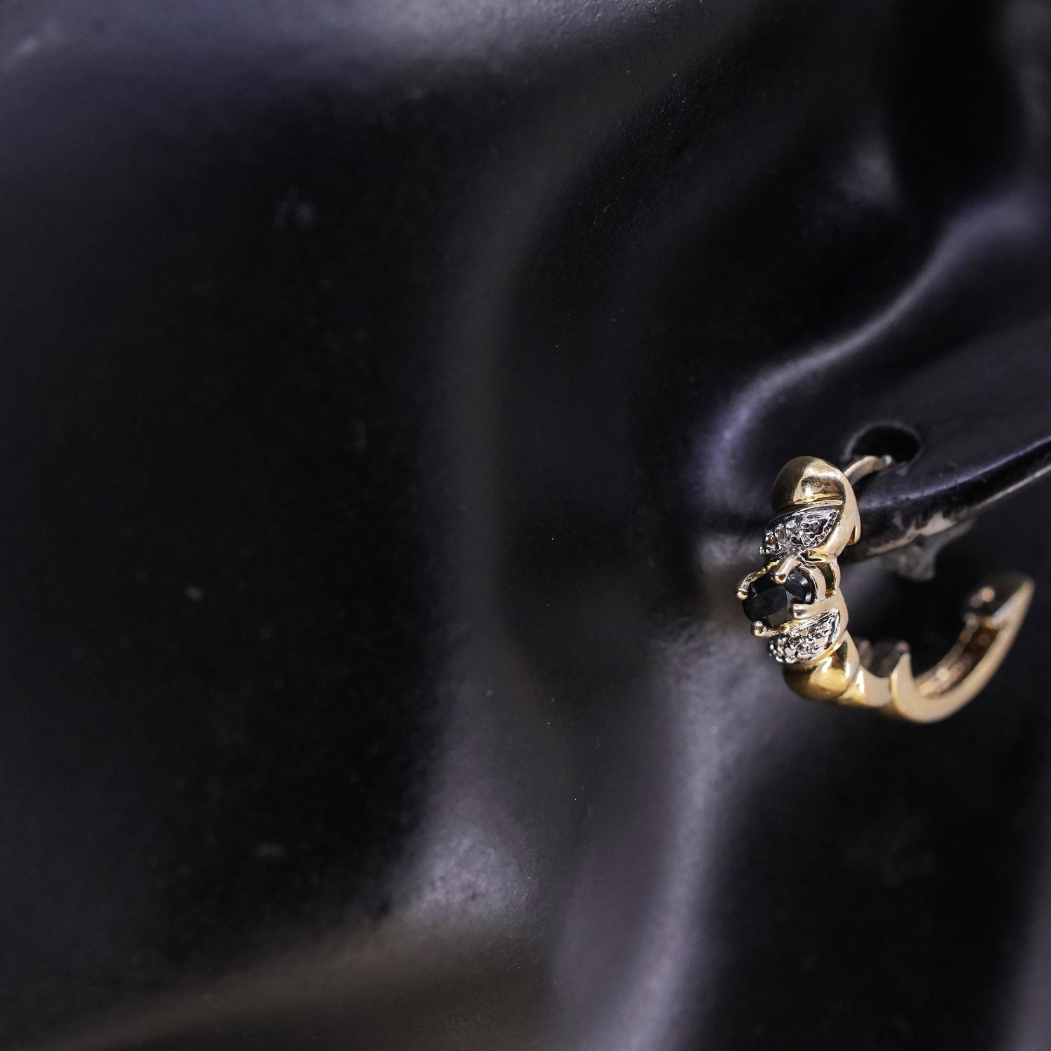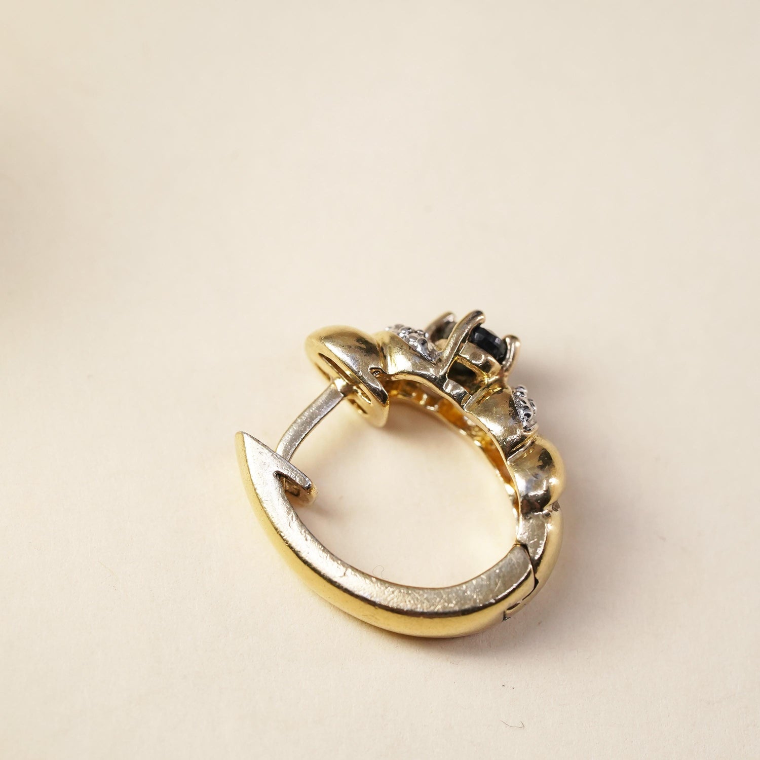 0.5", Vintage sterling silver loop single earring, fashion hoop with sapphire and diamond, stamped 925