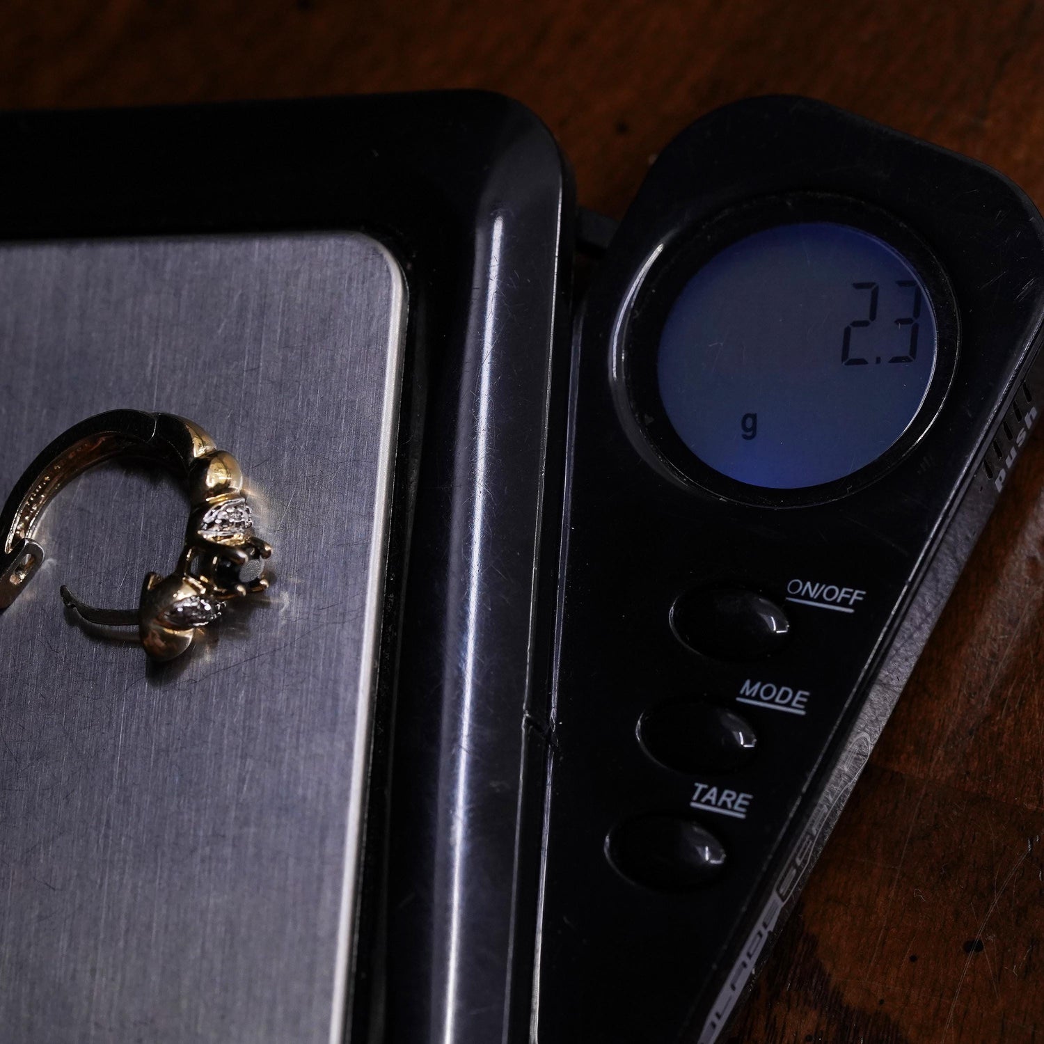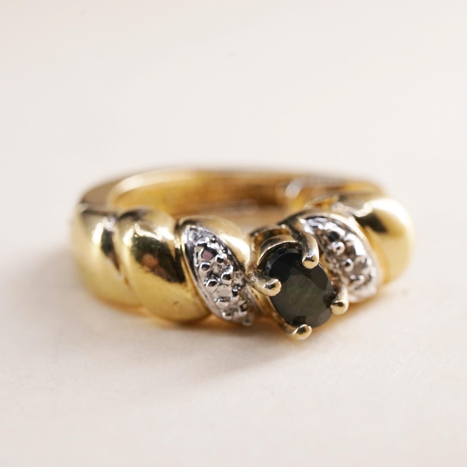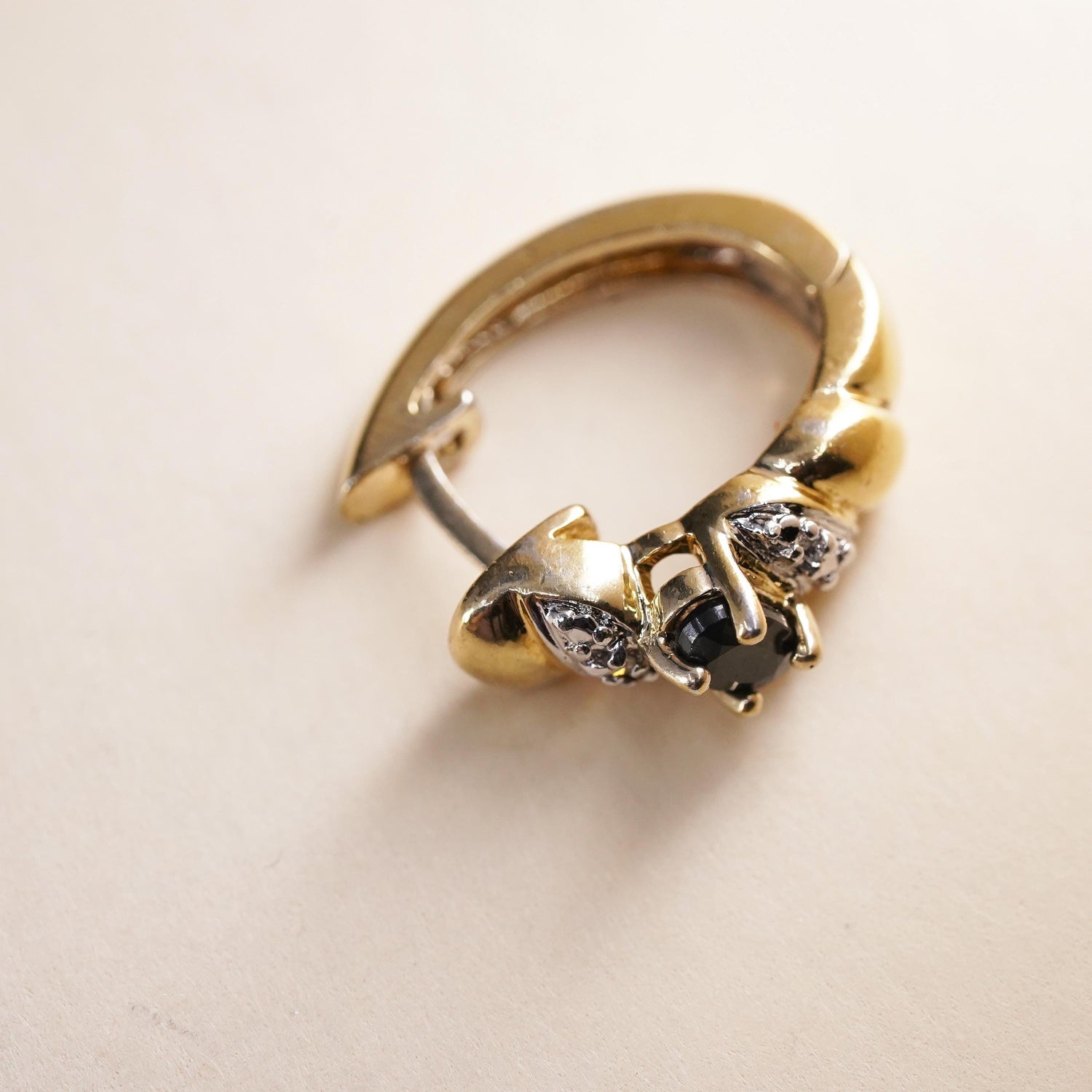 0.5", Vintage sterling silver loop single earring, fashion hoop with sapphire and diamond, stamped 925