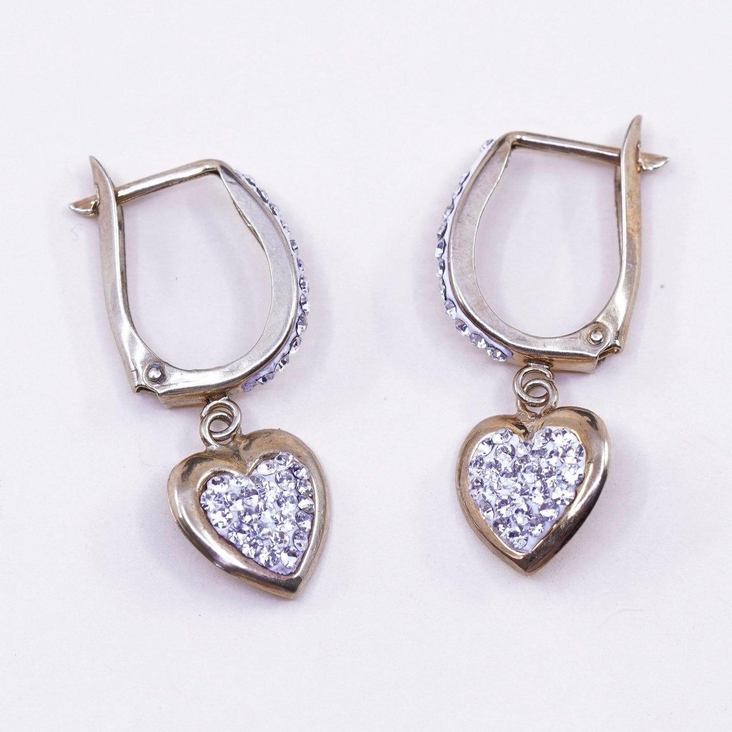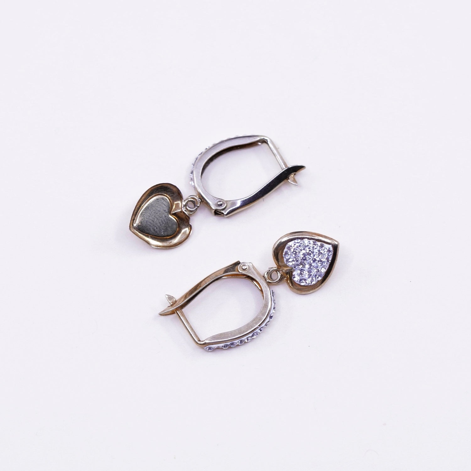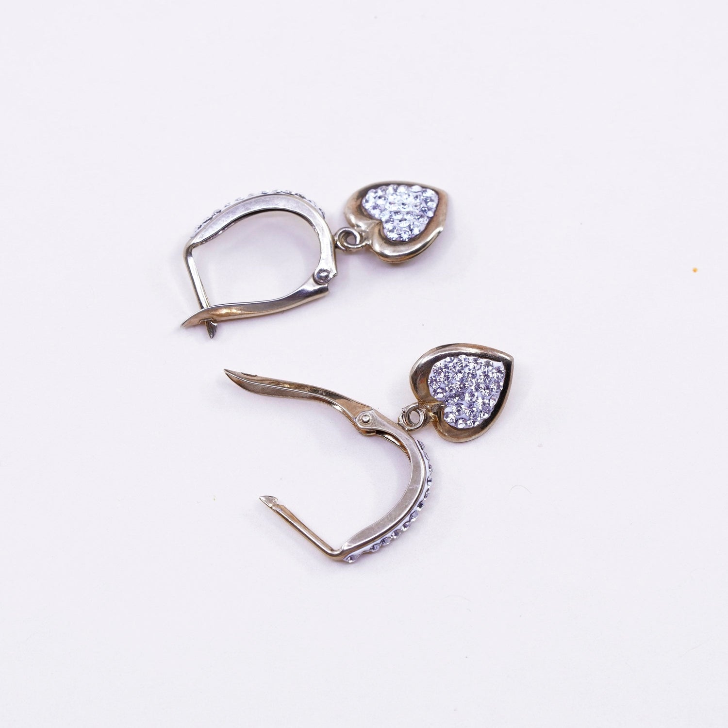 0.5", Vintage vermeil gold over sterling silver earrings, 925 hoops, huggie, with cluster cz, stamped 925, missing one stone