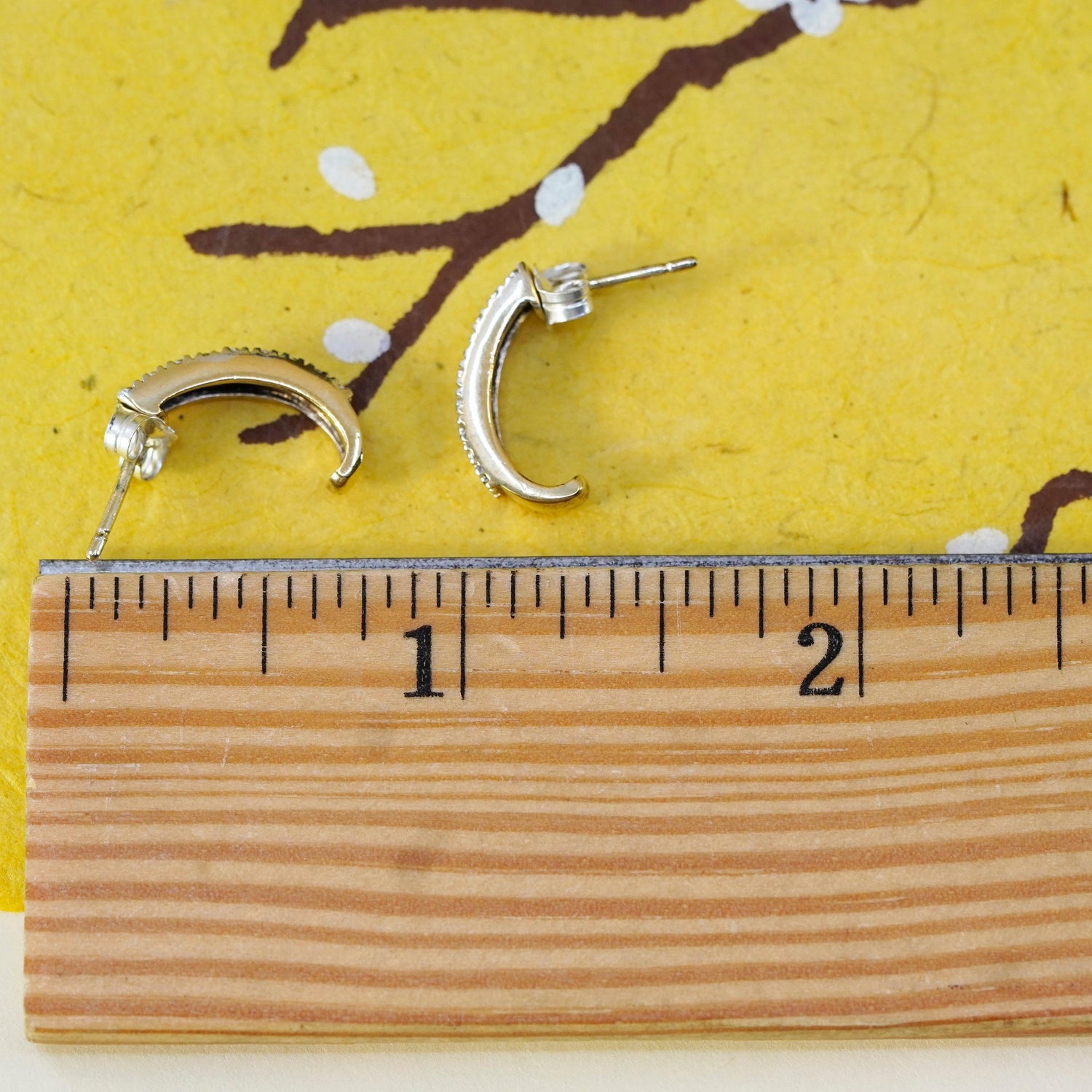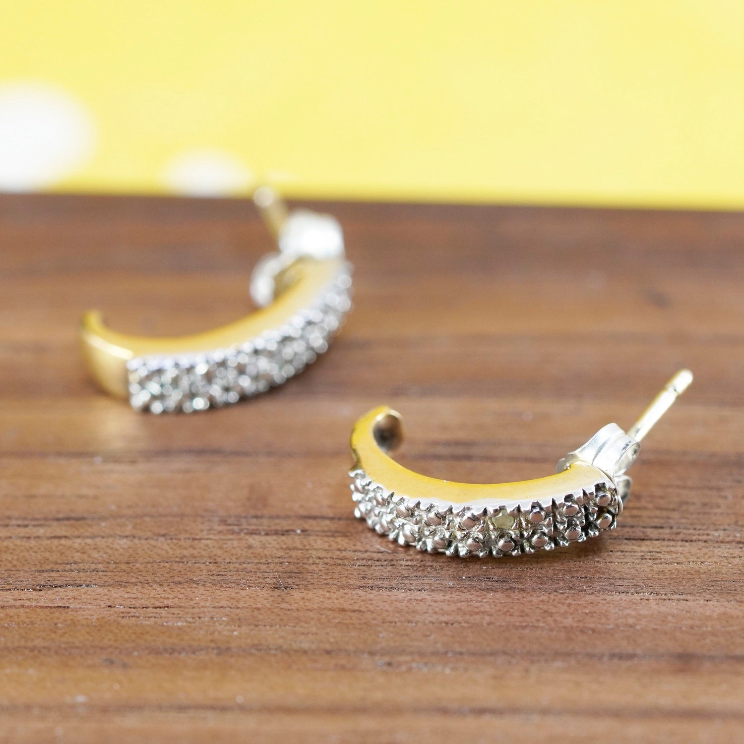 0.5", vintage vermeil gold over Sterling silver earrings, 925 huggie studs with diamond, Stamped 925