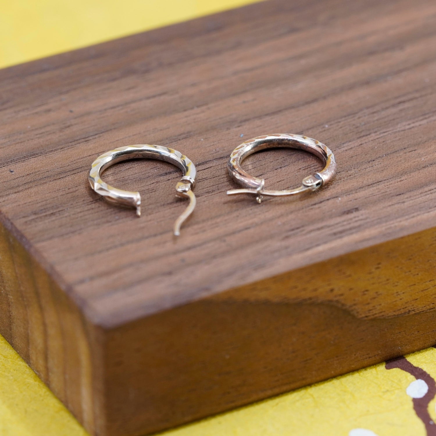 0.5", vermeil gold over Sterling silver earrings, 925 textured hoops, stamped 925