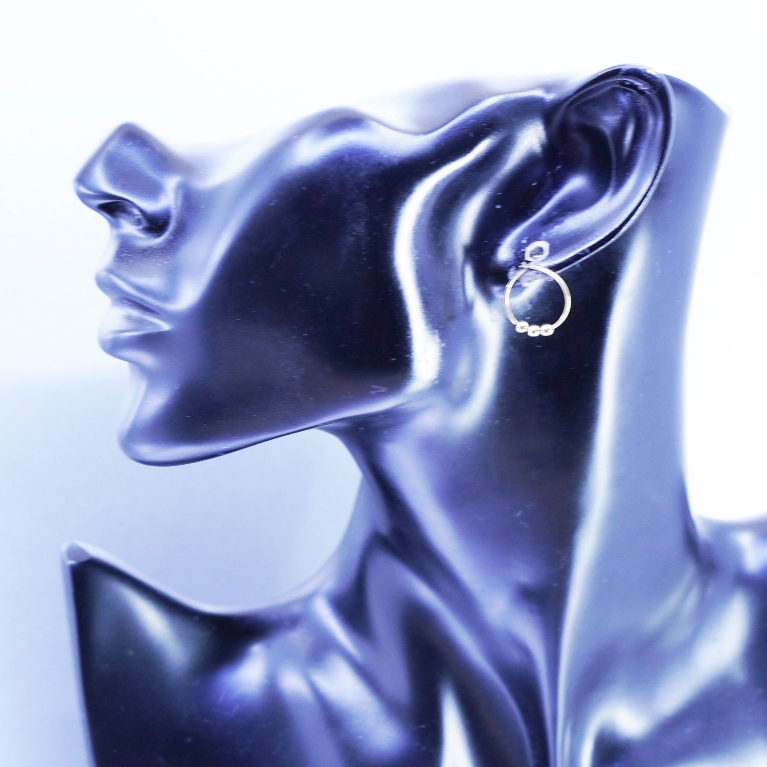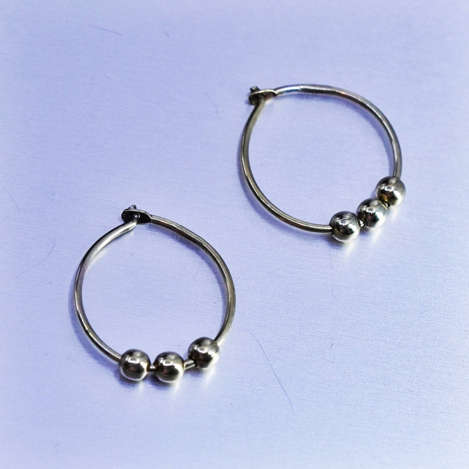 0.5", vintage vermeil gold over Sterling silver handmade earrings, 925 hoops and beads, stamped 925