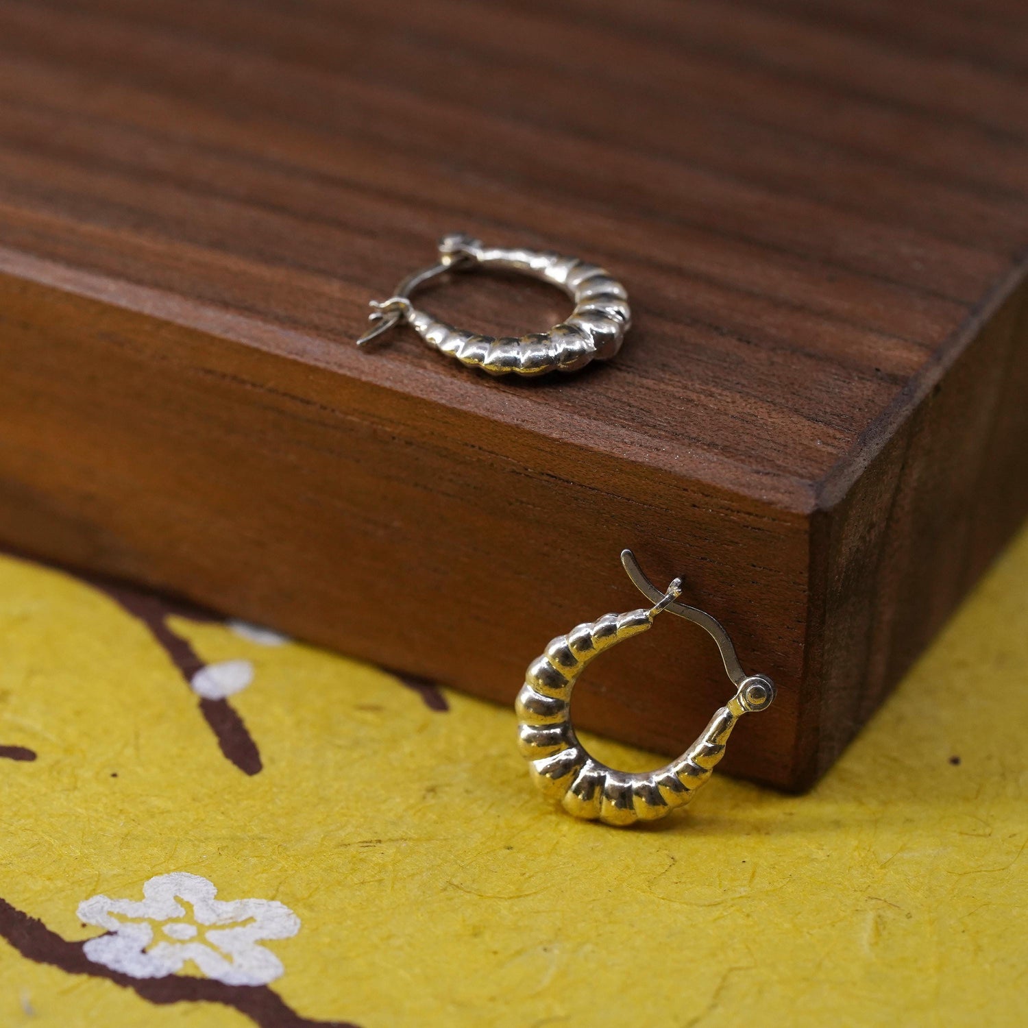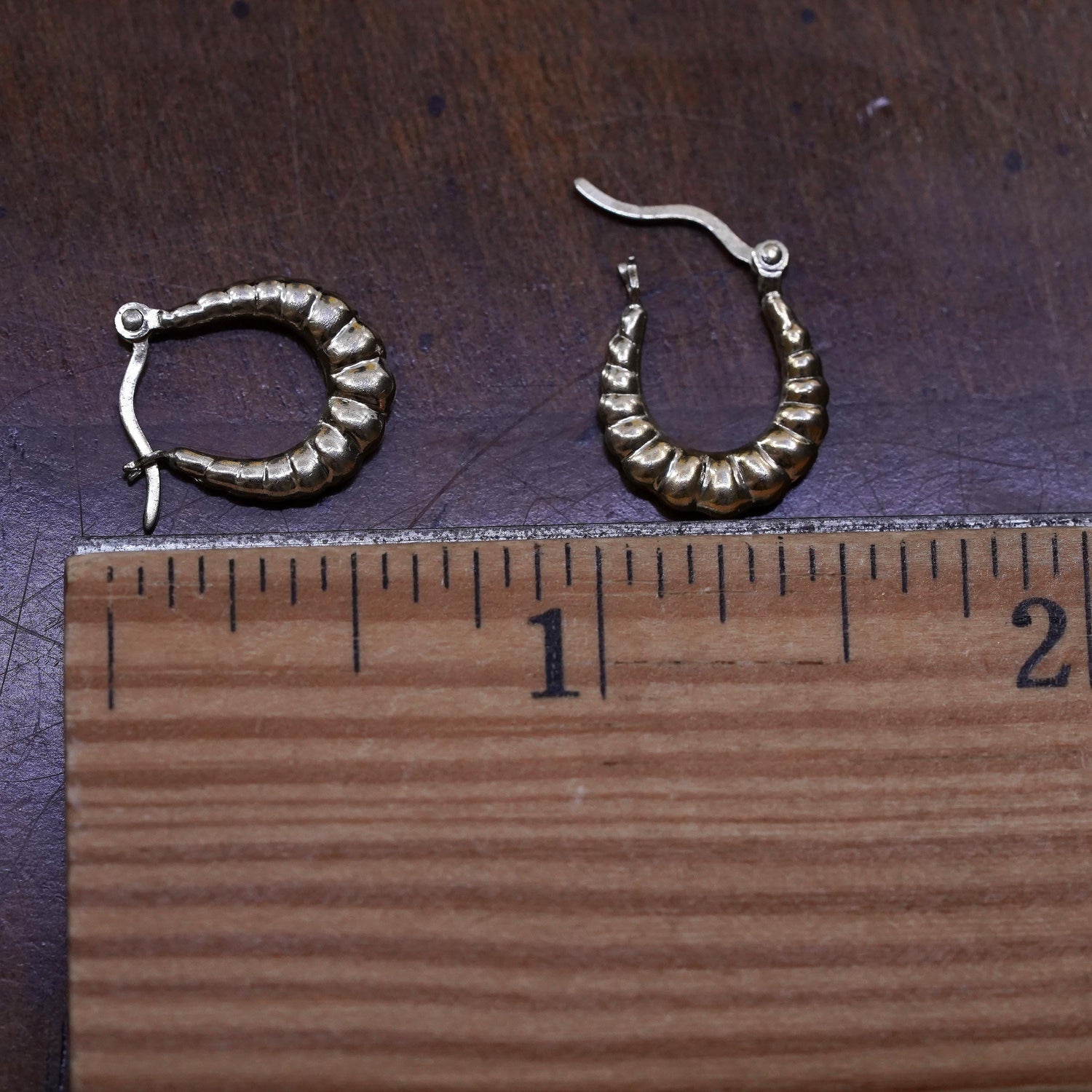 0.5", Vintage vermeil gold over Sterling silver handmade earrings, ribbed 925 hoops, Stamped 925