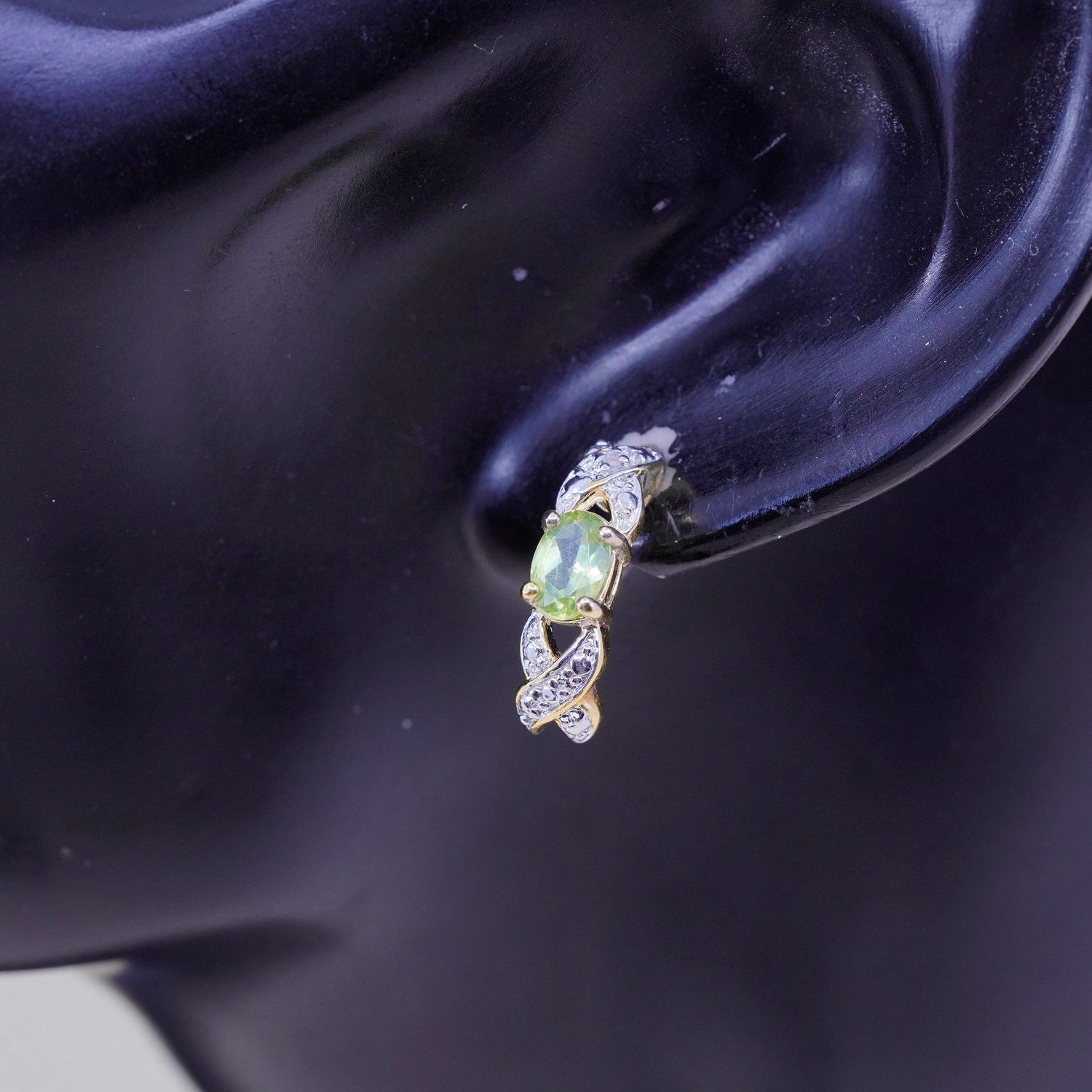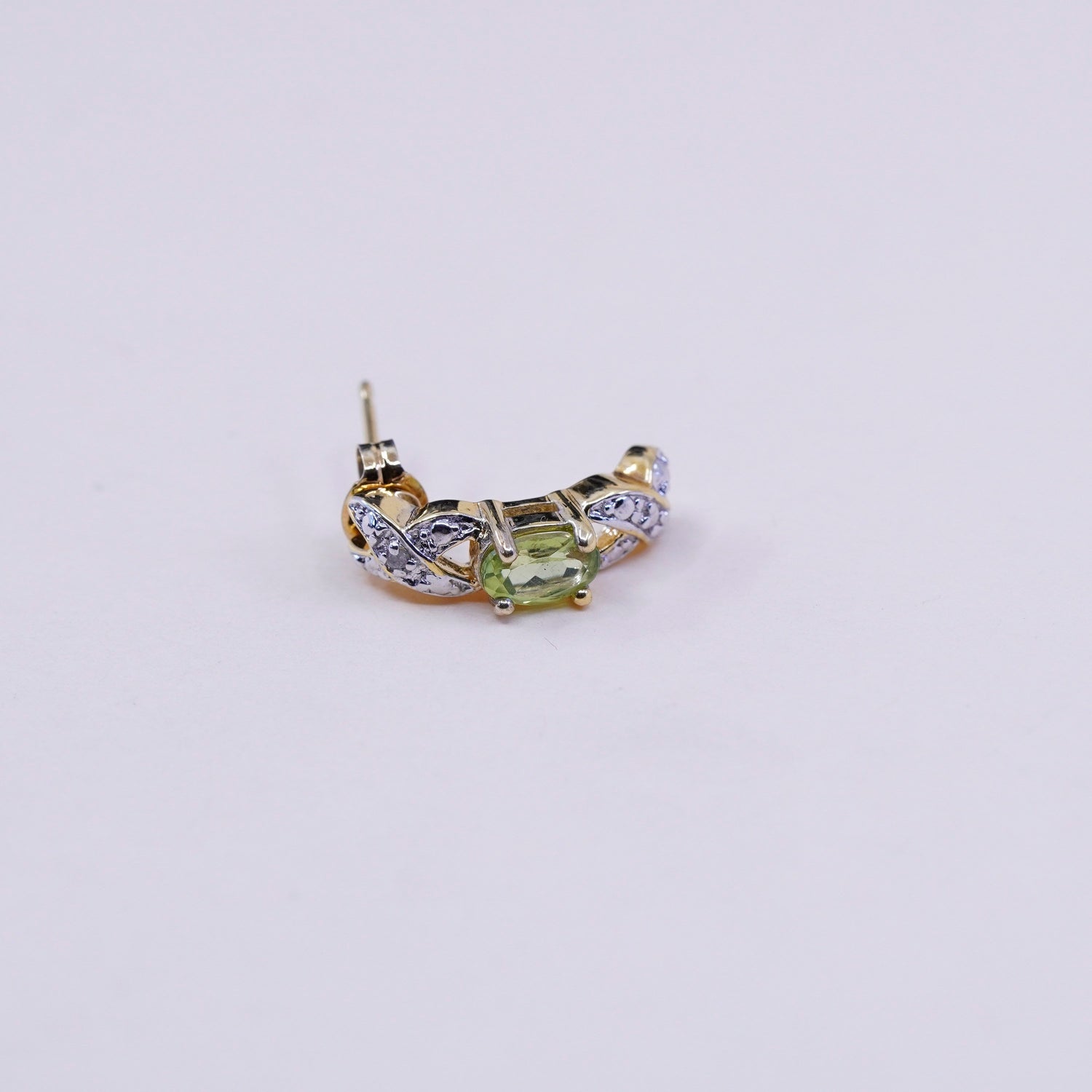 0.5", Vintage vermeil gold over sterling silver earrings, 925 huggie studs with peridot diamond, stamped 925