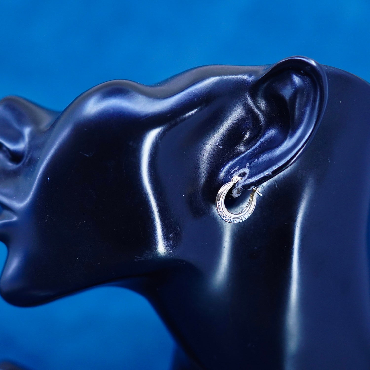 0.5", vintage vermeil yellow gold over Sterling silver textured hoop earrings, 925 huggie, stamped 925 925