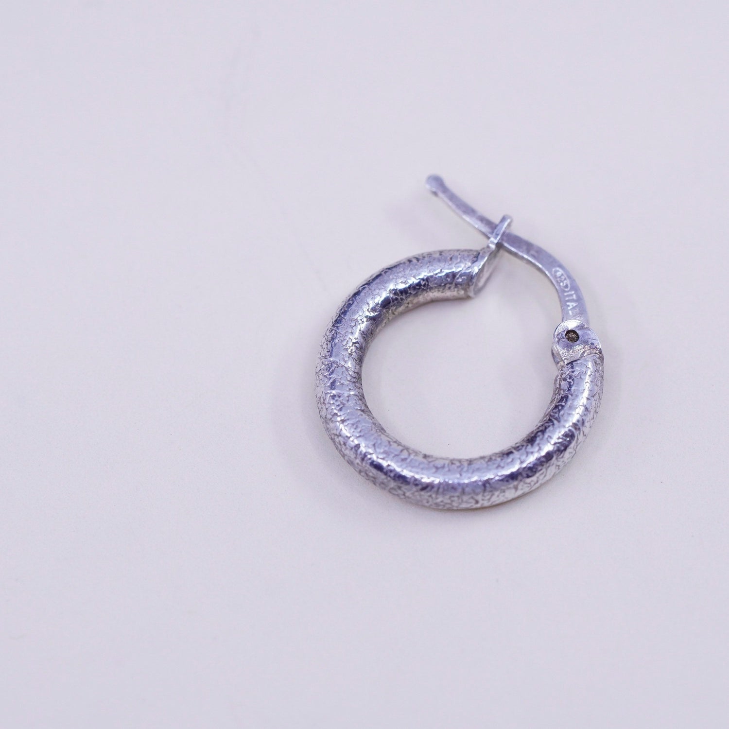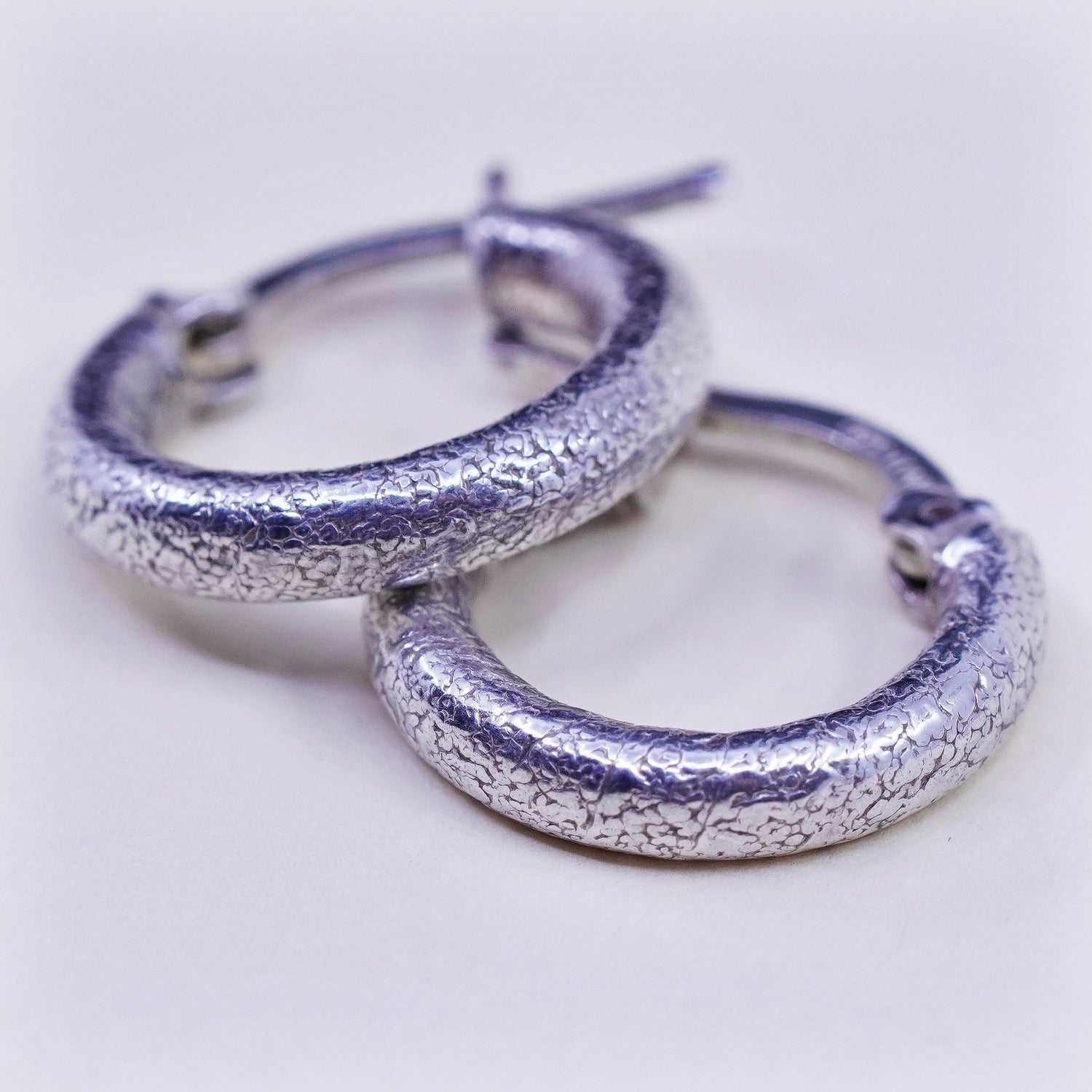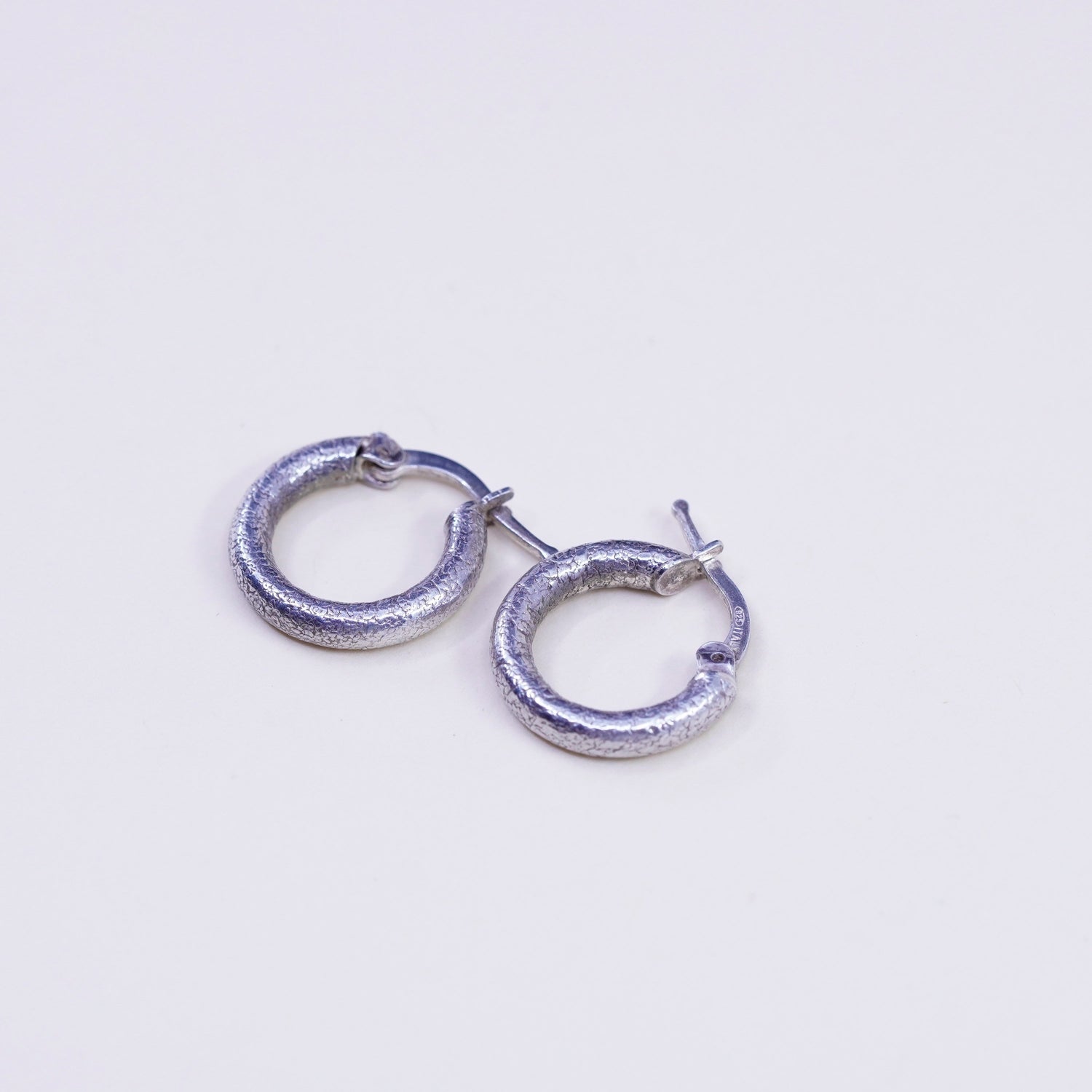 0.5”, Vintage Italy sterling silver loop earrings, textured 925 hoops, huggie