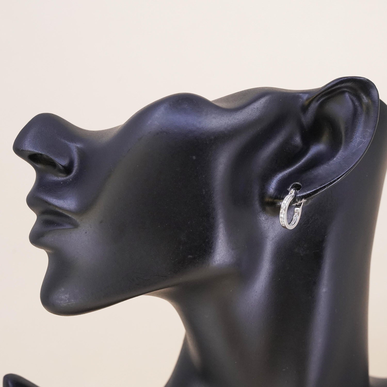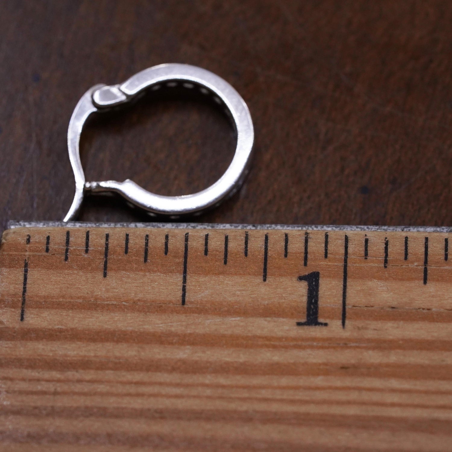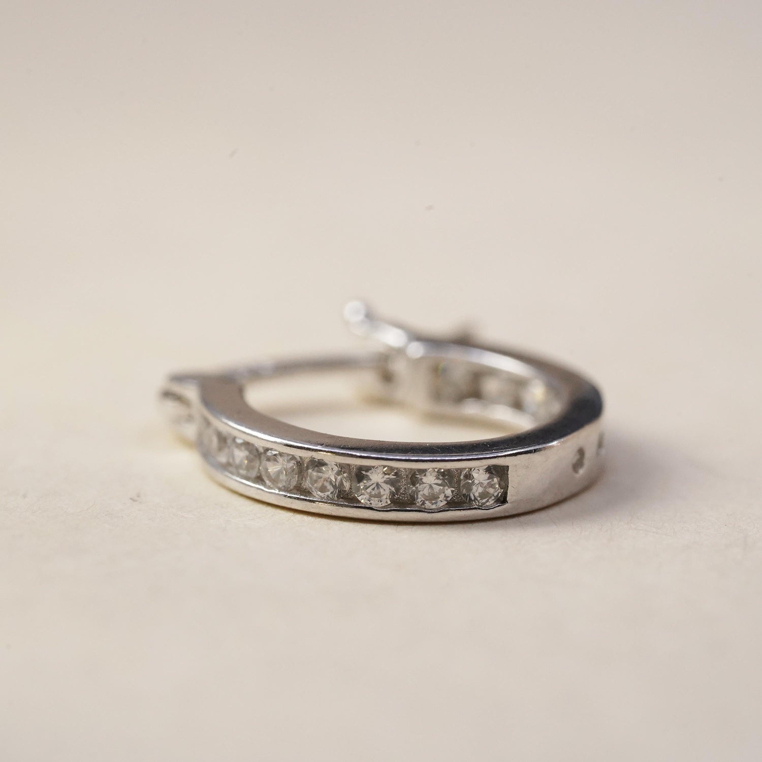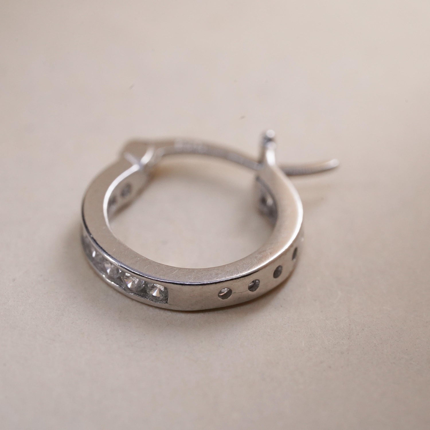 0.5", Vintage matte sterling silver single earring, 925 huggie hoop with cz, stamped 925