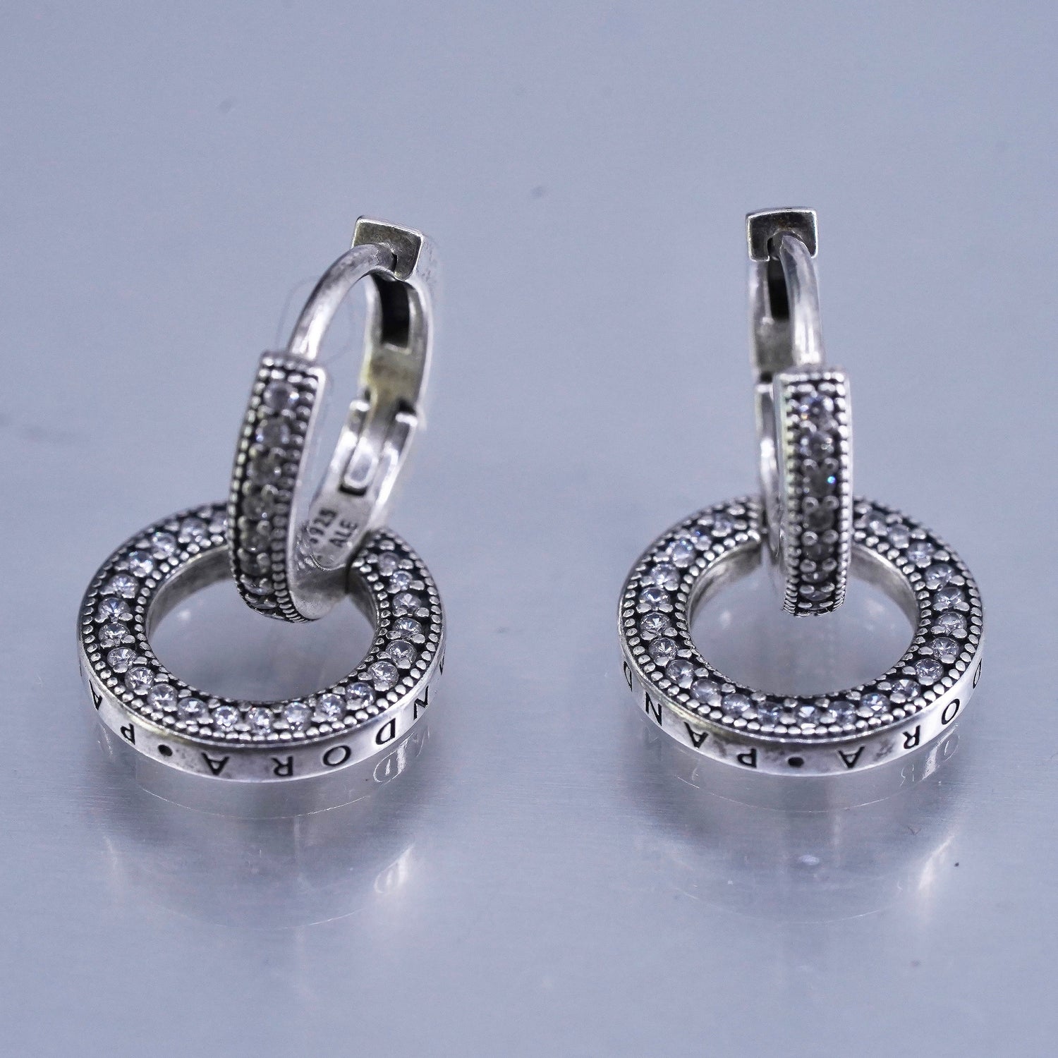 0.5”, vintage Pandora ALE Sterling silver earrings, 925 entwined hoops with cz