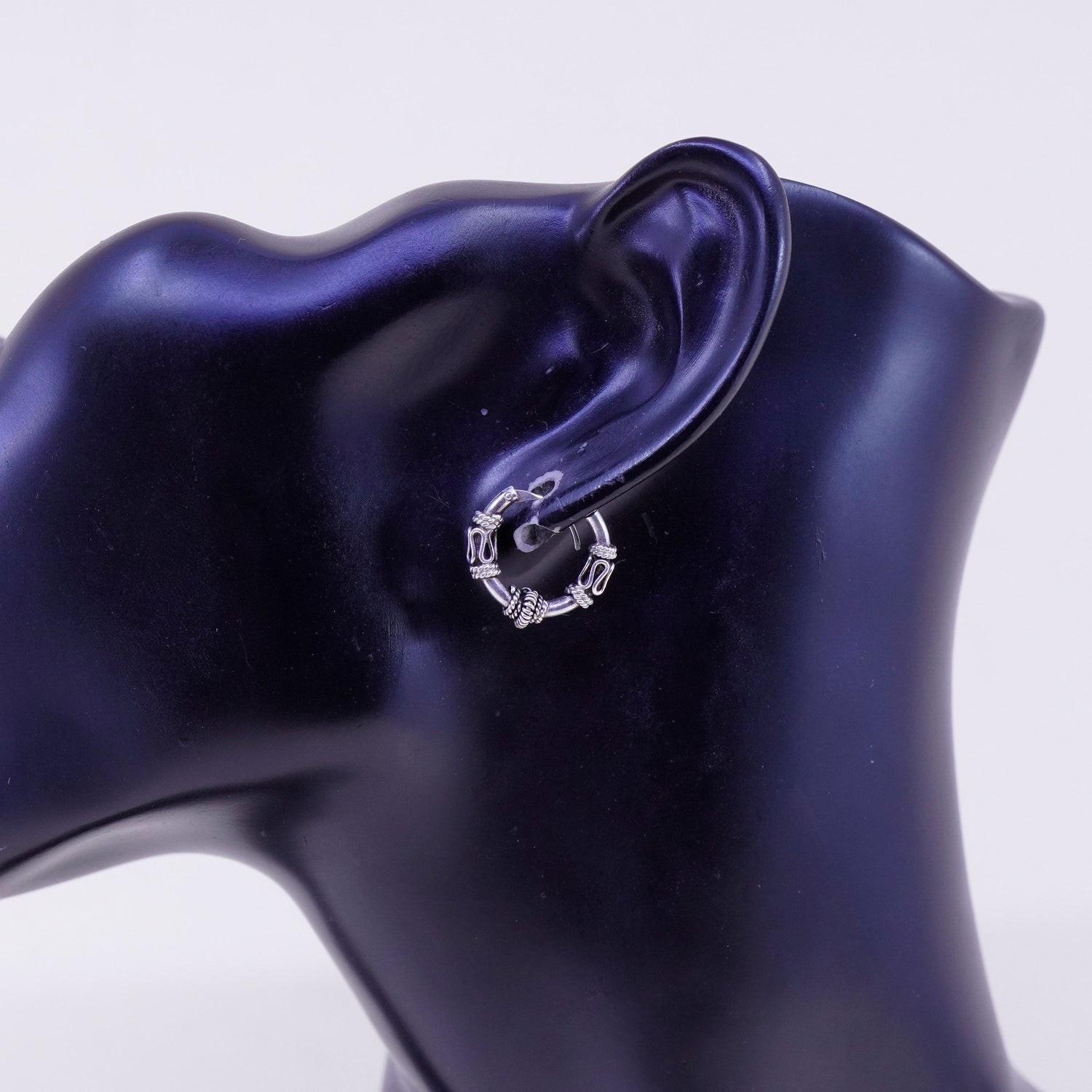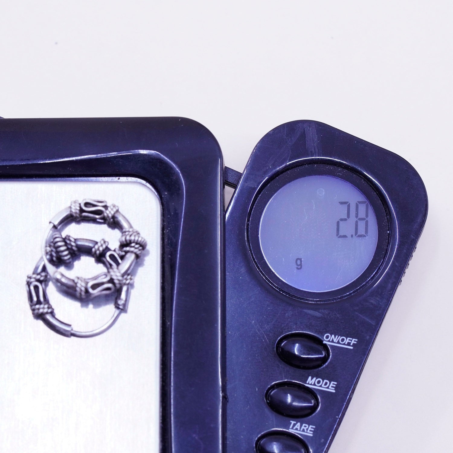 0.5", Vintage sterling 925 silver loop handmade earrings, bali wired hoops, Stamped 925