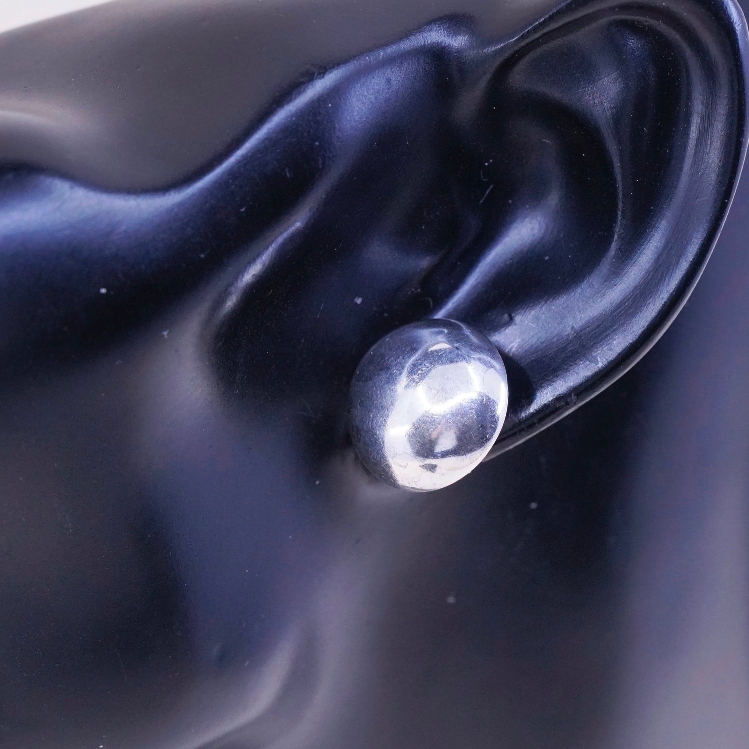 0.5”, Vintage sterling silver button studs, handmade puffy 925 earrings