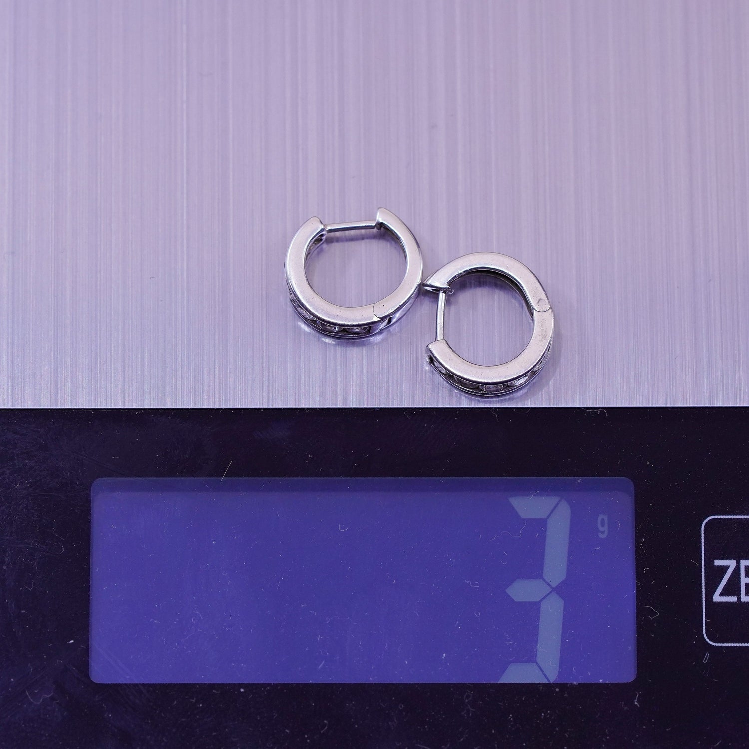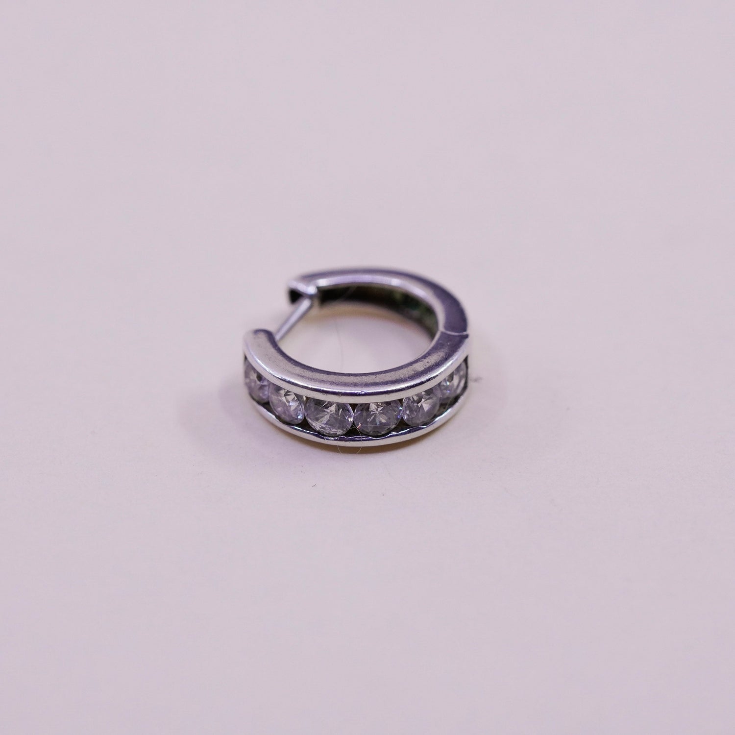 0.5", Vintage sterling silver earrings, 925 hoops, huggie, with cz, stamped 925