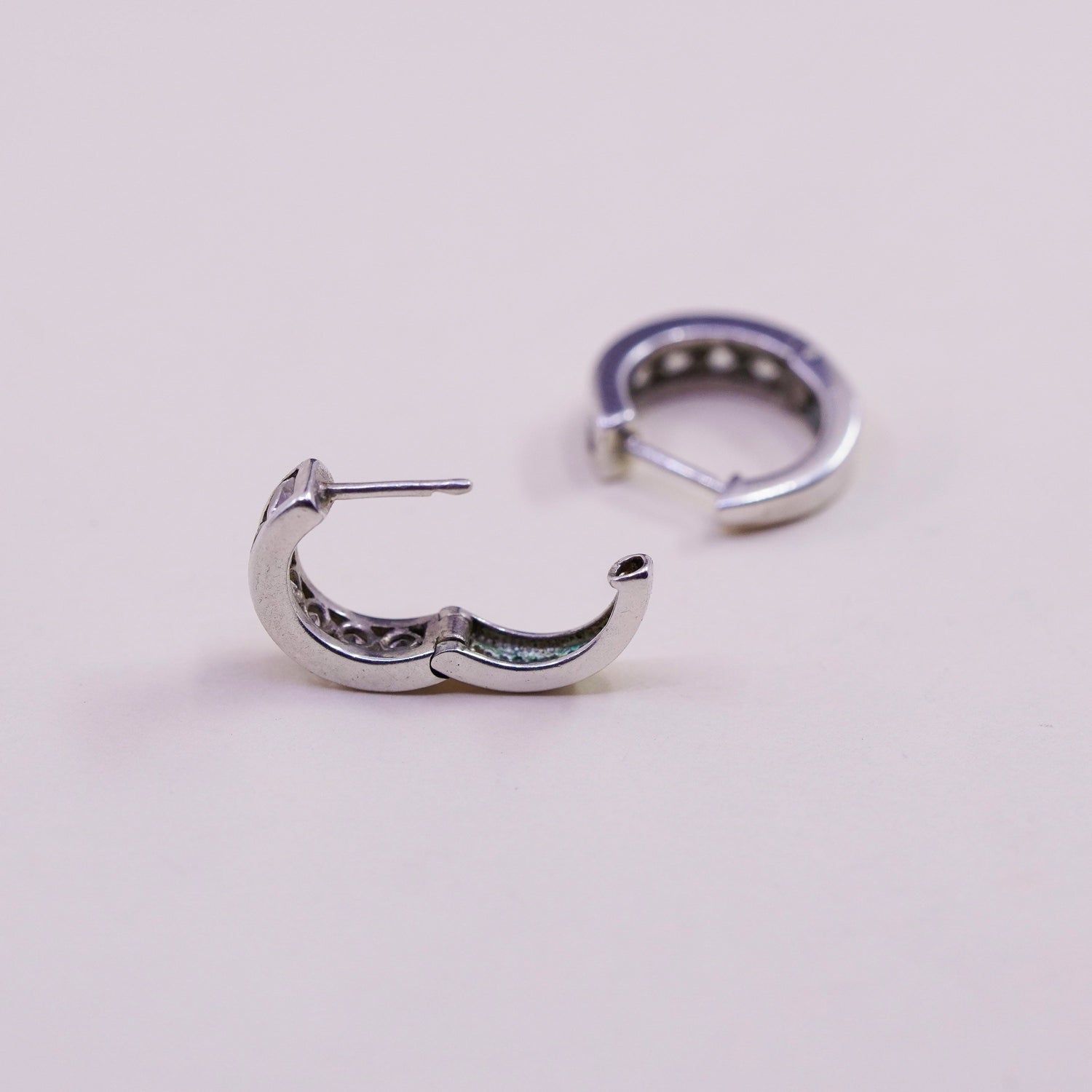 0.5”, Vintage sterling silver earrings, 925 hoops, huggie, with cz
