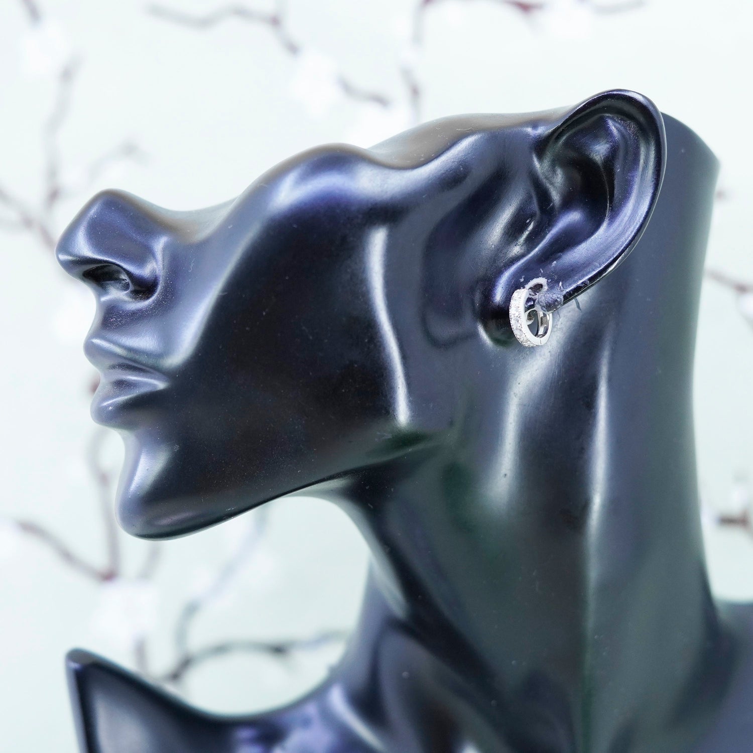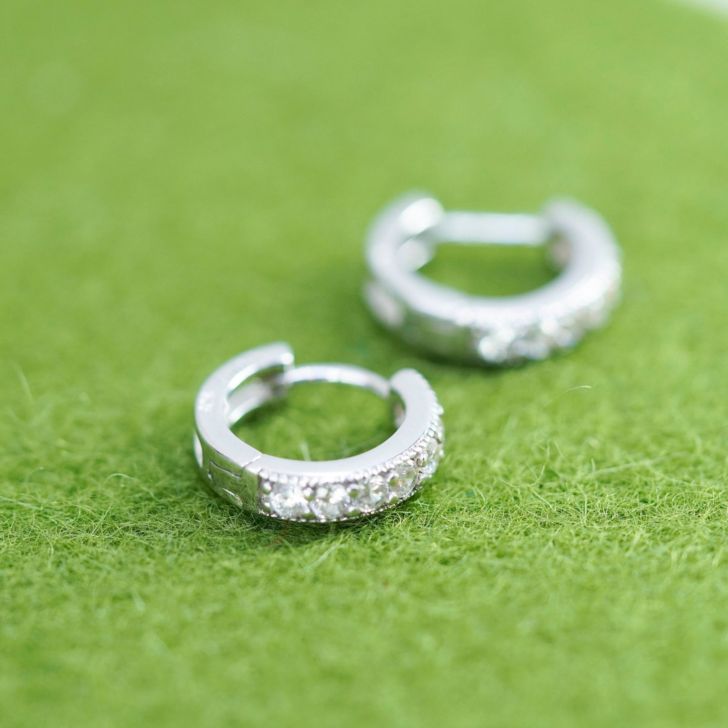 0.5", Vintage sterling silver earrings, 925 hoops, huggie, with cz, stamped 925