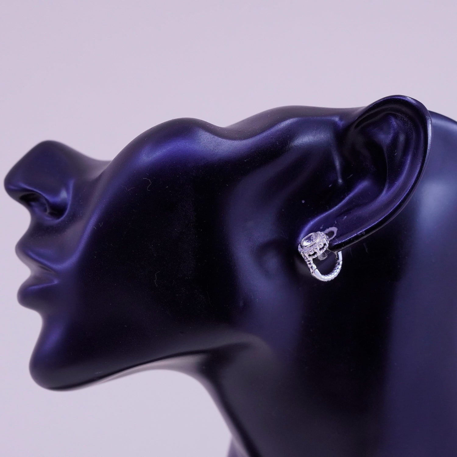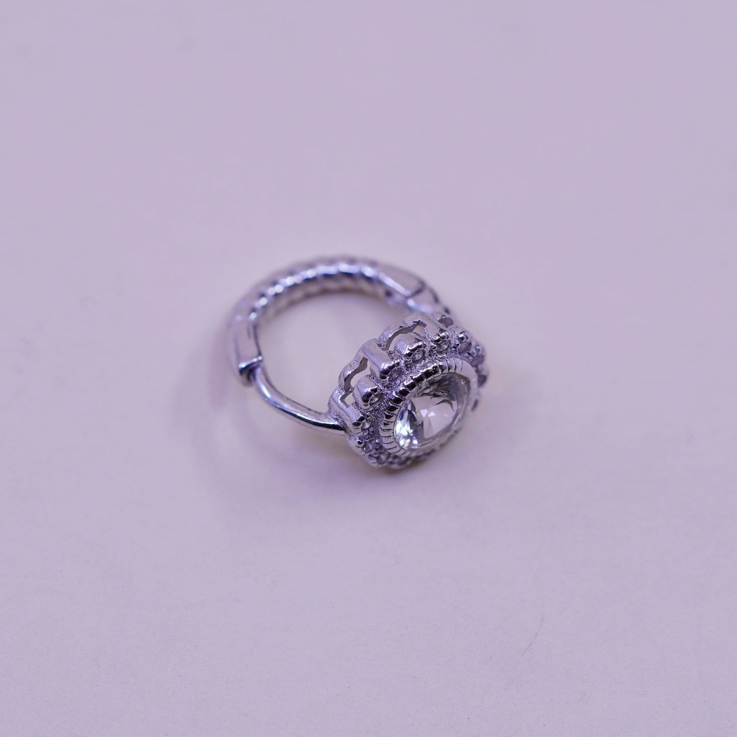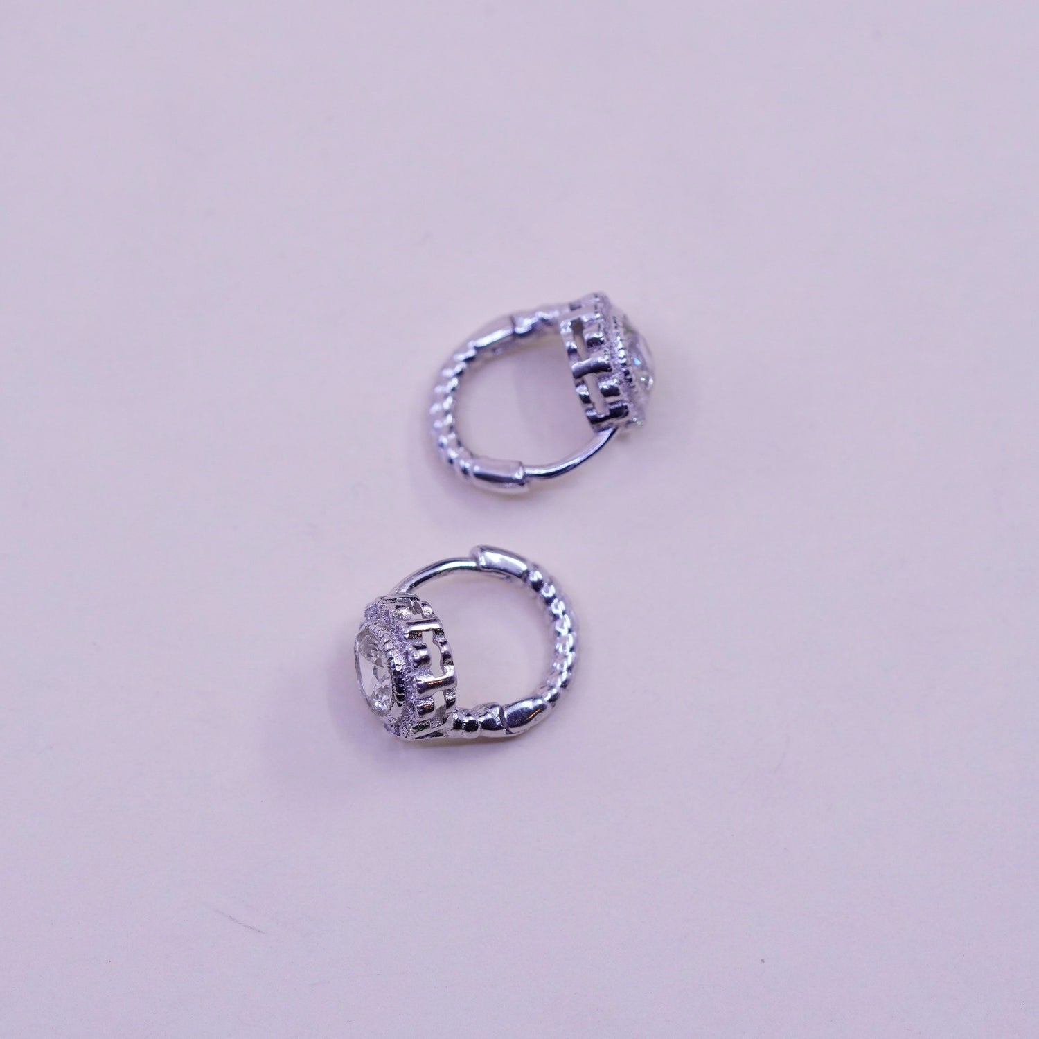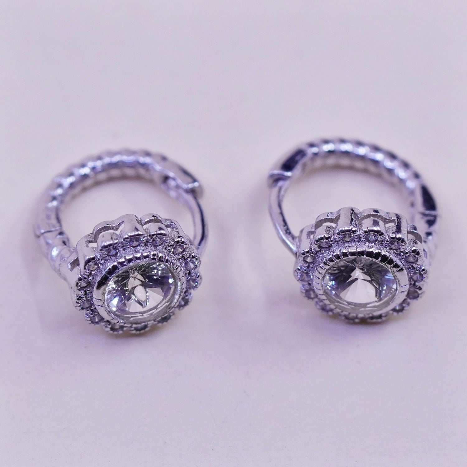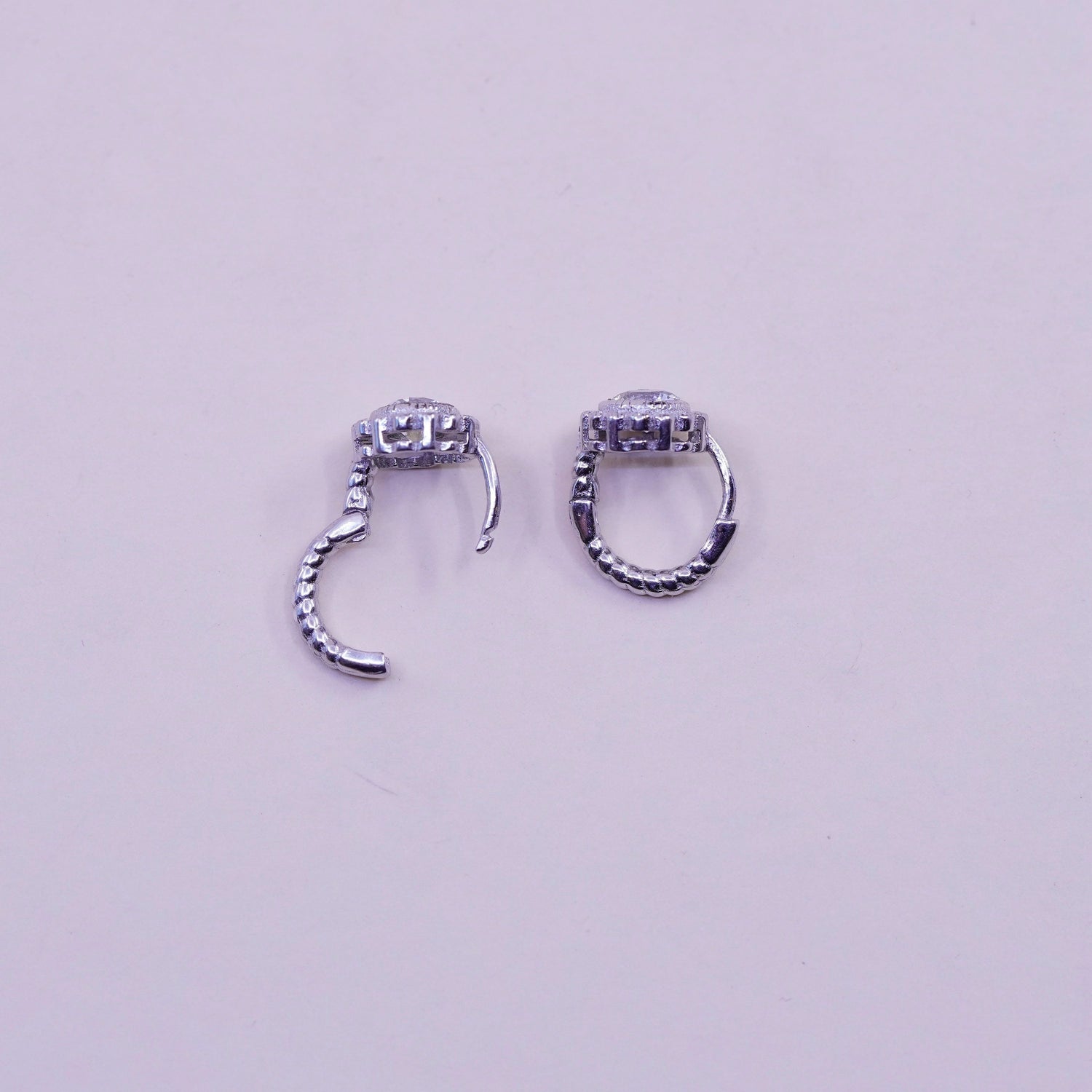 0.5", Vintage sterling silver earrings, 925 hoops, huggie, with cz flower, stamped 925
