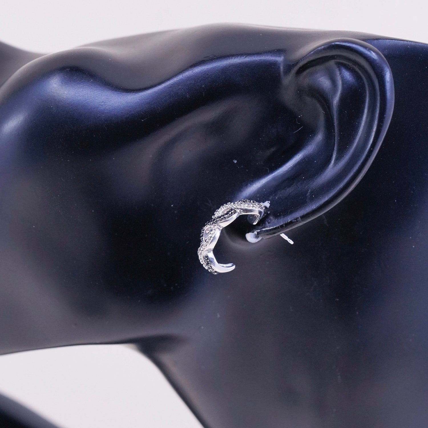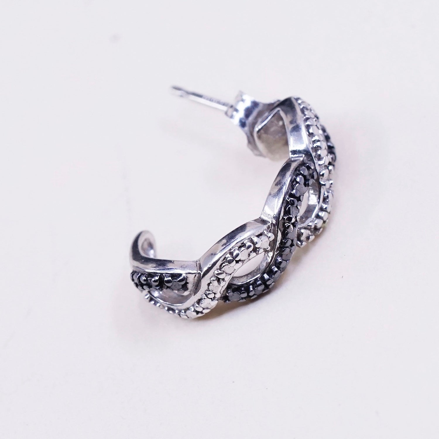 0.5”, Vintage sterling silver earrings, 925 silver huggie with genuine diamond