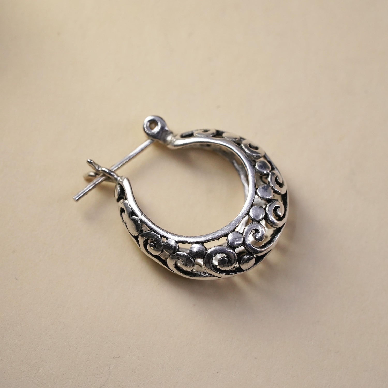 0.5", Vintage sterling silver filigree single earring, fashion minimalist primitive hoop, stamped 925