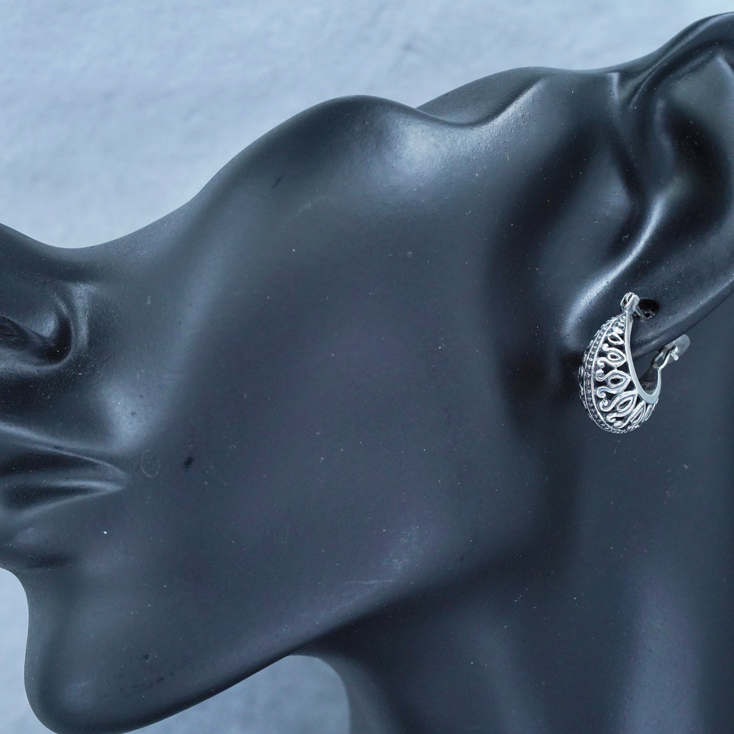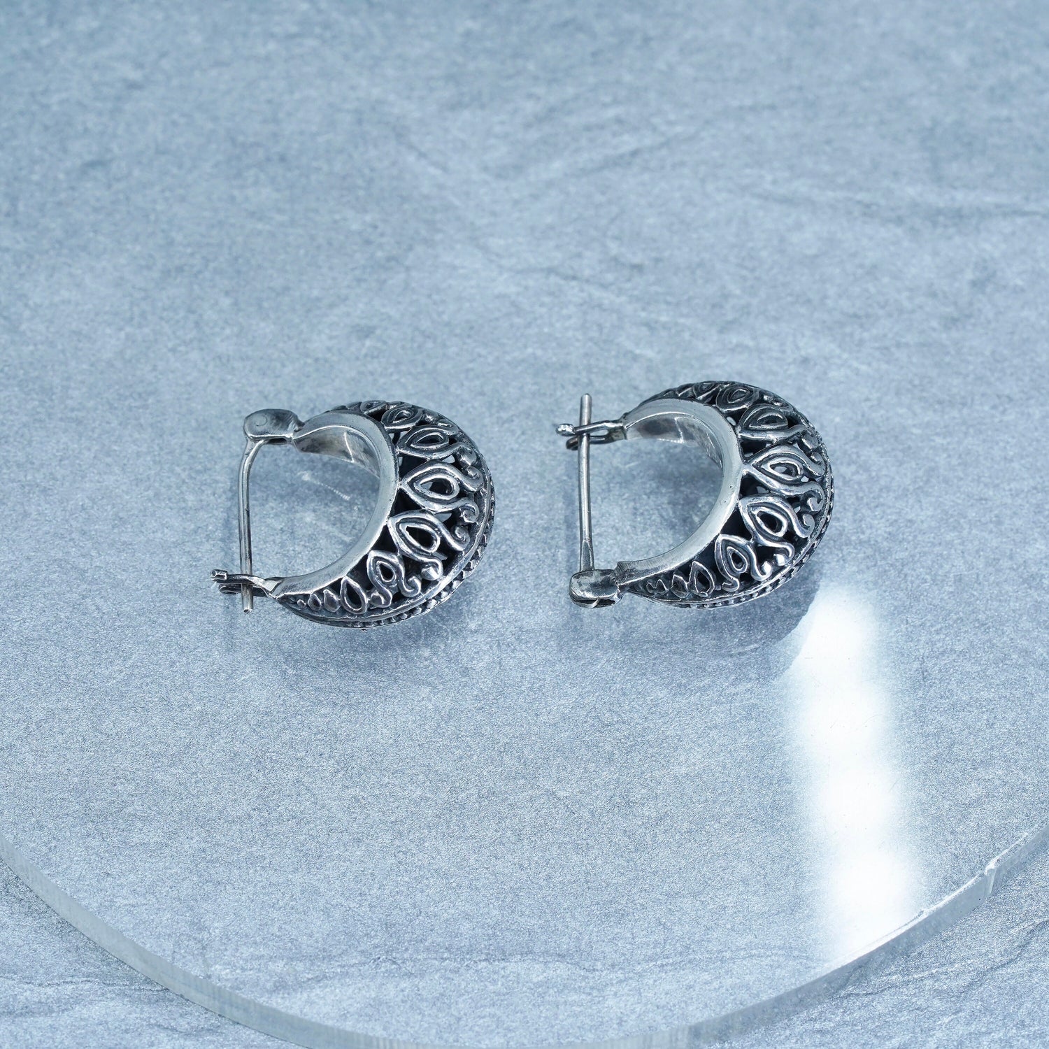 0.5”, vintage Sterling silver handmade earrings, 925 filigree huggie hoops