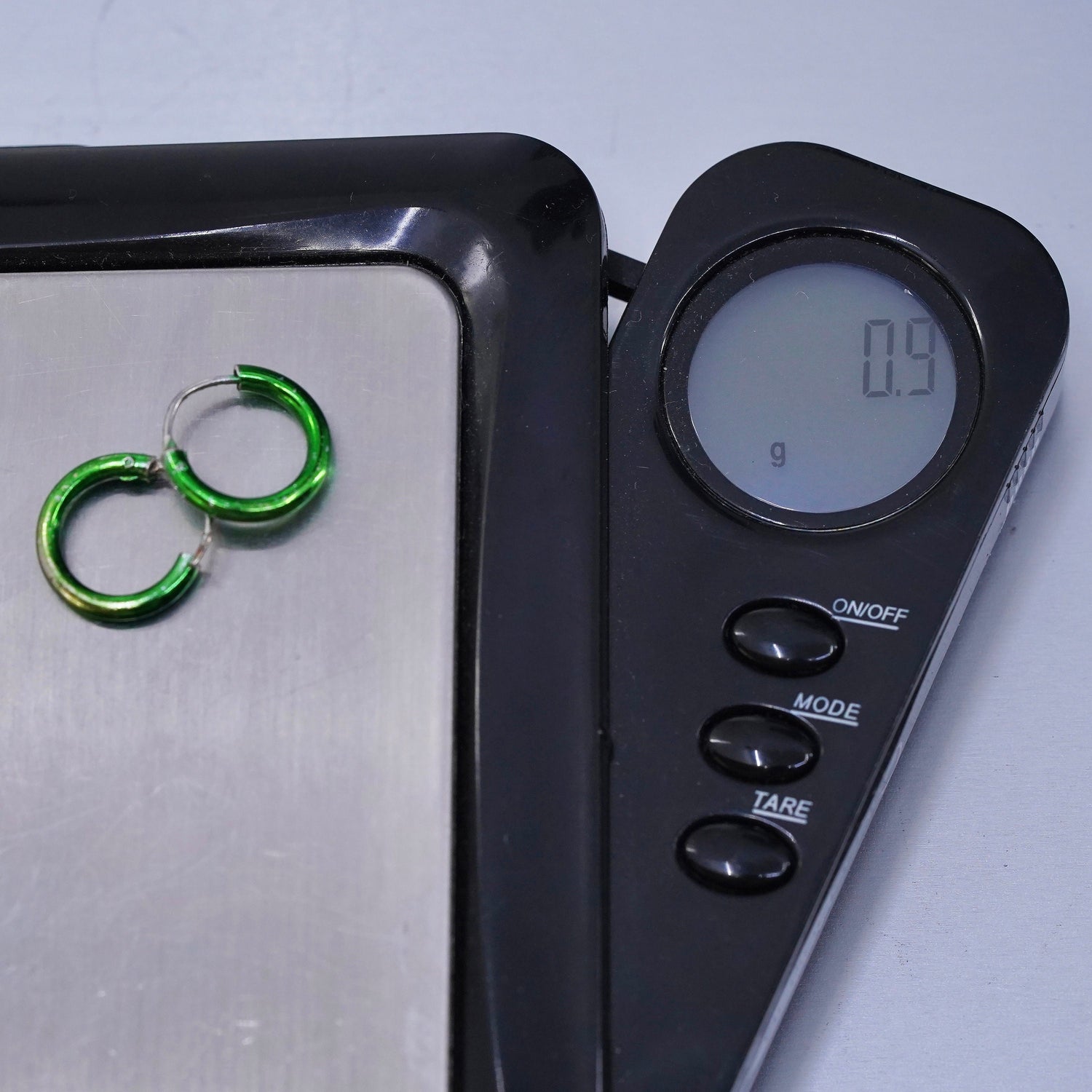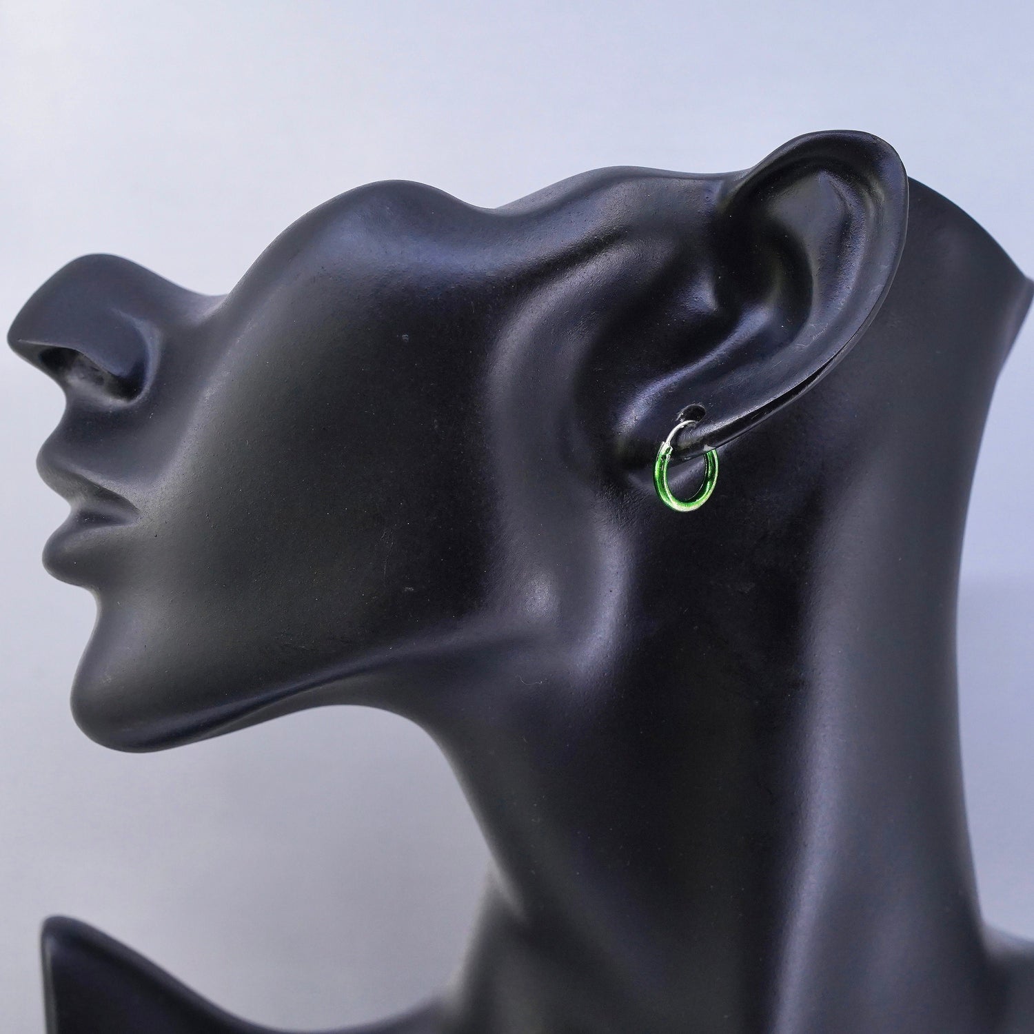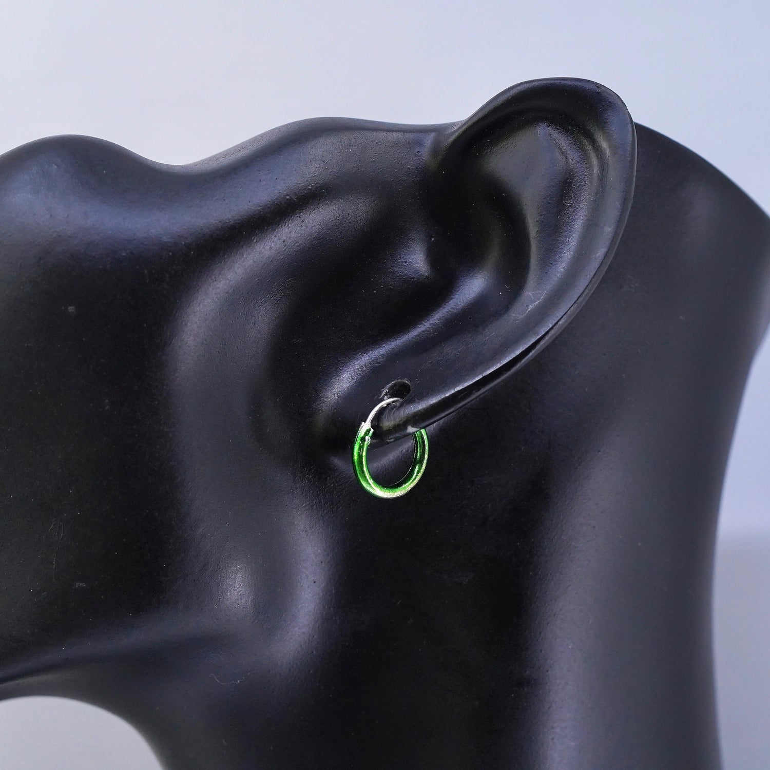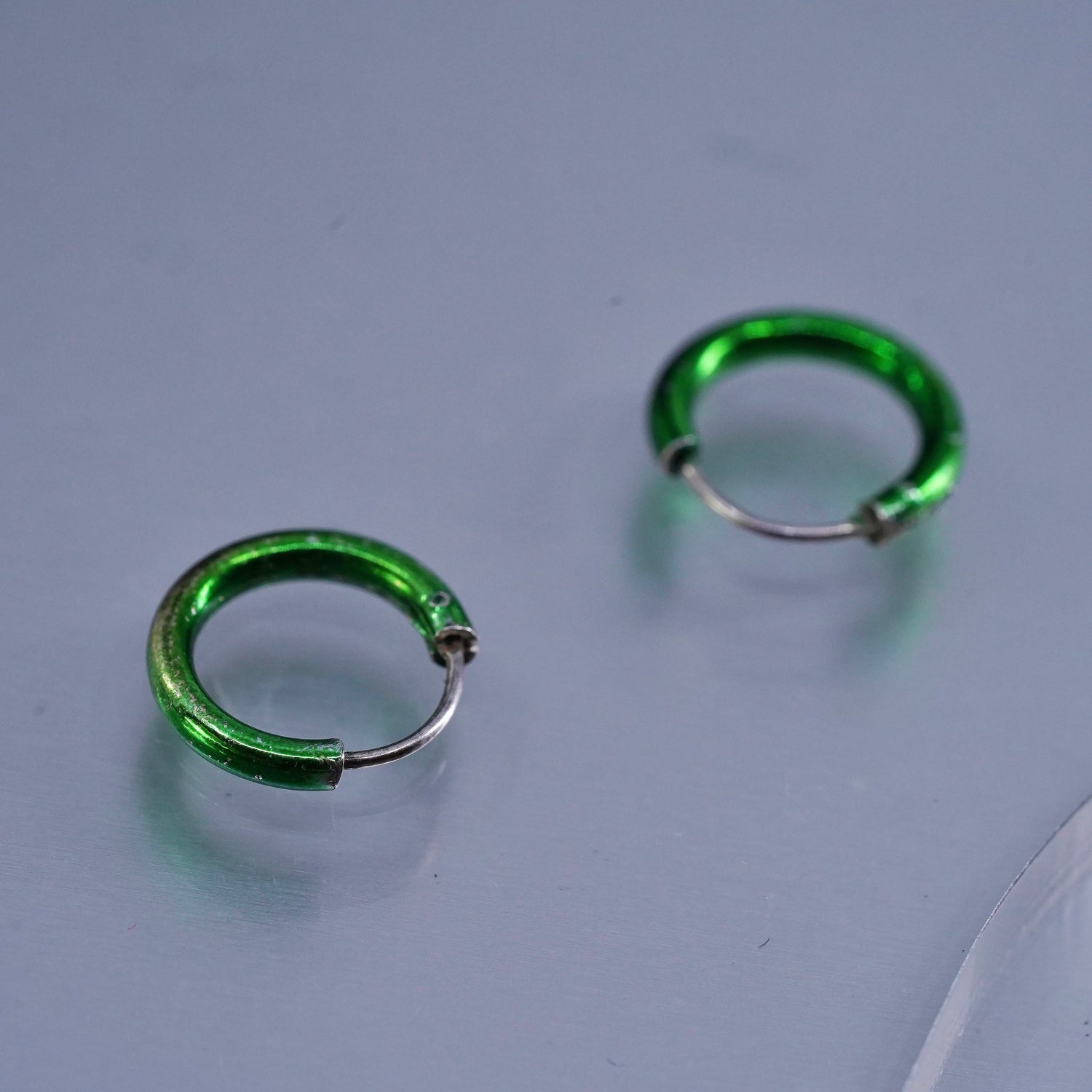 0.5", vintage Sterling silver handmade earrings, 925 green hoops, silver tested