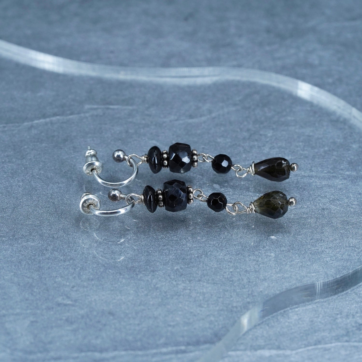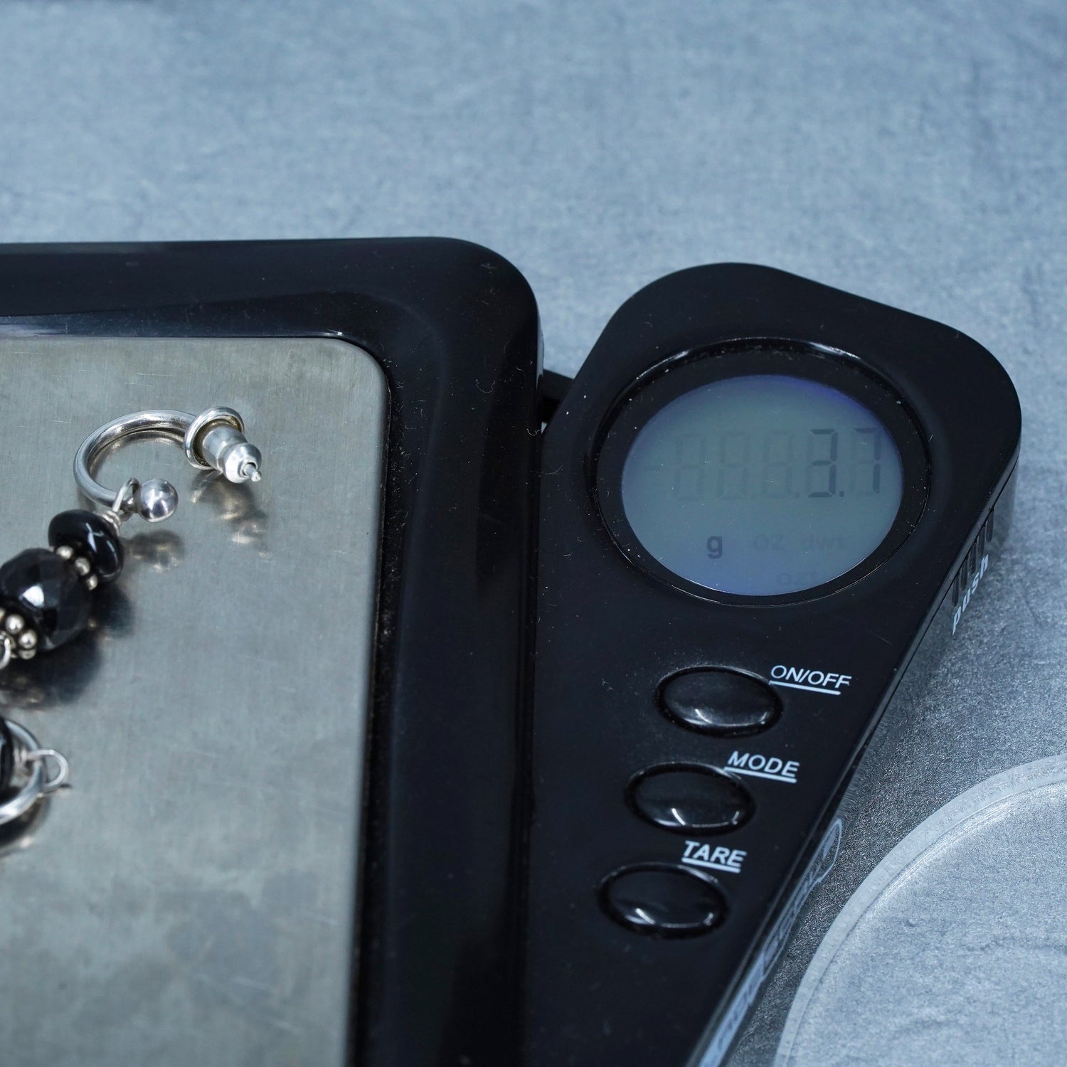 0.5", vintage Sterling silver handmade earrings, 925 hoops with onyx beads, stamped 925