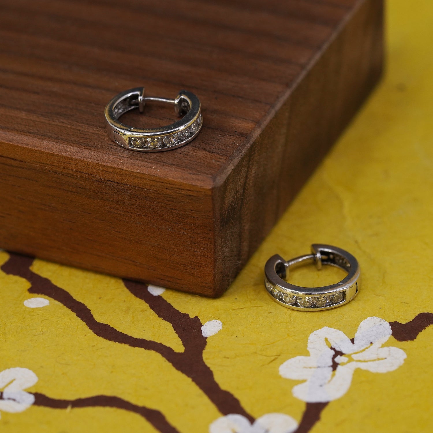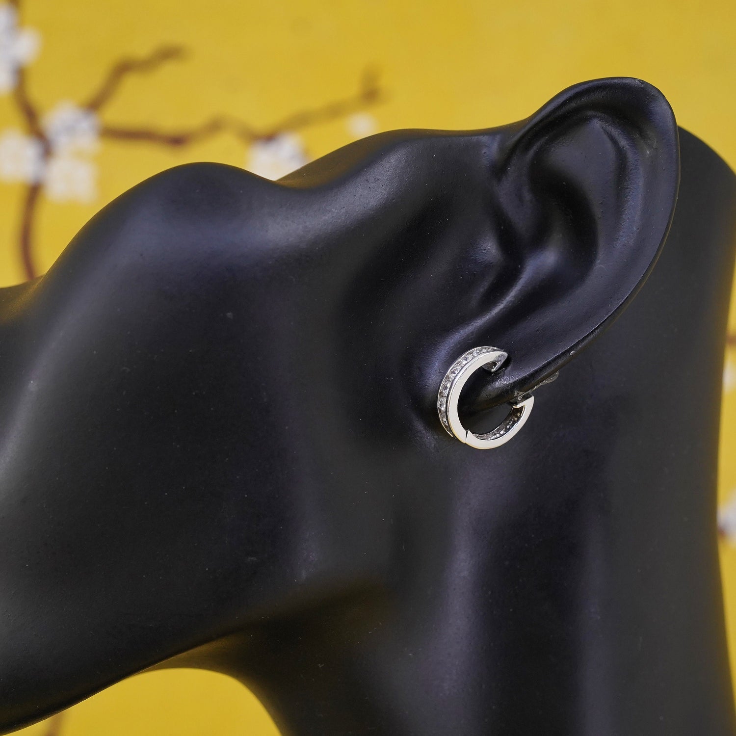 0.5", vintage Sterling silver handmade earrings, 925 huggie hoops w/ cluster cz