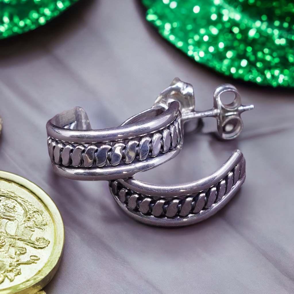 0.5", vintage Sterling silver handmade earrings, 925 silver textured hoops