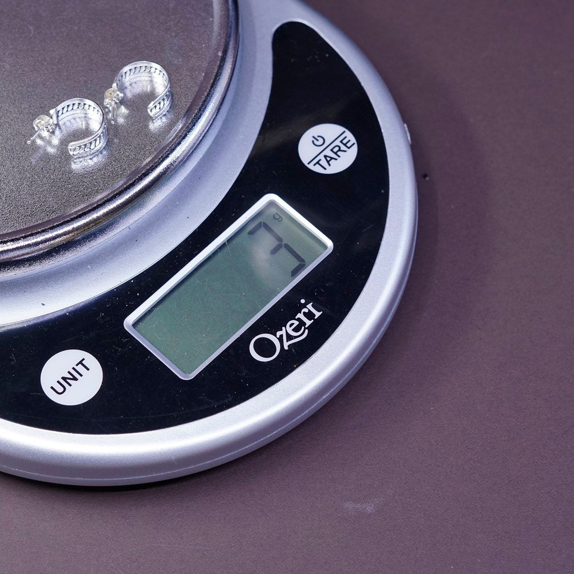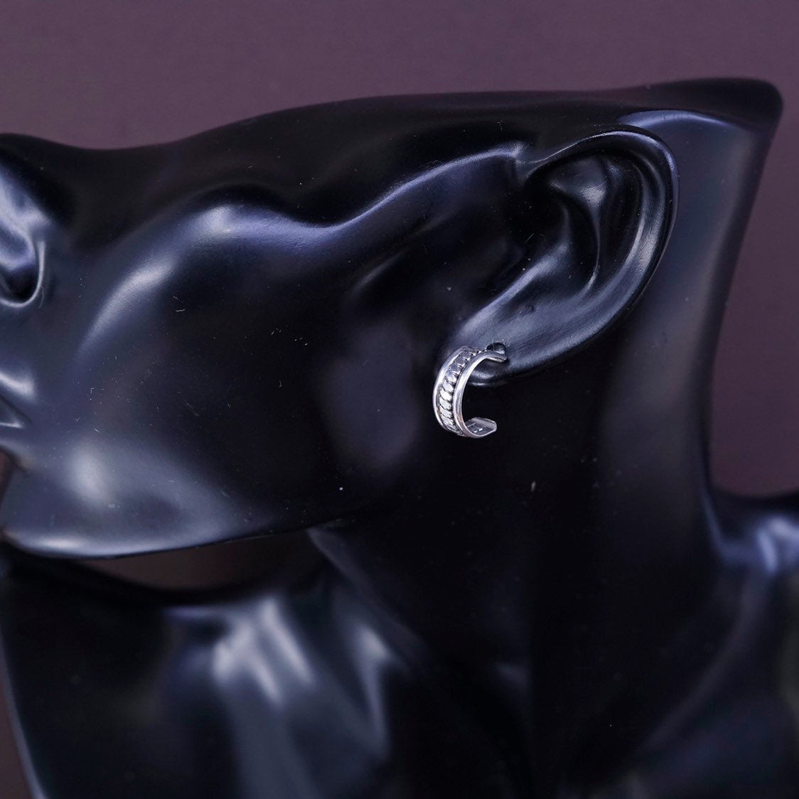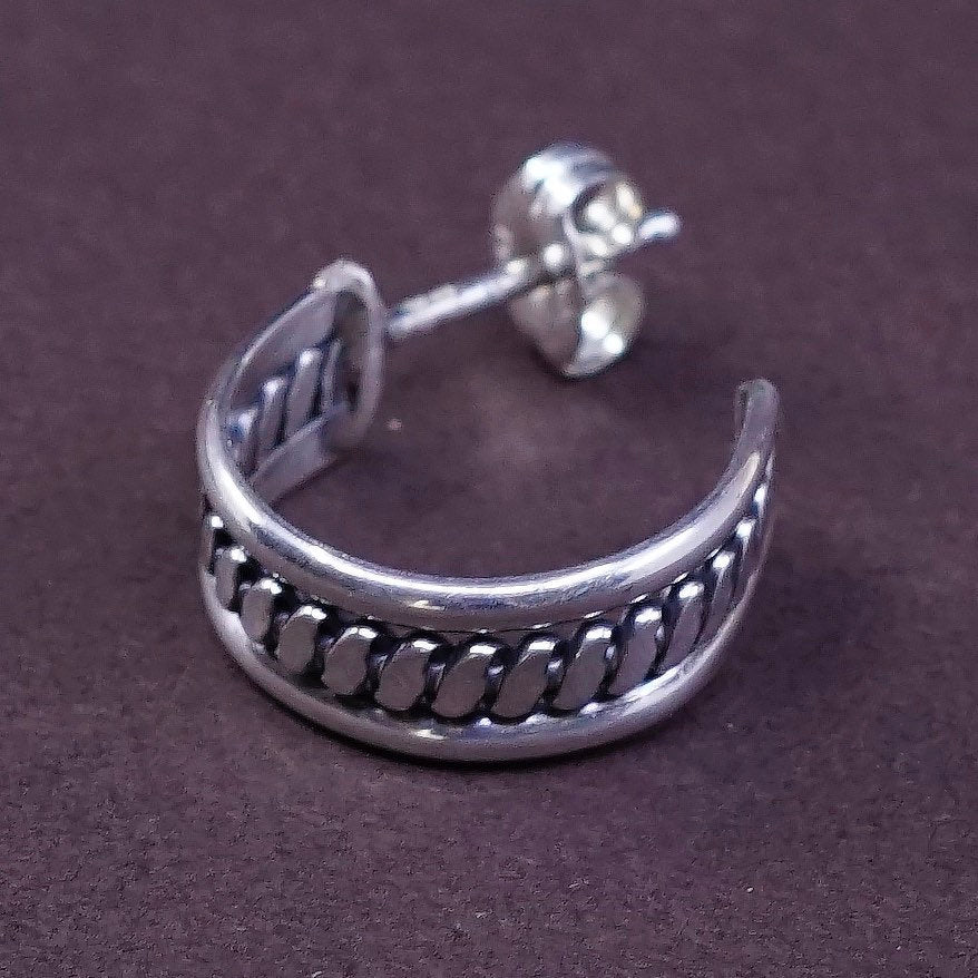 0.5", vintage Sterling silver handmade earrings, 925 silver textured hoops, stamped sterling