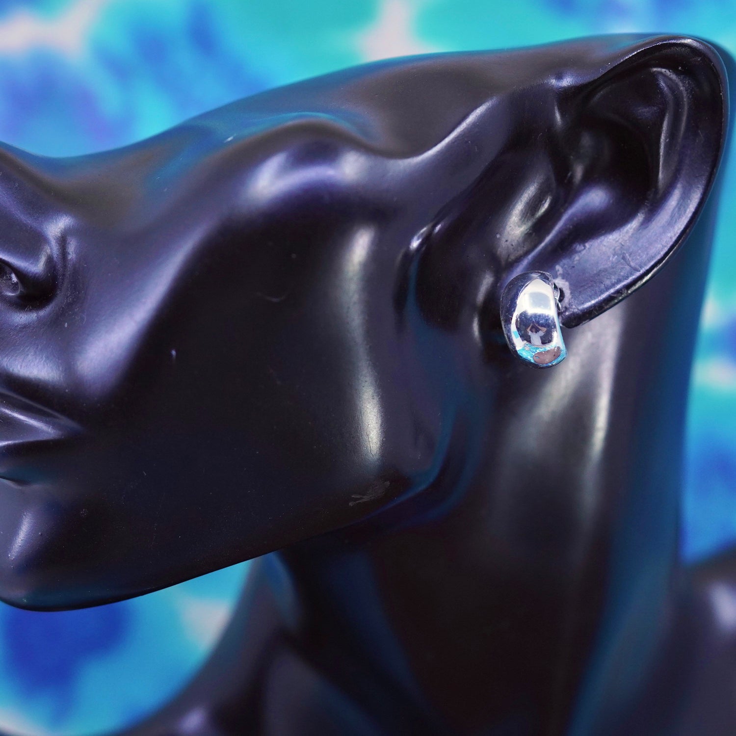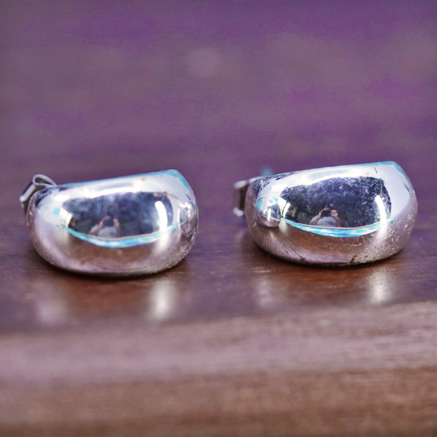 0.5", Vintage Sterling silver handmade earrings, moon shaped 925 Huggie studs, stamped 925