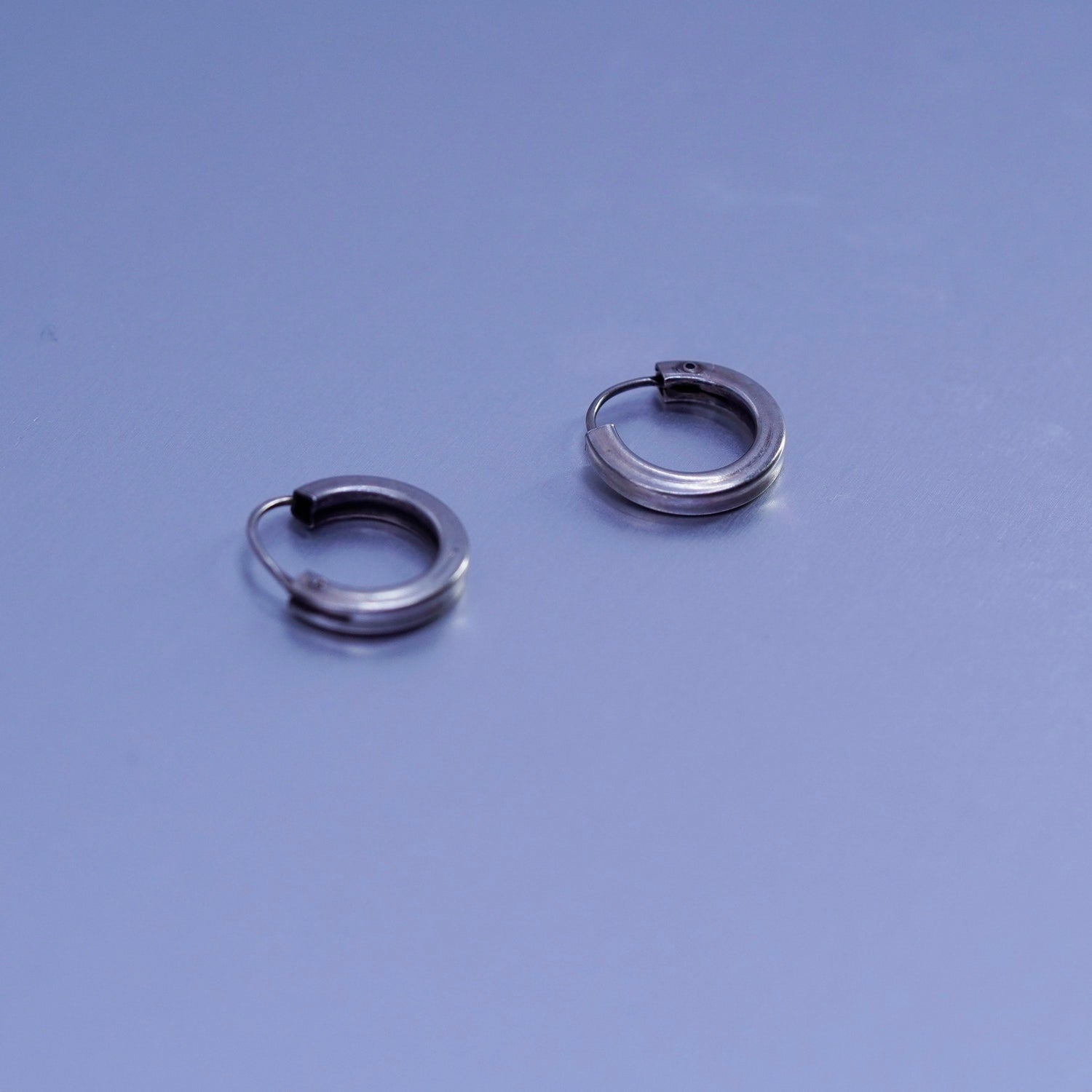 0.5", vintage Sterling silver handmade earrings, textured 925 hoops, silver tested