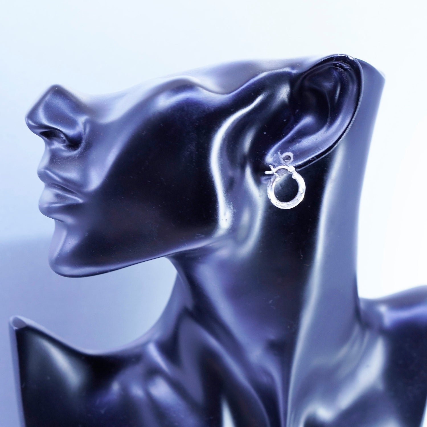 0.5”, vintage Sterling silver handmade earrings, textured 925 hoops