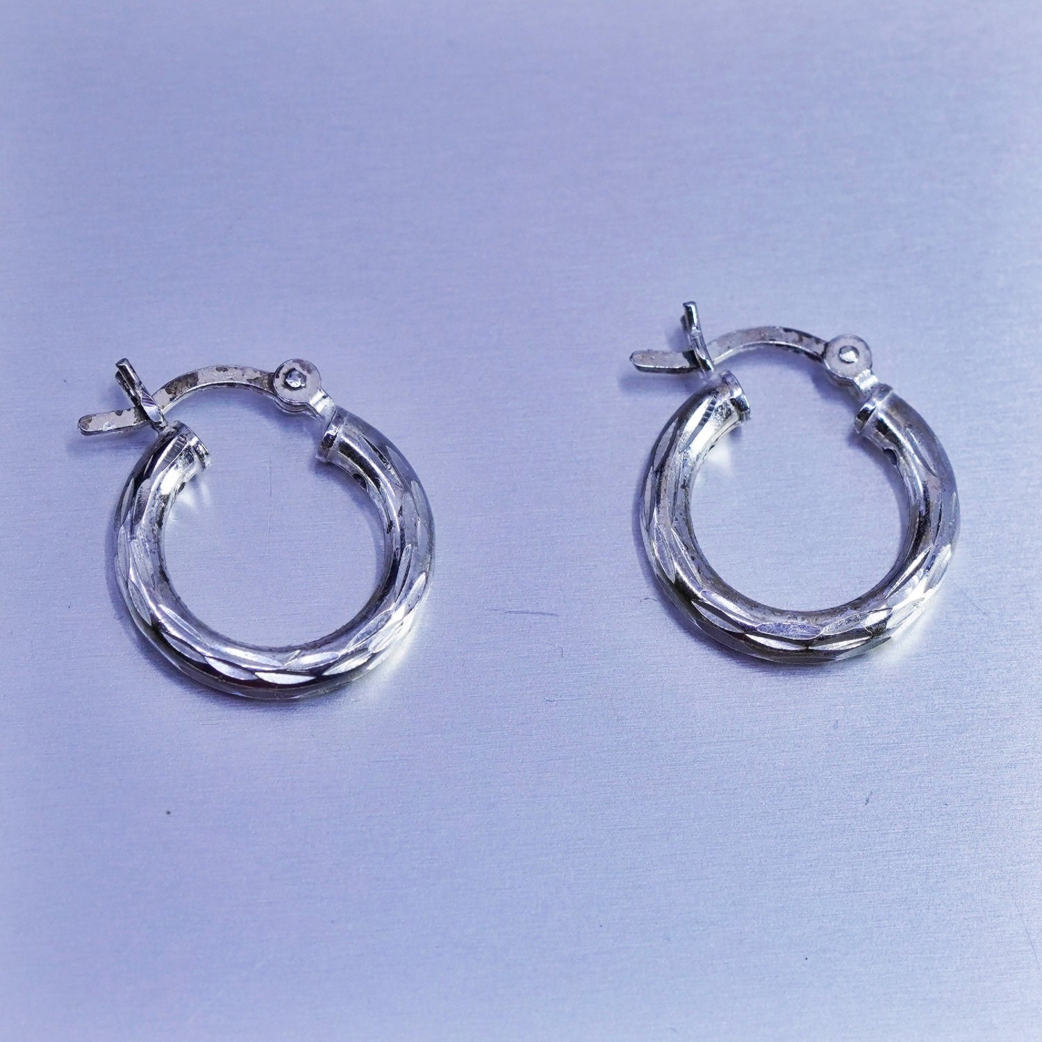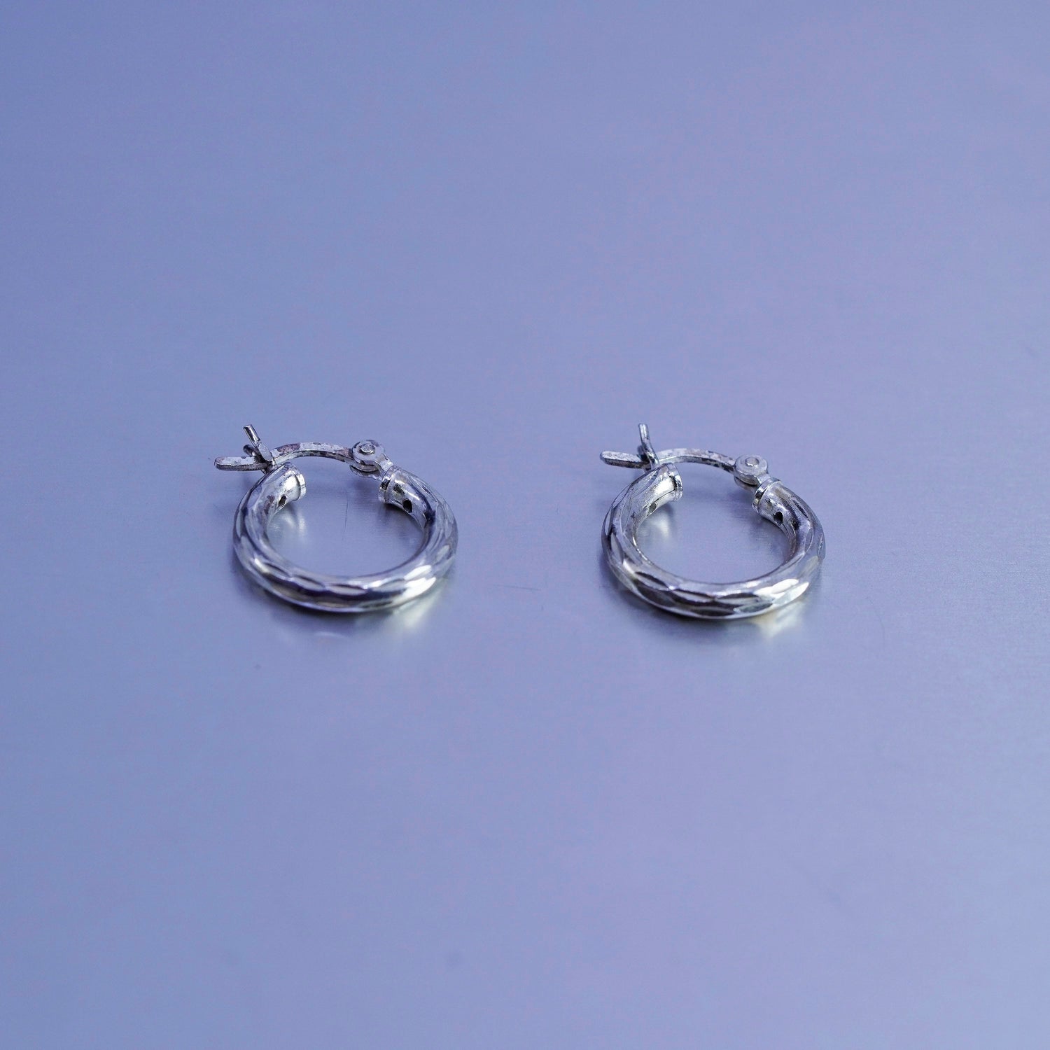 0.5", vintage Sterling silver handmade earrings, textured 925 hoops, stamped 925
