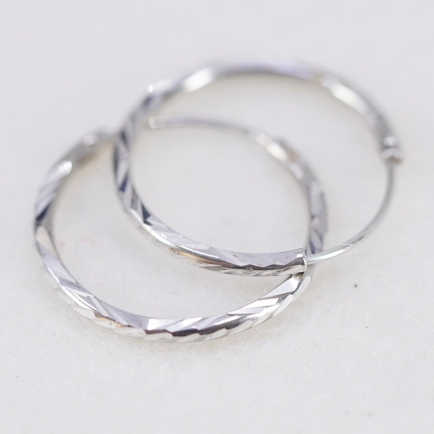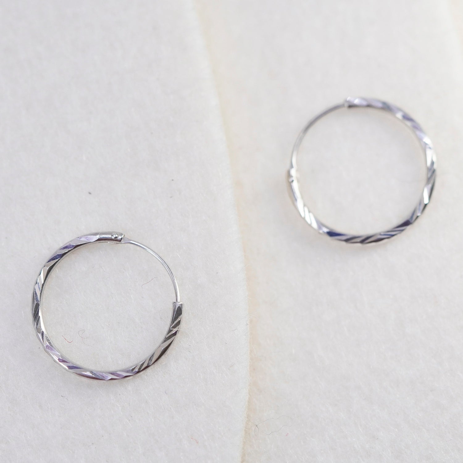 0.5", vintage Sterling silver handmade earrings, textured 925 hoops, silver tested