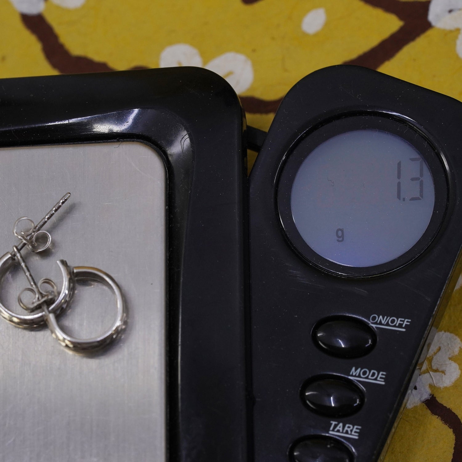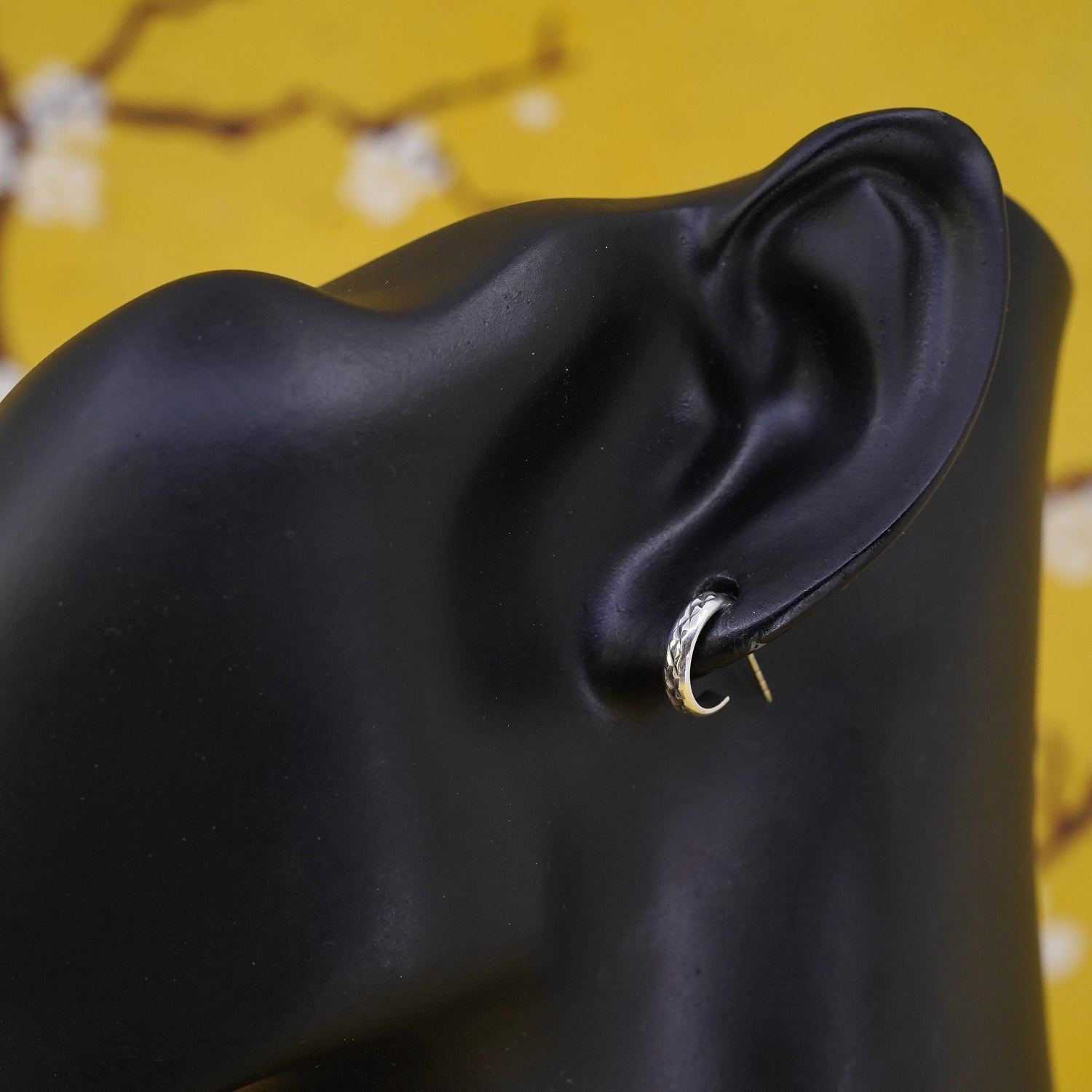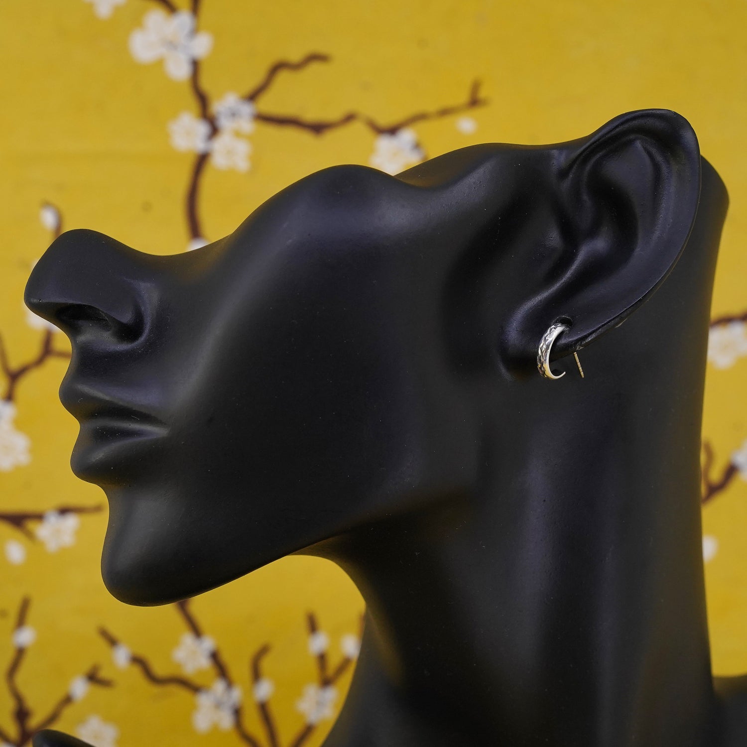 0.5", vintage Sterling silver handmade earrings, textured 925 huggie studs
