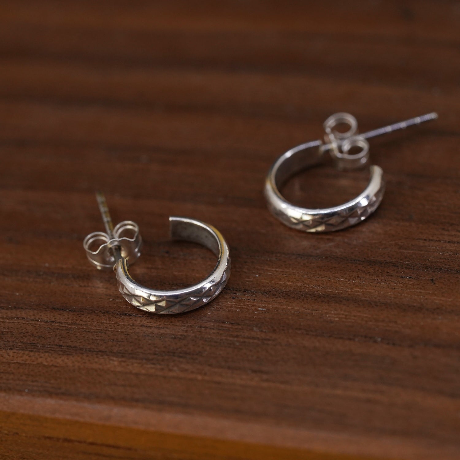 0.5", vintage Sterling silver handmade earrings, textured 925 huggie studs, Stamped 925