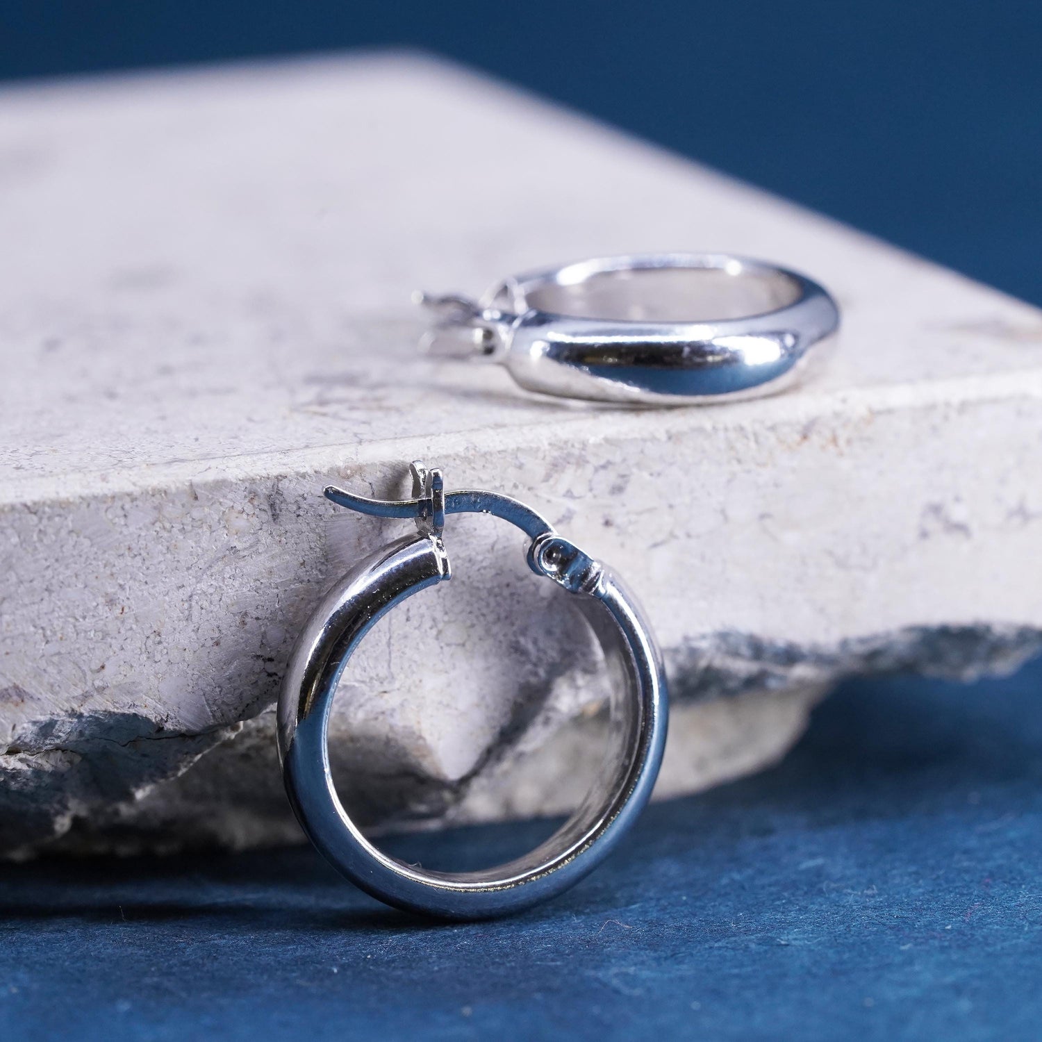 0.5", vintage Sterling silver handmade hoop earrings, 925 huggie, stamped 925