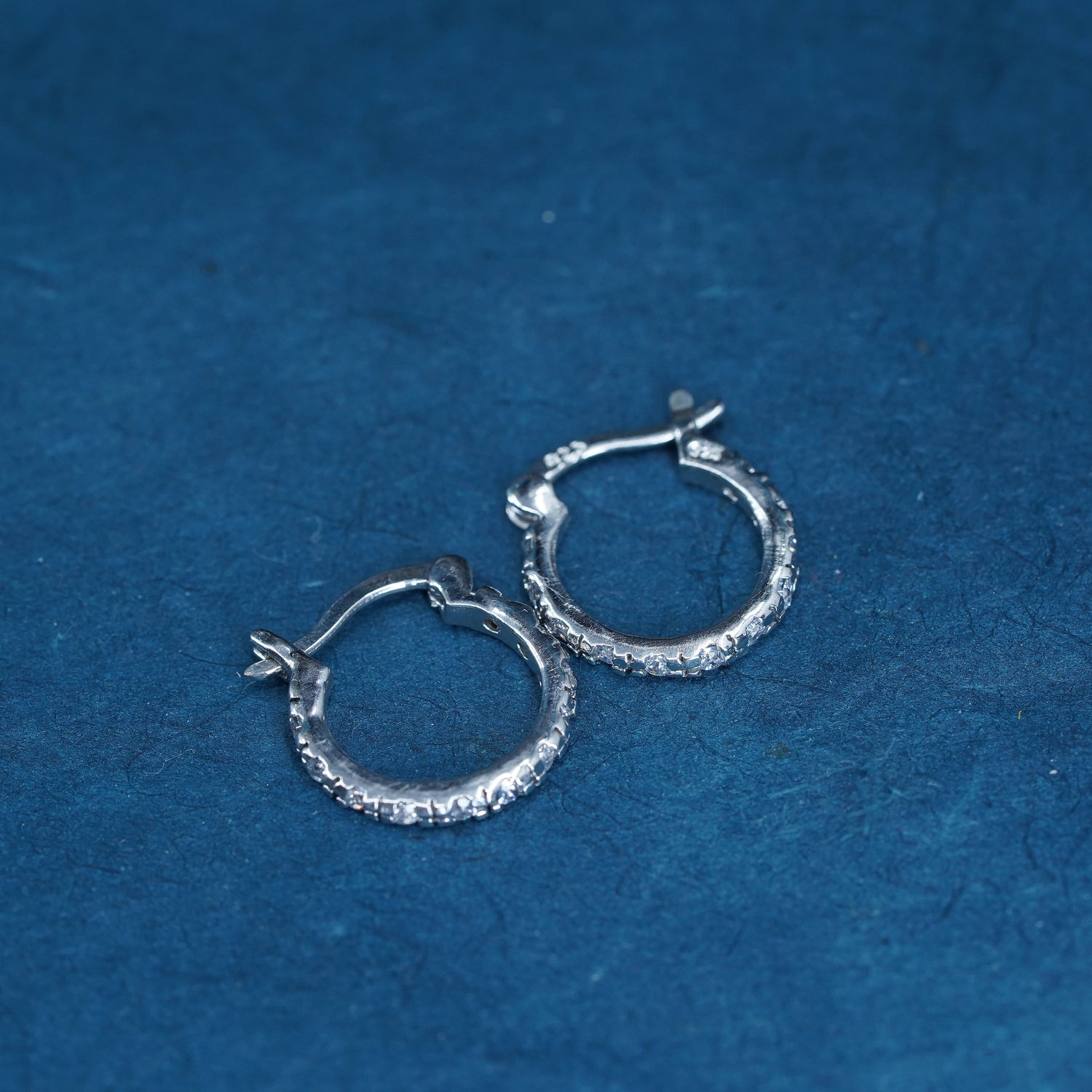 0.5", vintage Sterling silver handmade hoop earrings, 925 huggie with cz. stamped 925