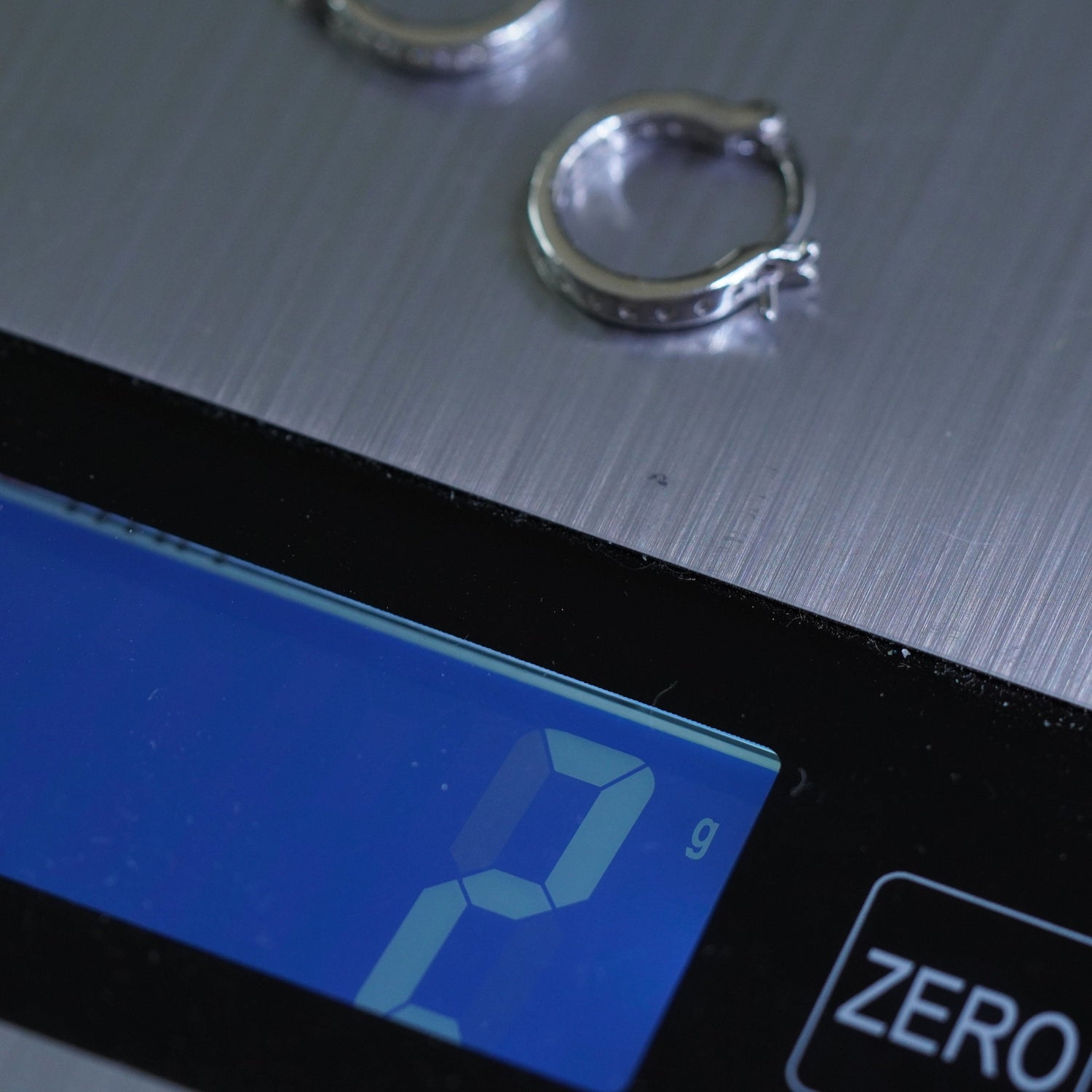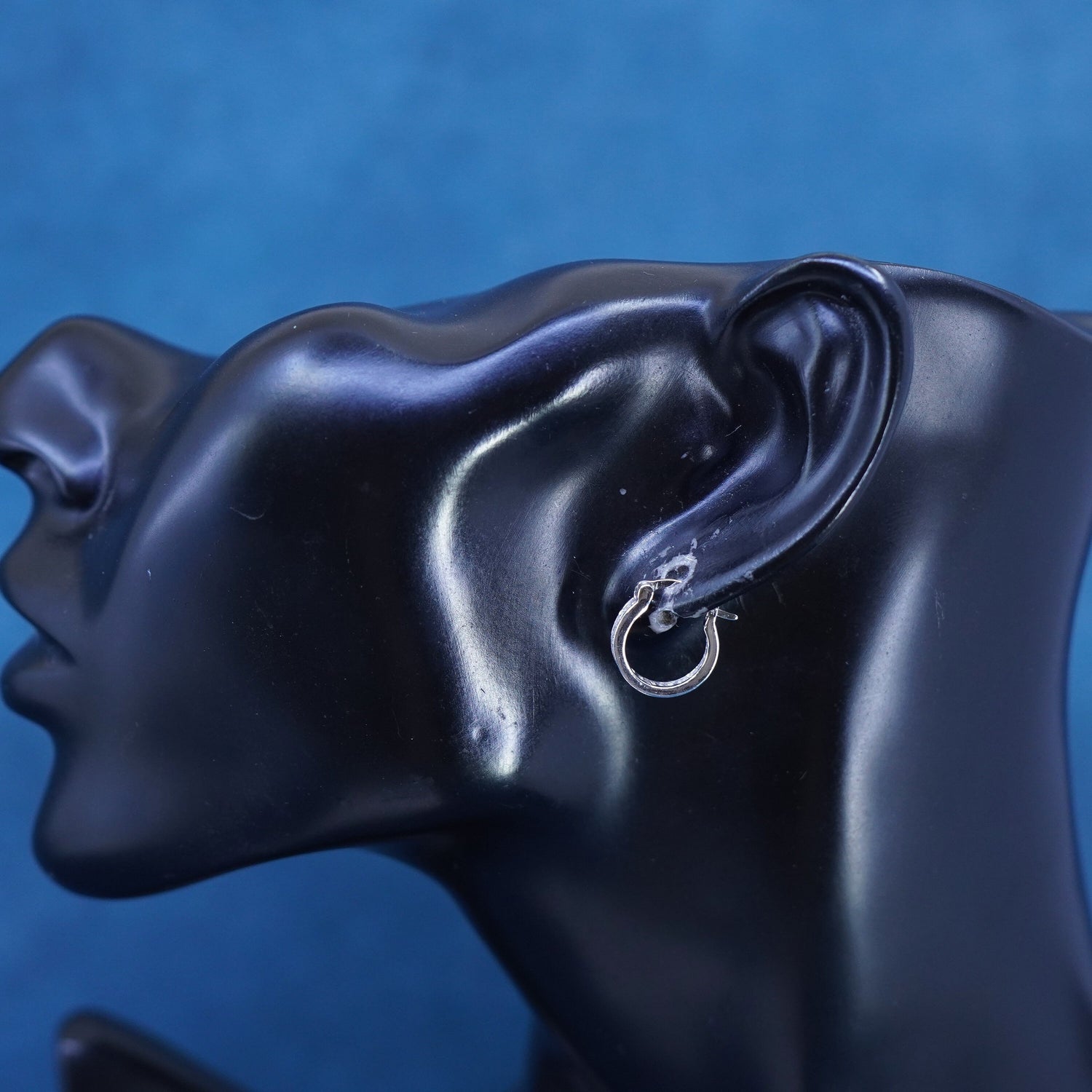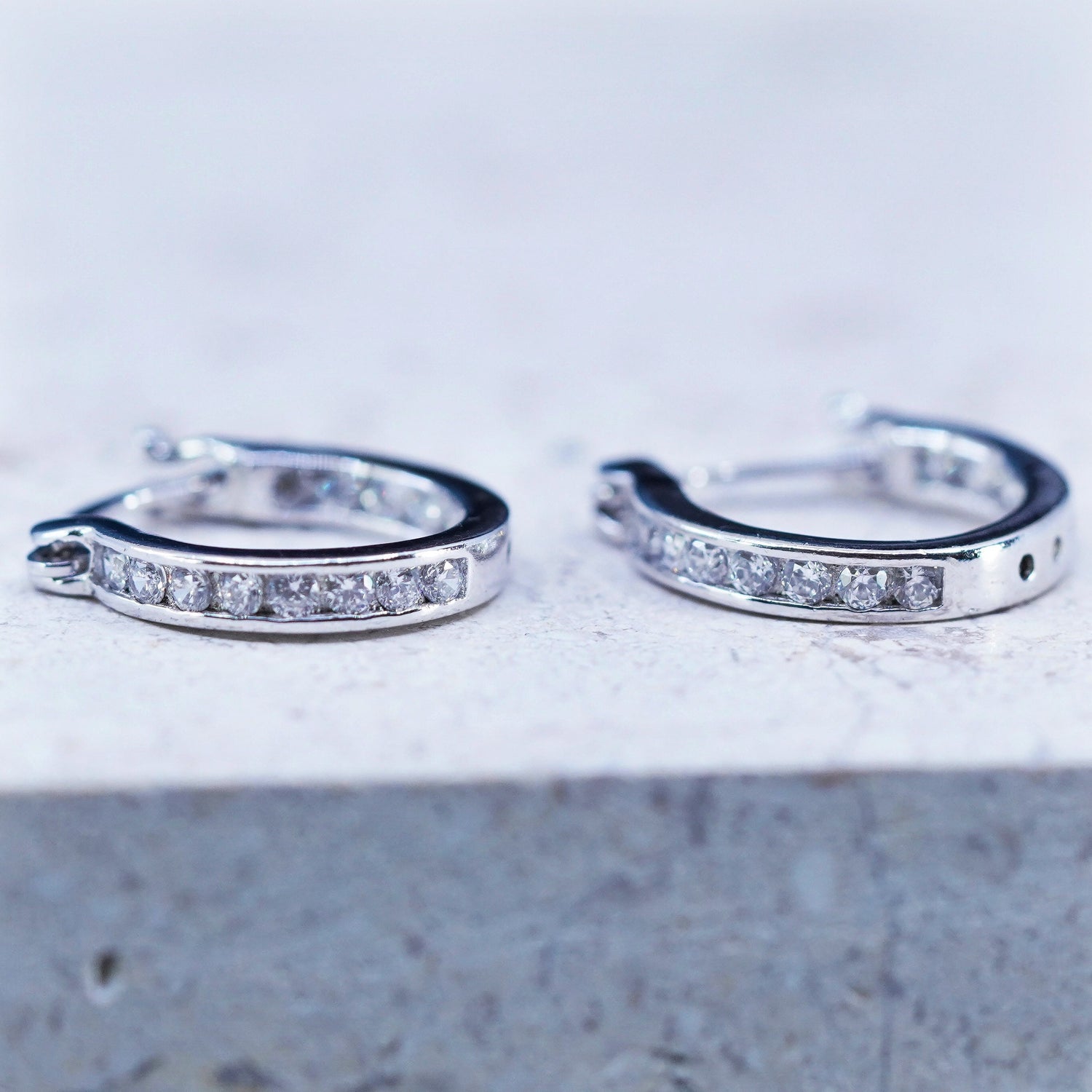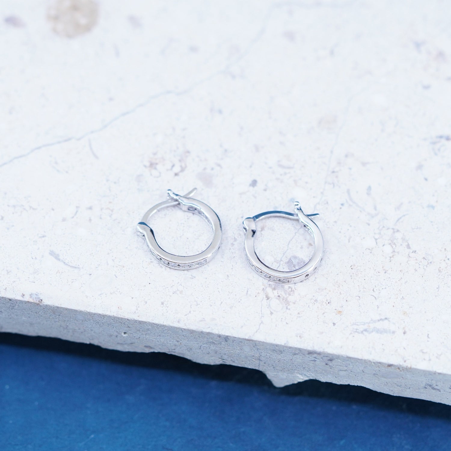 0.5", vintage Sterling silver handmade hoop earrings, 925 huggie with cz. stamped 925