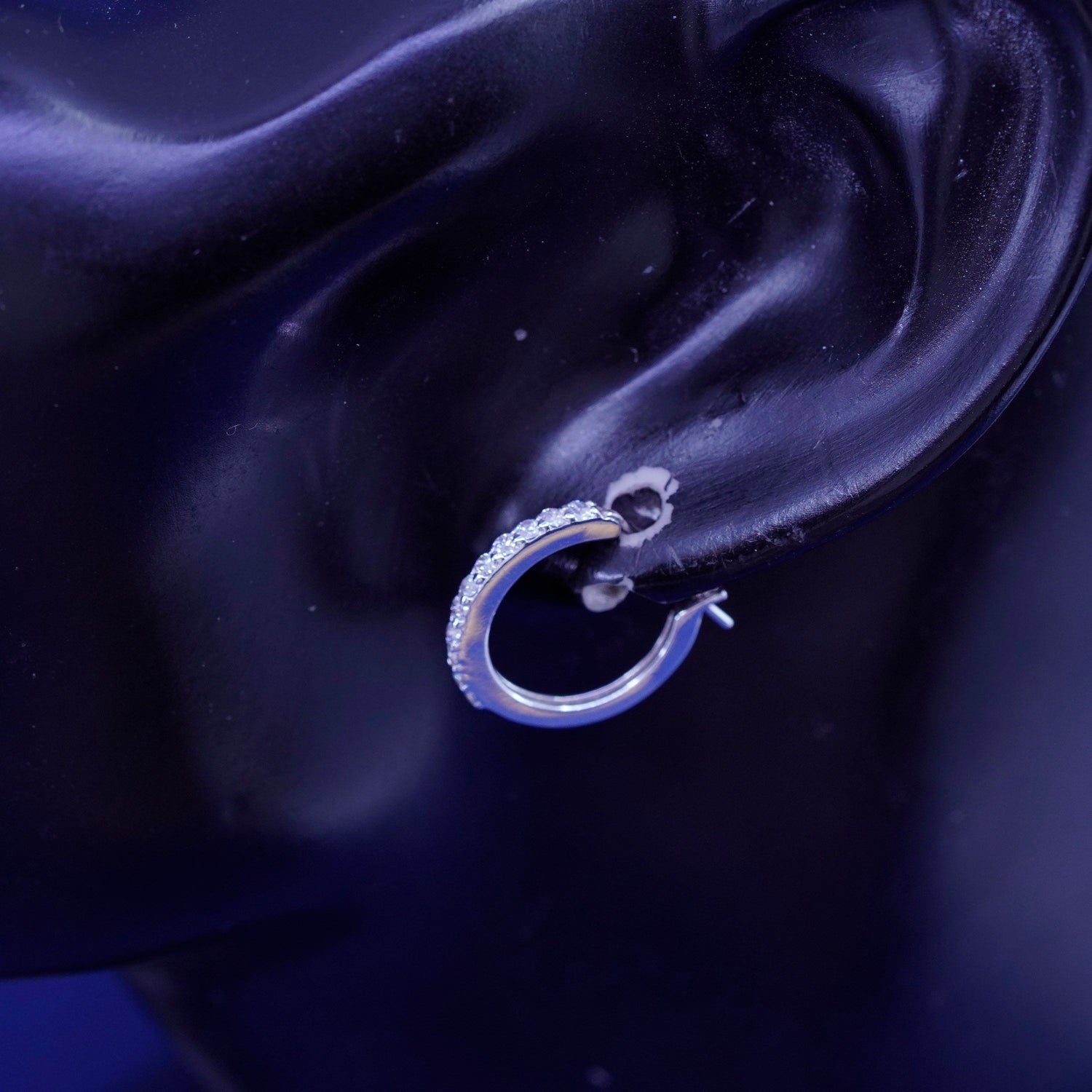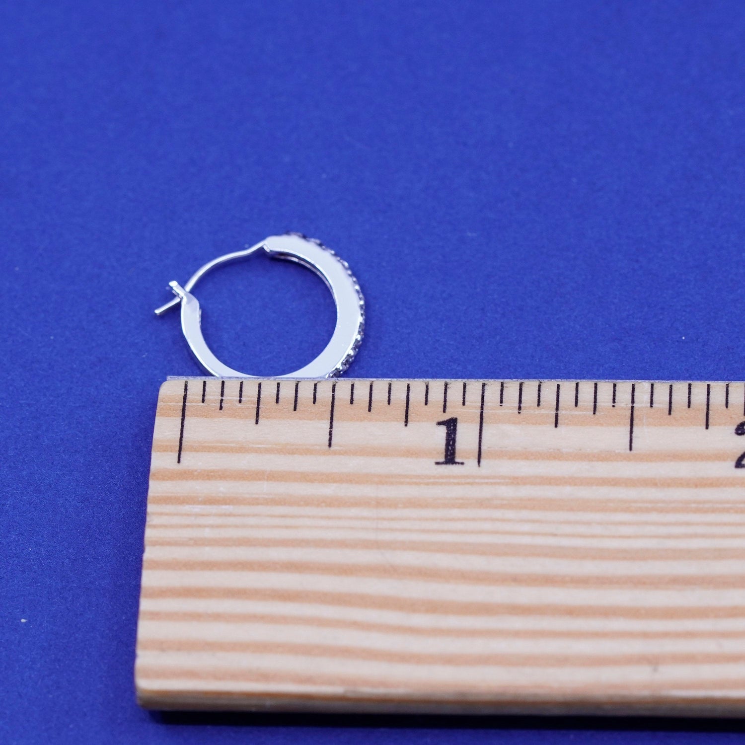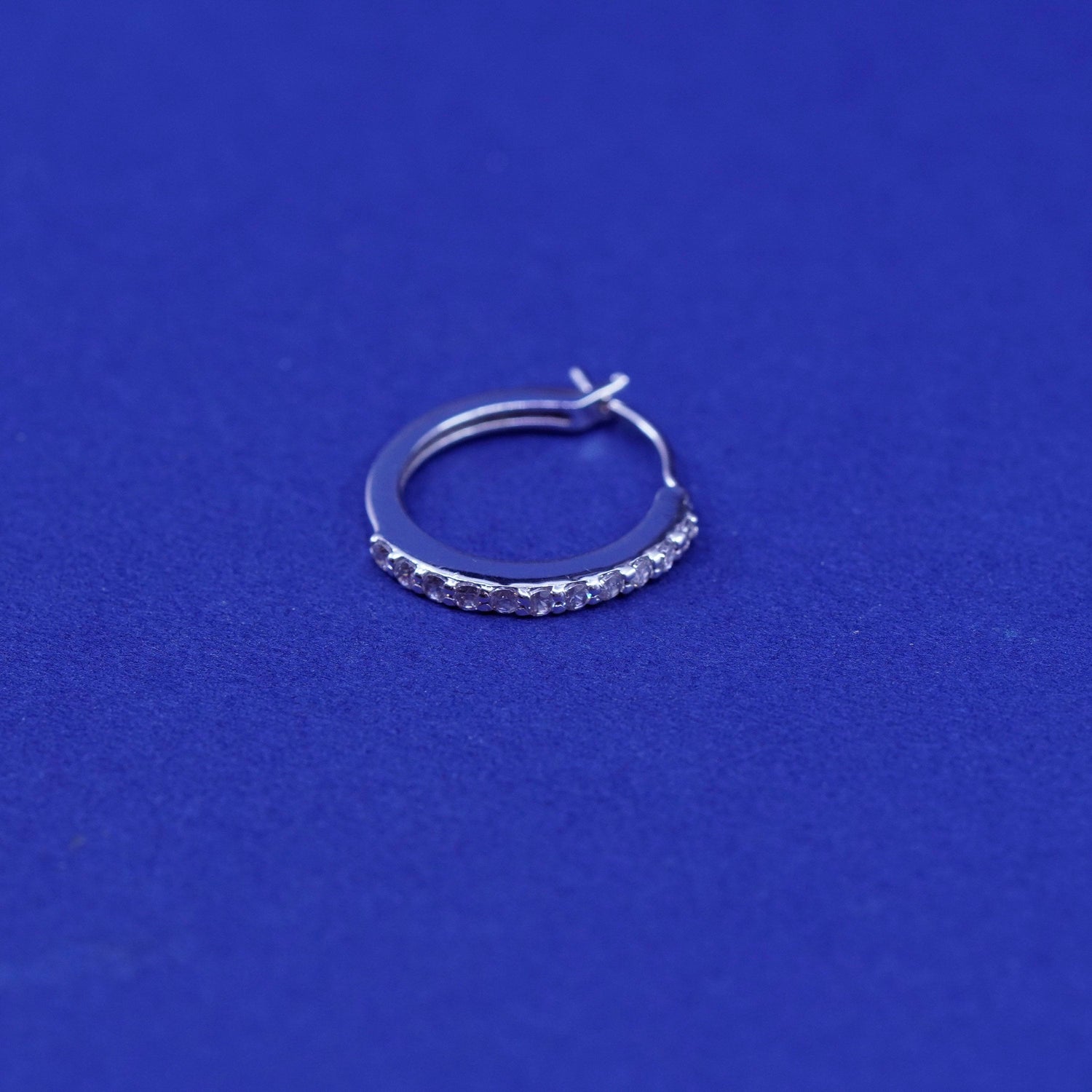 0.5", vintage Sterling silver handmade hoop earrings, 925 huggie with cz. stamped 925