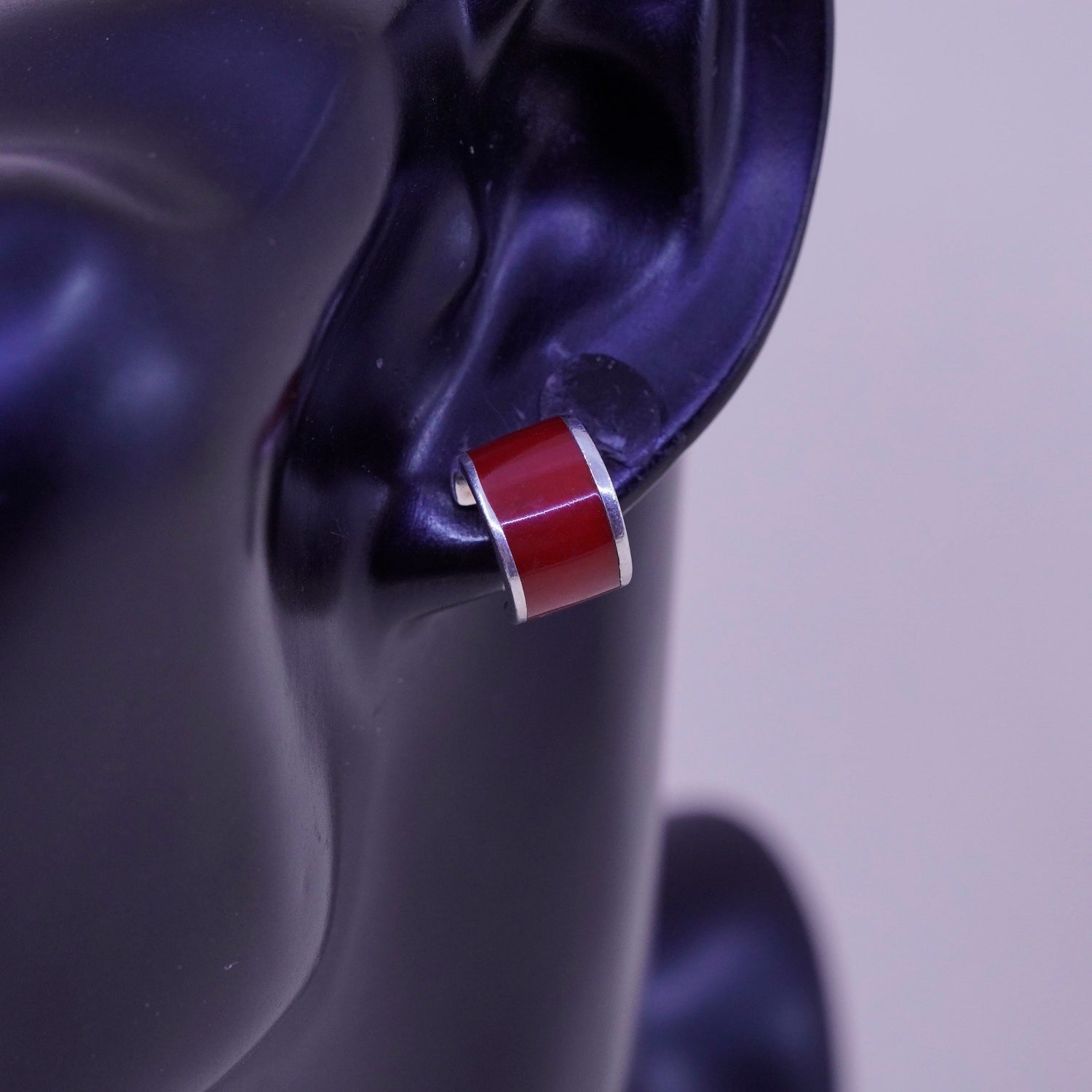 0.5”, Vintage sterling silver handmade hoops, 925 Huggie earrings w/ red enamel