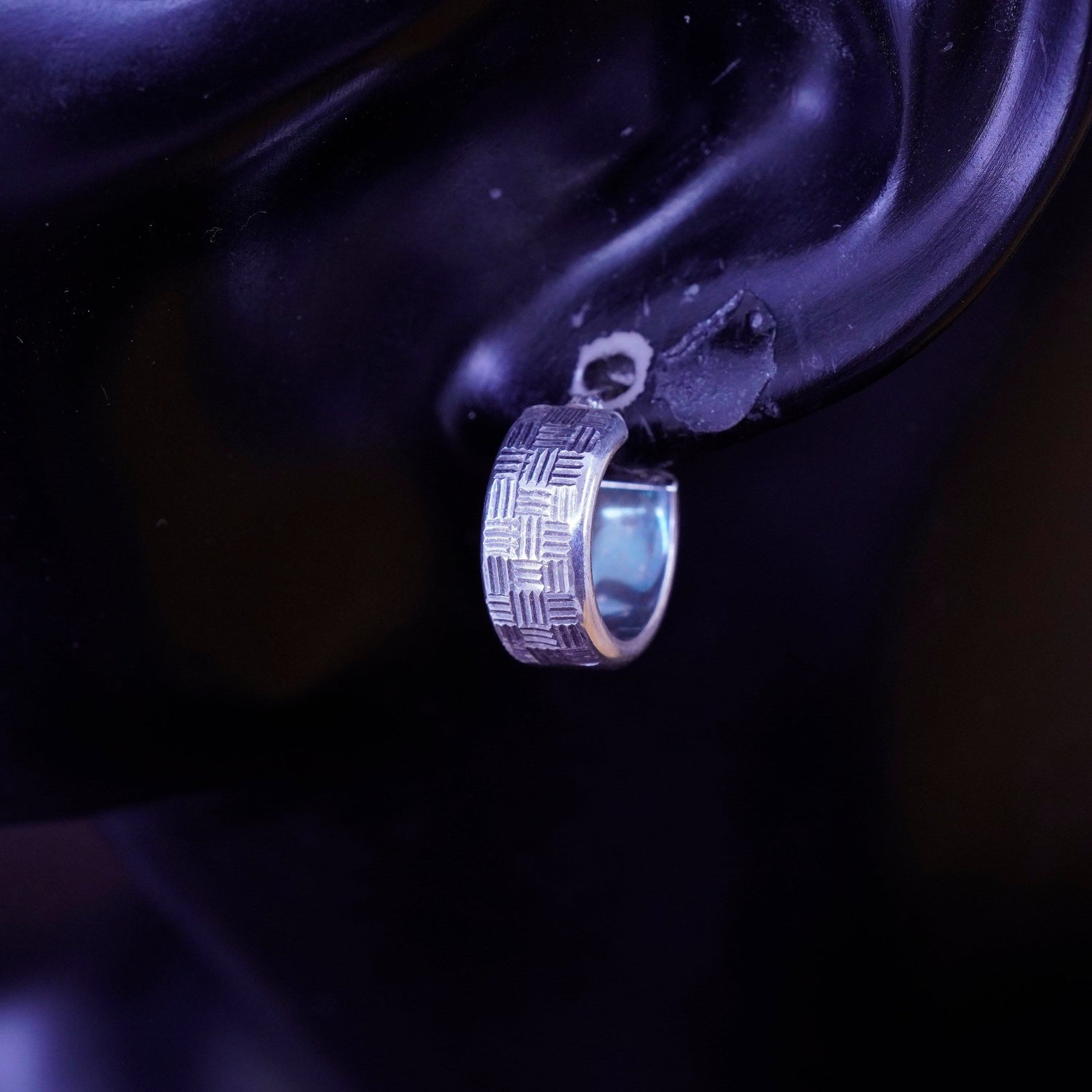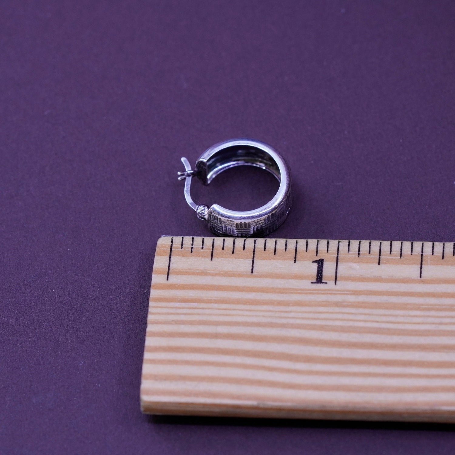 0.5", vintage Sterling silver hoop earrings, 925 textured hoops, Stamped 925