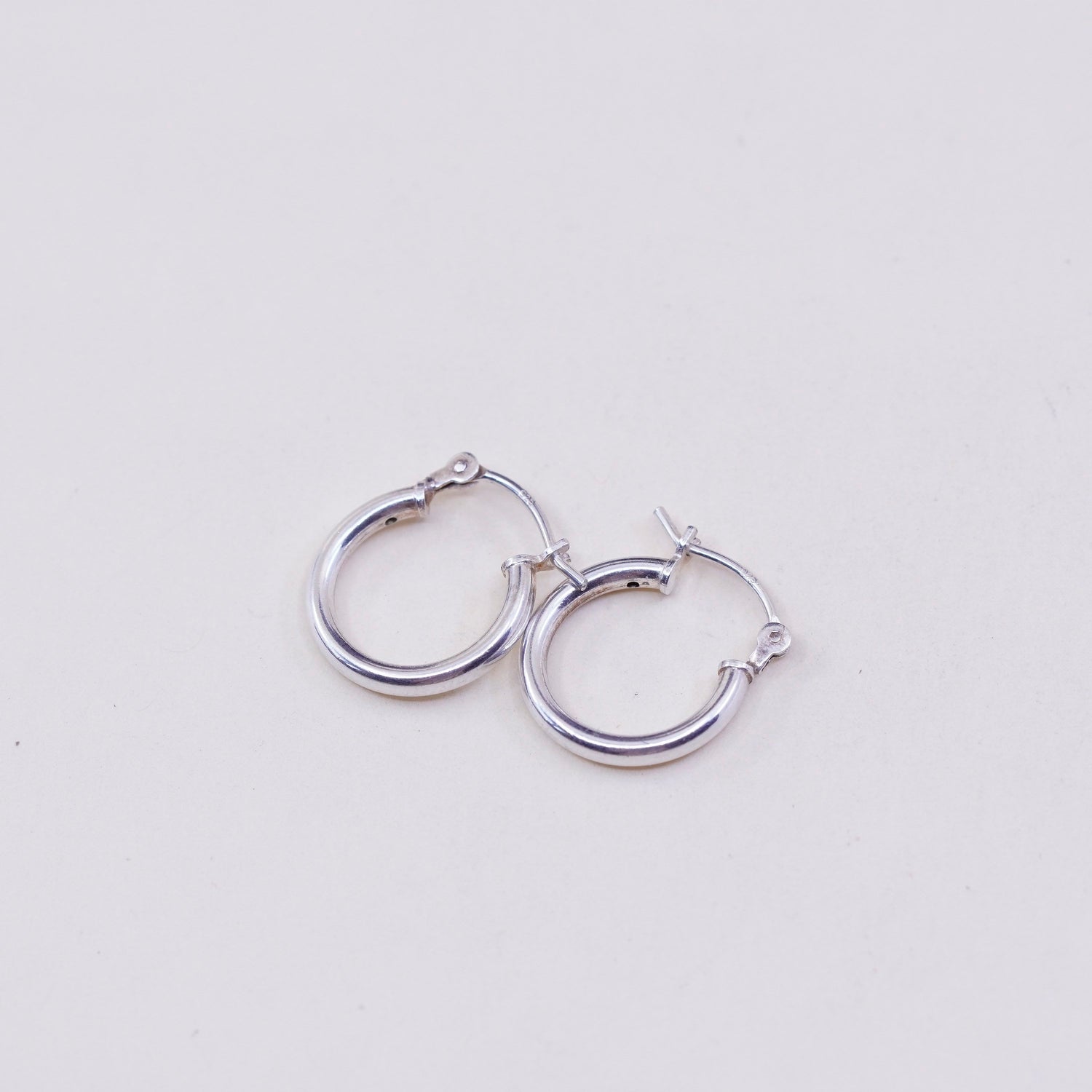 0.5”, Vintage sterling silver loop earrings, minimalist, 925 hoops, huggie