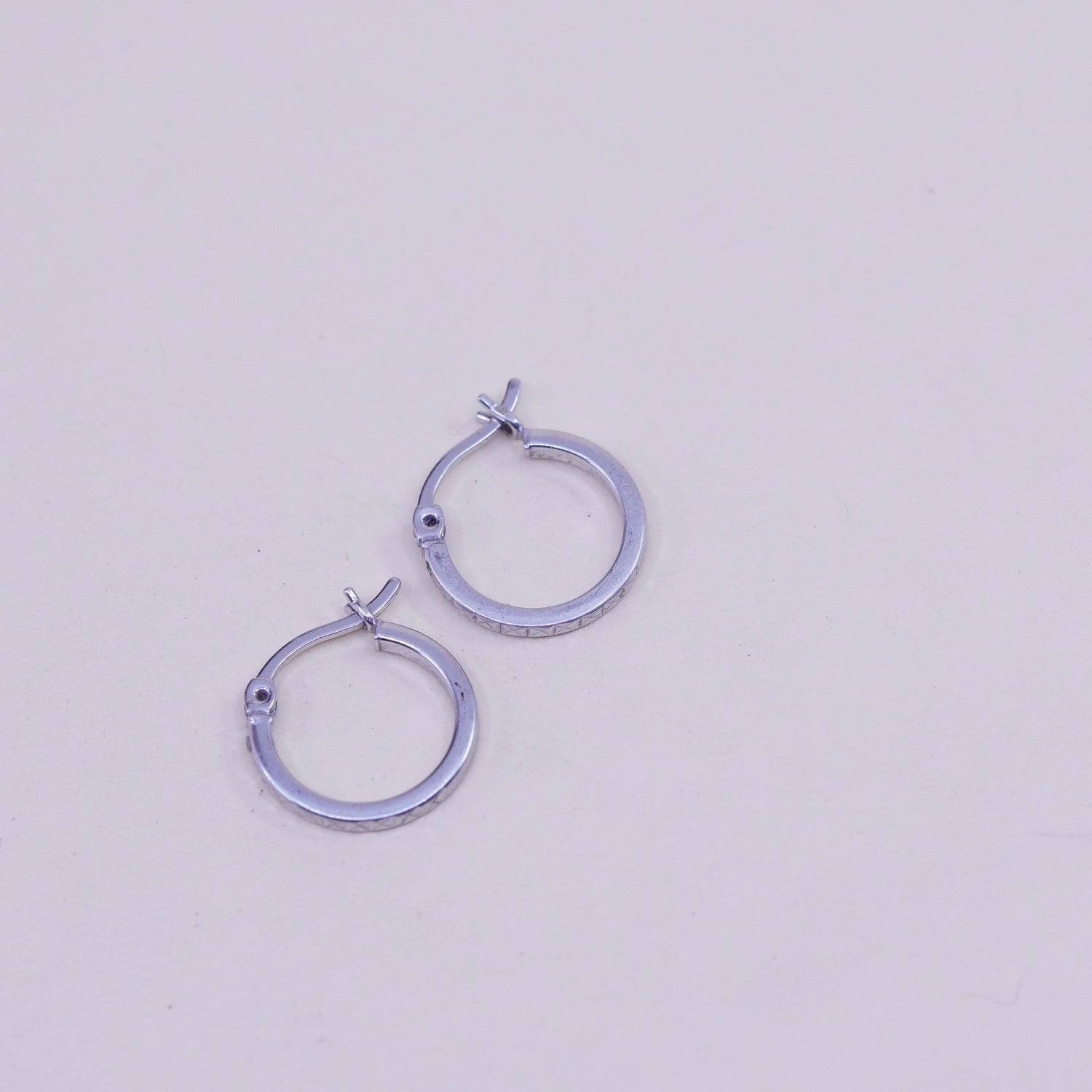 0.5”, Vintage sterling silver loop earrings, textured fine 925 silver hoops