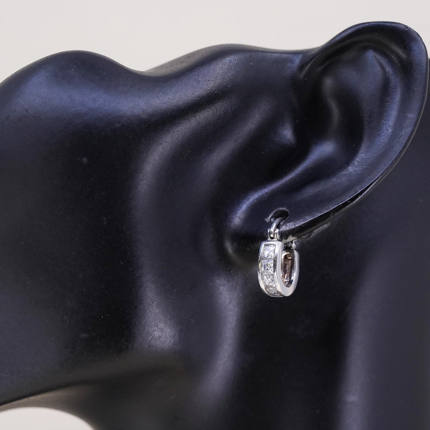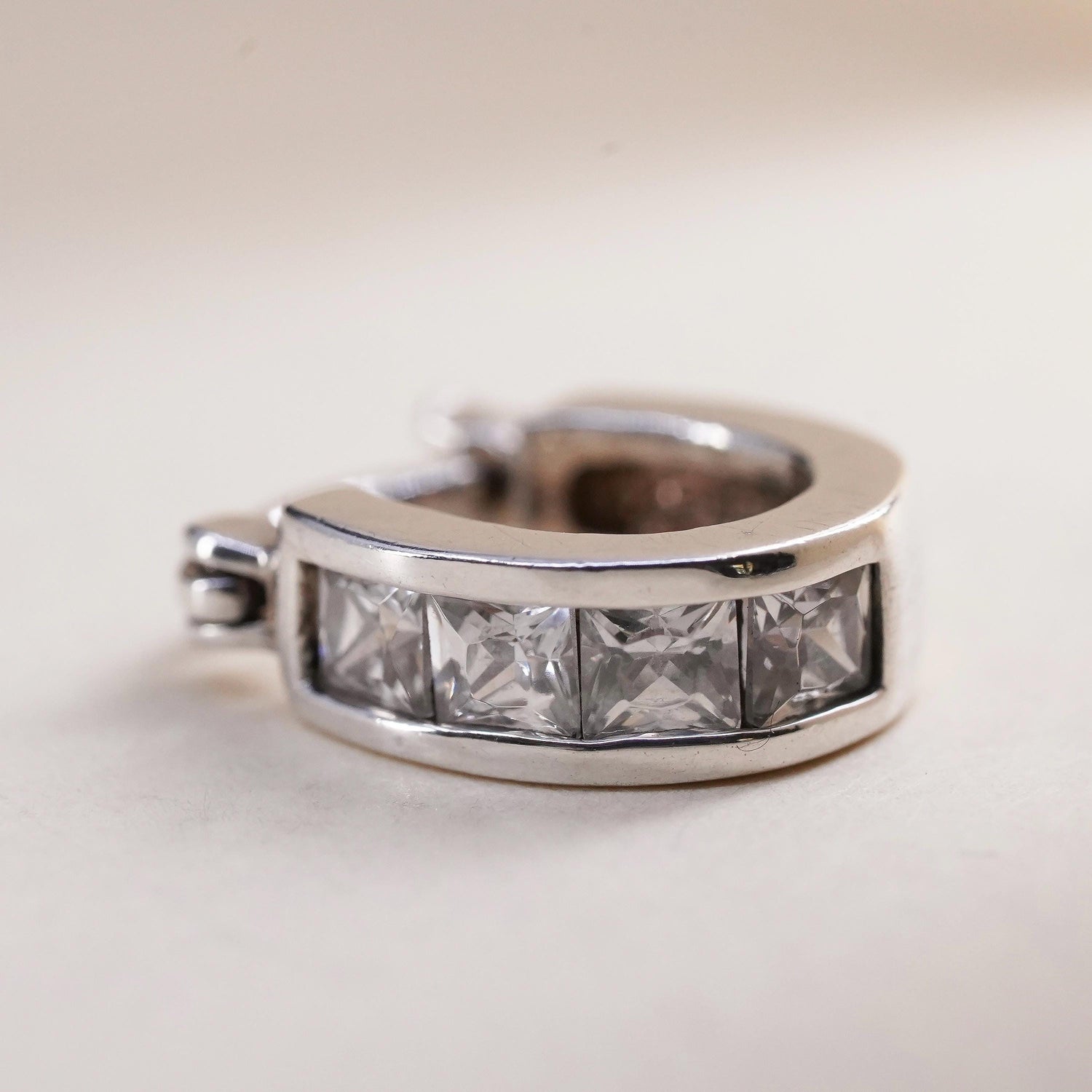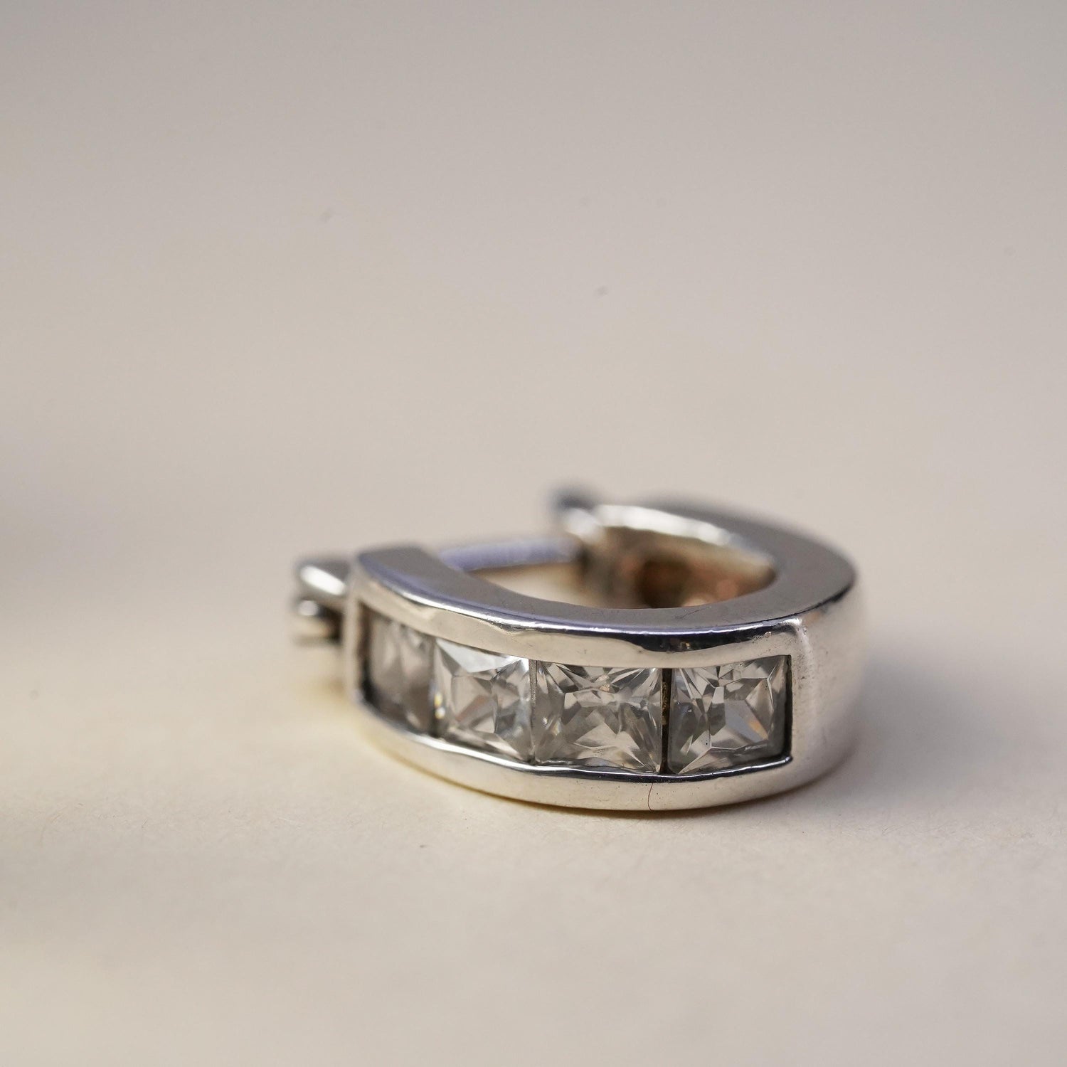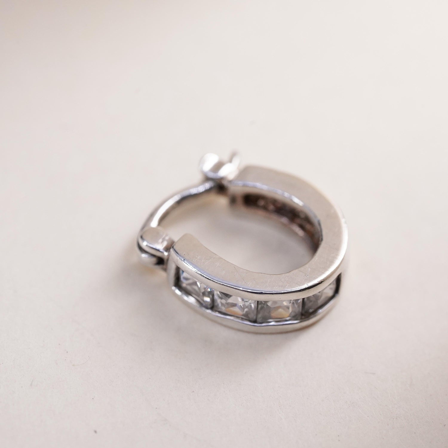 0.5", Vintage sterling silver loop single earring, fashion minimalist hoop with cz, stamped 925