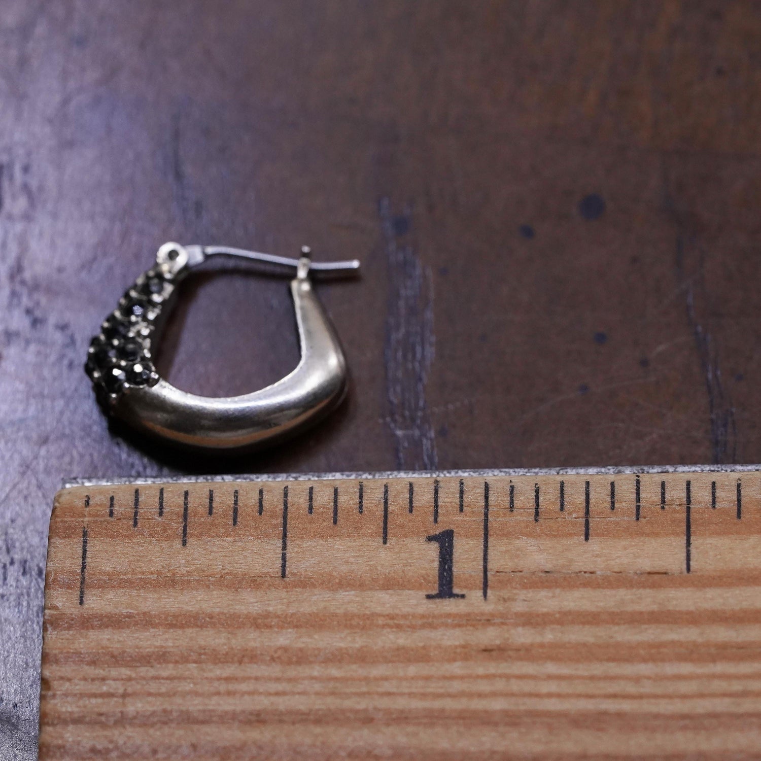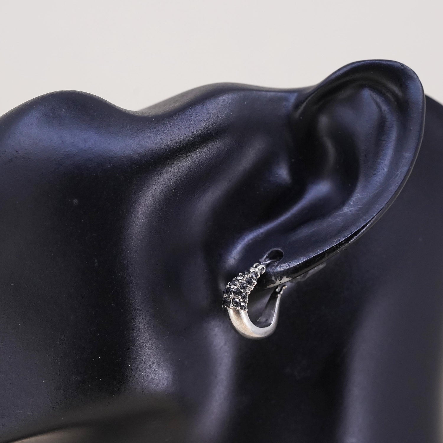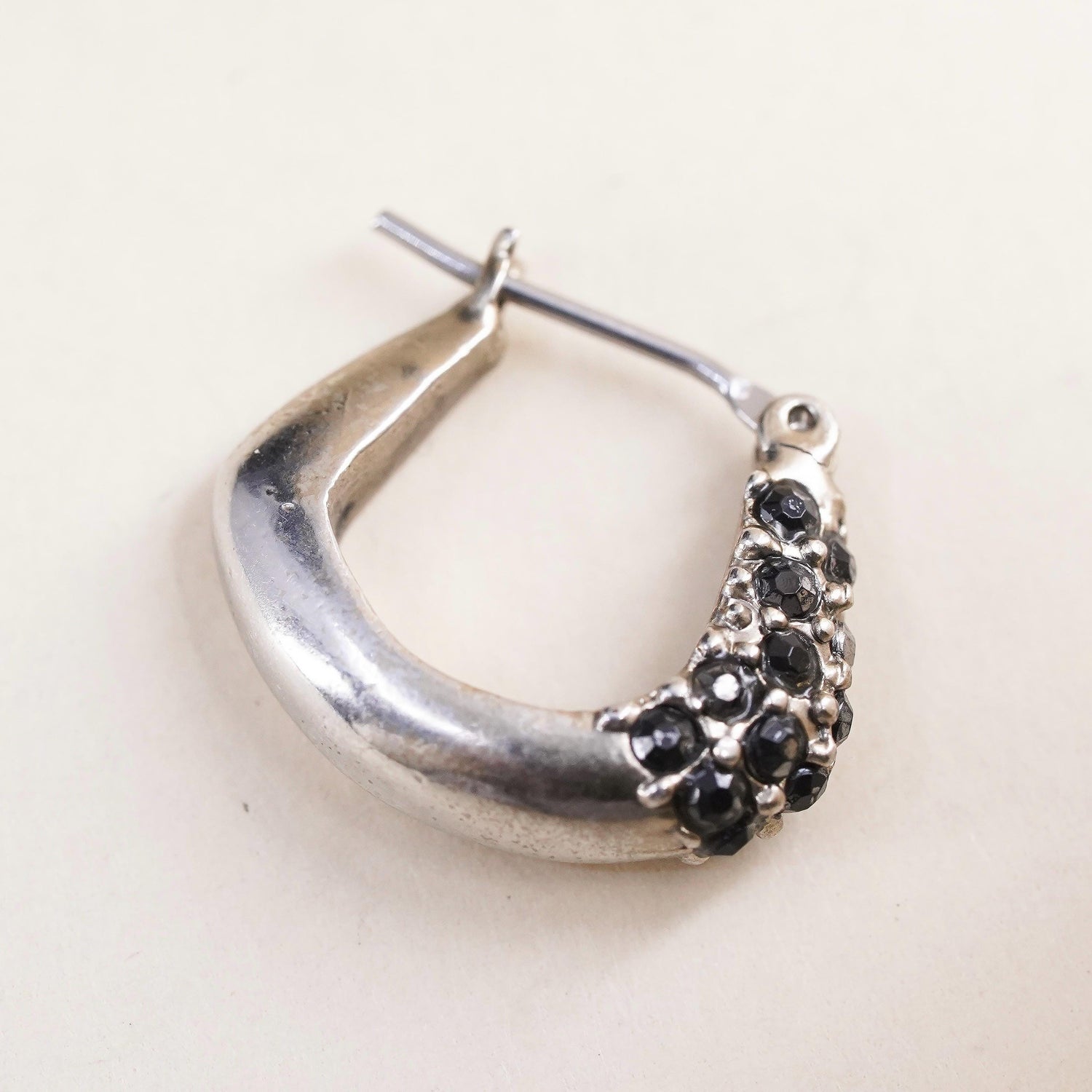 0.5", Vintage sterling silver loop single earring, fashion minimalist hoop with onyx, stamped 925