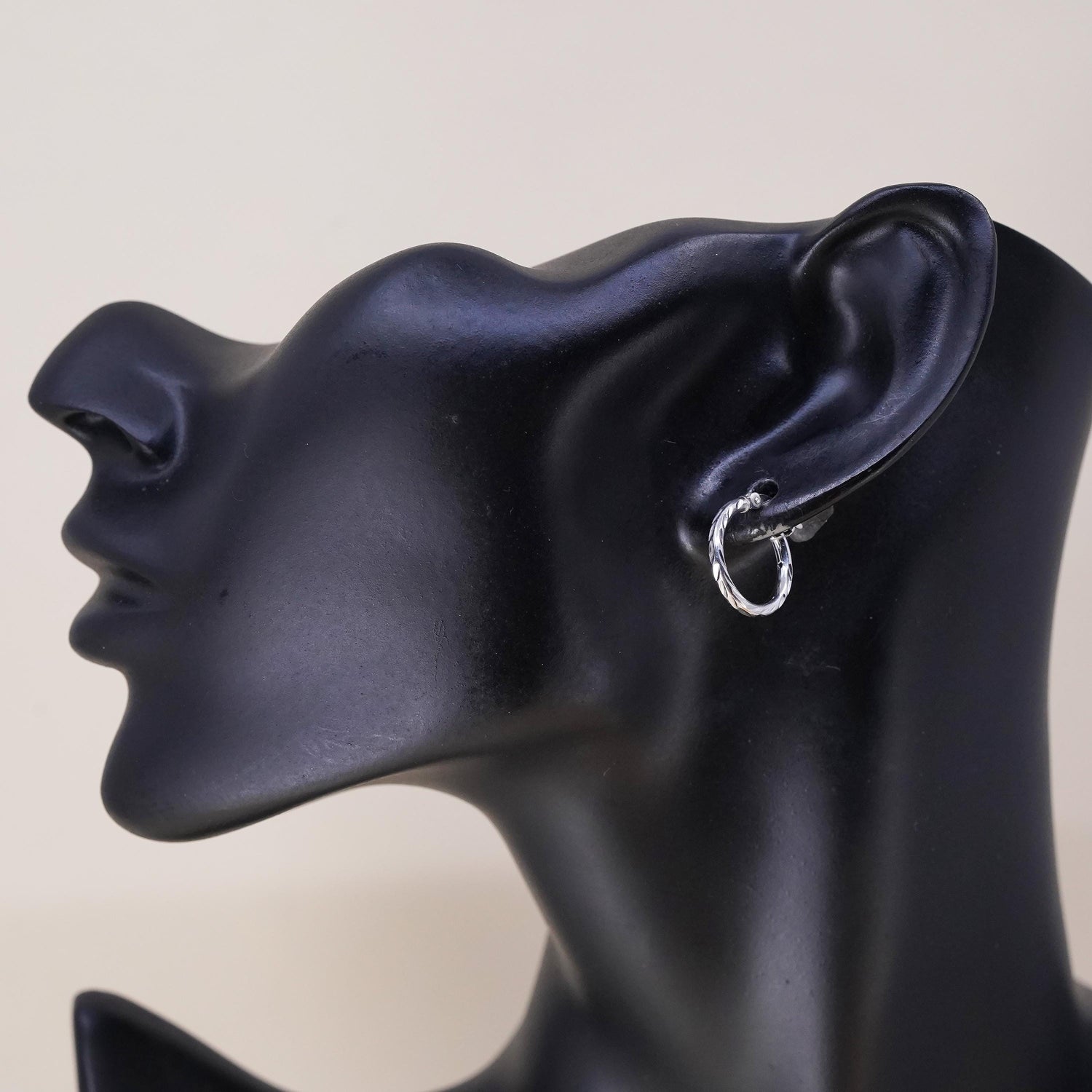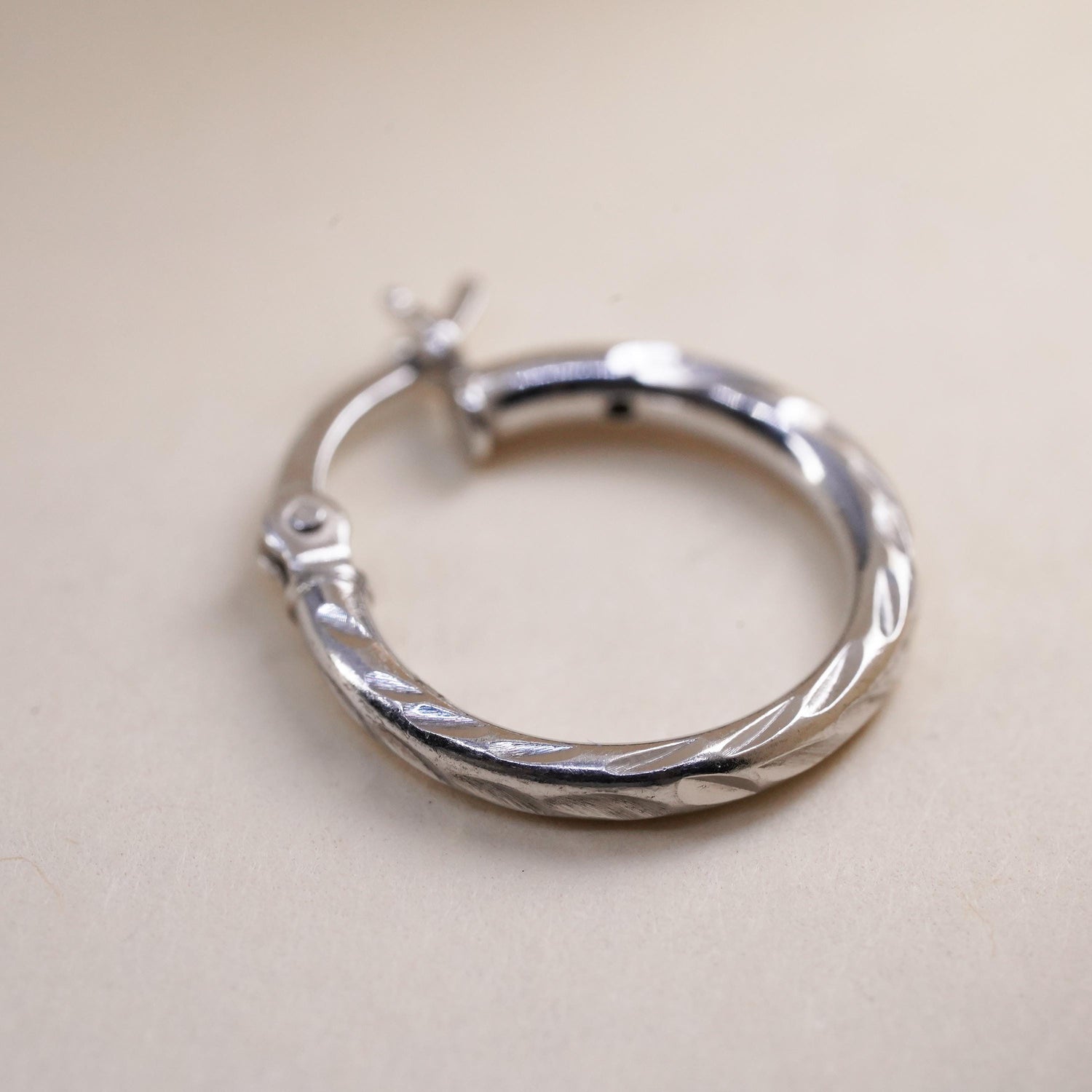 0.5", Vintage sterling silver loop single earring, fashion minimalist textured hoop, stamped 925